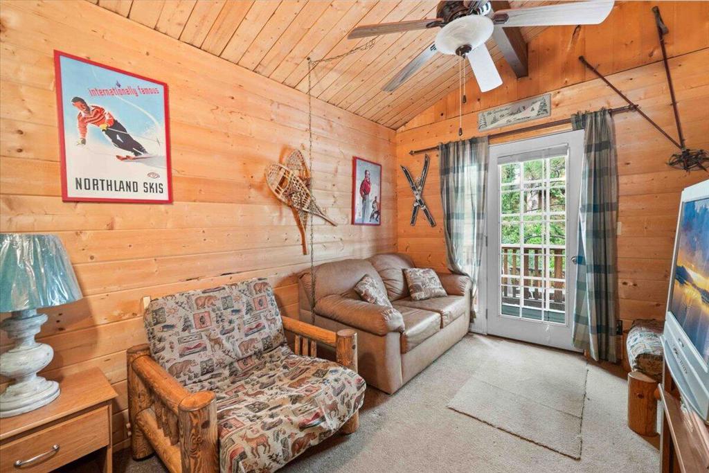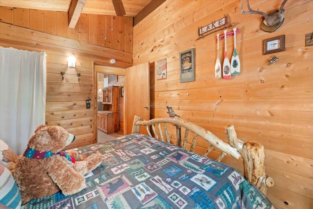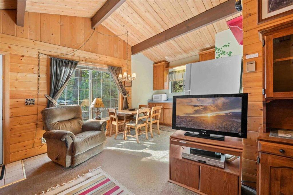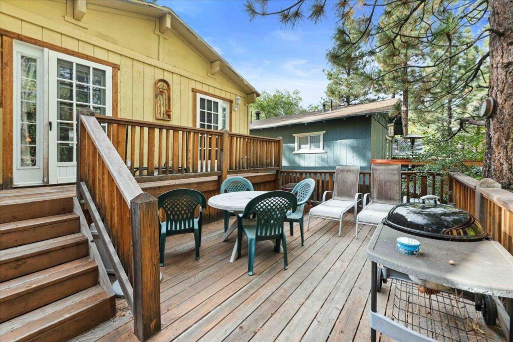 Adorable mountain cabin located just doors from the national forest and hiking trails. Open floor plan with T&G walls and open beam vaulted ceilings. This home offers a great floor plan with 2 bedrooms, and 1 full bath. Each bedroom has its own back door leading to a two-tiered deck and fenced back yard. Cozy up to the fireplace adorned with beautiful stained-glass inlayed lights above the mantel! Very unique and beautiful lit up with a fire going! Enjoy the fresh air and sunshine on both front and back decks. Comes furnished and ready to enjoy! Such a sweet little spot to get away from the chaos of everyday life! With a general store and restaurant/bar at the bottom of the street, you are sure to love this convenient location! And it's only minutes from the ski slopes, lake, and shopping too! Don't miss it!
