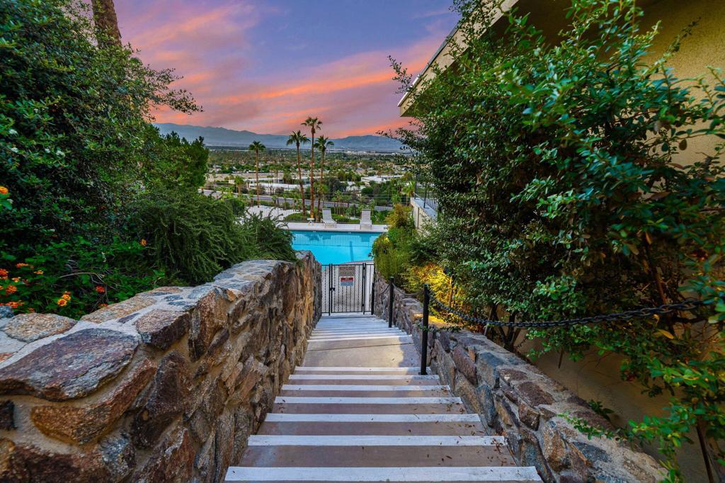 Perched above the valley floor and nestled into the mountainside, sits the iconic community of Rimcrest. Built in 1967, and designed by Leroy Rose & Harold Carlson, the association sits on nearly 12 acres and houses just 51 condos. The only hillside development in Palm Springs, Rimcrest is located just under the former home of Bob Hope, and the panoramic views of the valley and mountains are just unbeatable. This 2 bedroom, 2 bath condo offers 1,600 sq ft of living space and is located on the 2nd level from the top of the development, making the views absolutely spectacular. Enjoy an open concept living area with a reimagined, extra-large kitchen featuring loads of storage and an office area. Spectacular views can be enjoyed from the living area, primary bedroom, and of course the deck. Each bedroom offers a fireplace feature and walk-in closet, and both baths feature walk-in showers. Recent updates include: fresh interior and patio paint, added baseboards, updated electric panels and wiring, travertine tiled front patio, structural updates below the deck. One of the community's three spas is just steps away and is the perfect place to unwind. Stunning views greet you at every turn in Rimcrest, including at the community's two sparkling pools. Come and see what makes this location so special!