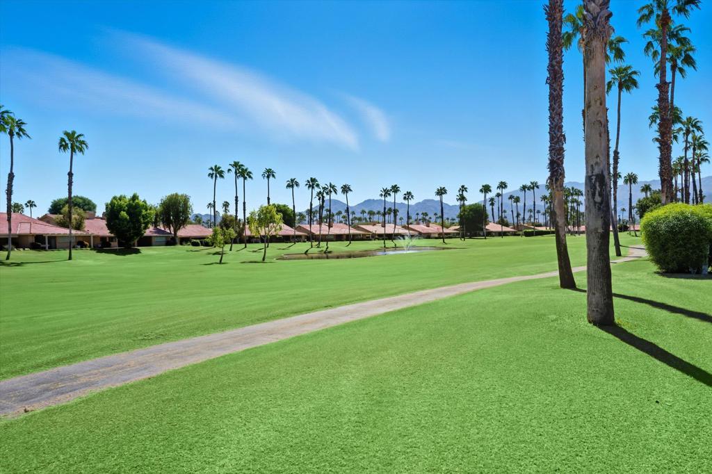 BEAUTIFULLY REMODELED home in the friendly Chaparral Country Club community! This 3BR/3BA END UNIT features the ever-popular open style kitchen with an OVERSIZED PICTURE WINDOW, large granite island and WOOD PLANK STYLE FLOORING. Bright white cabinets, crown molding and updated doors/hardware throughout. 3RD STALL GARAGE! Motorized window coverings in the kitchen and living room, crown molding and canned lighting. Inviting TILED PATIO with a lumawood trellis and VIEWS of the 13th fairway and lake! UPGRADED BATHS! Chaparral is centrally located in the heart of Palm Desert featuring an 18-hole golf course designed by Ted Robinson, a full-service restaurant, fitness center along with tennis/pickleball courts. Just a short drive to the famed El Paseo shopping district.