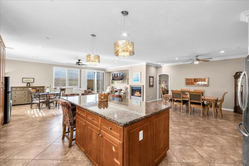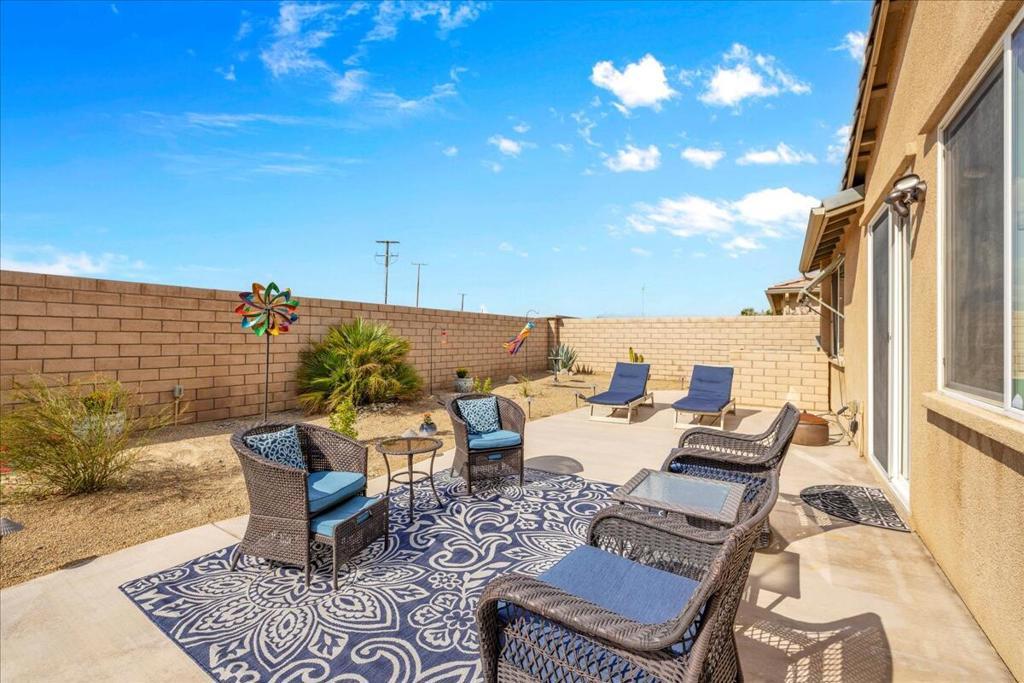 Welcome to this architectural gem in the highly sought-after Four Seasons 55+ community. The home features crown molding, arched doorways, stunning tile flooring throughout, and an inlaid tile mosaic at the entry. The open floor plan is light & airy with high ceilings, a spacious gourmet kitchen with an oversized granite island, abundant cabinetry with pull-out shelving & generous counter space for cooking and entertaining. The primary suite is a true retreat with a gas fireplace, and walk-in closet. The large bath featuring dual vanities, a soaking tub & walk-in shower. The living room, designed for memorable gatherings, also features its own gas fireplace. Enjoy peaceful evenings in your private backyard with views of the mountains and the Palm Springs Aerial Tramway illuminated at night. Additional highlights include plantation shutters throughout, 3 zoned HVAC controls, low-voltage lighting, and a private cul-de-sac location. Life at Four Seasons centers around The Lodge, a beautifully designed clubhouse offering a full calendar of activities, full time staffed, a fitness & aerobics studios, a ballroom, library, game room & more. Resort-style amenities include pools, spas, tennis, pickleball courts, BBQ's & scenic walking paths. Low HOA's include Frontier fiber optic internet. Just minutes from downtown Palm Springs, this home offers the serenity of a private community with convenient access to fine dining, shopping, entertainment & Casino's. More than a home, it's a retreat that blends beauty, comfort & community in perfect balance.