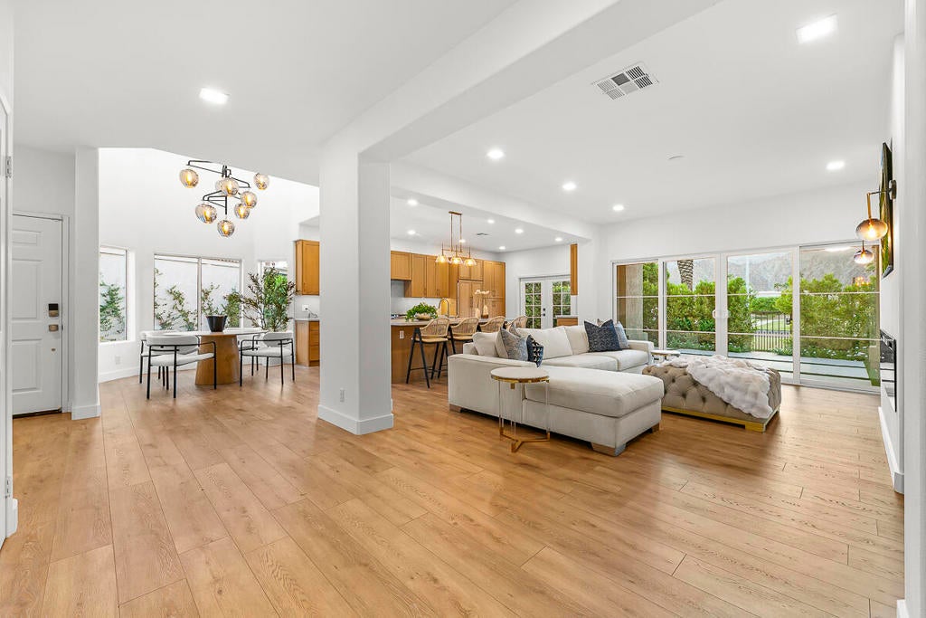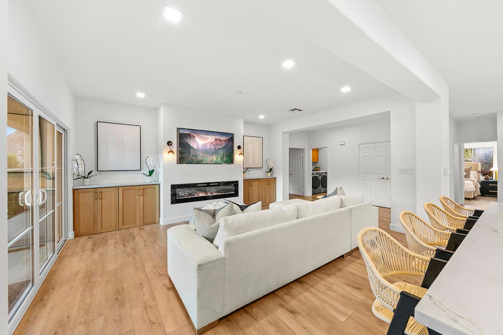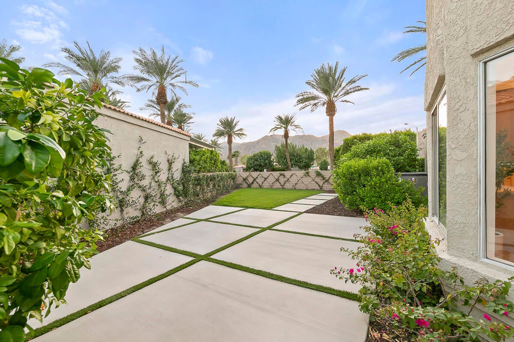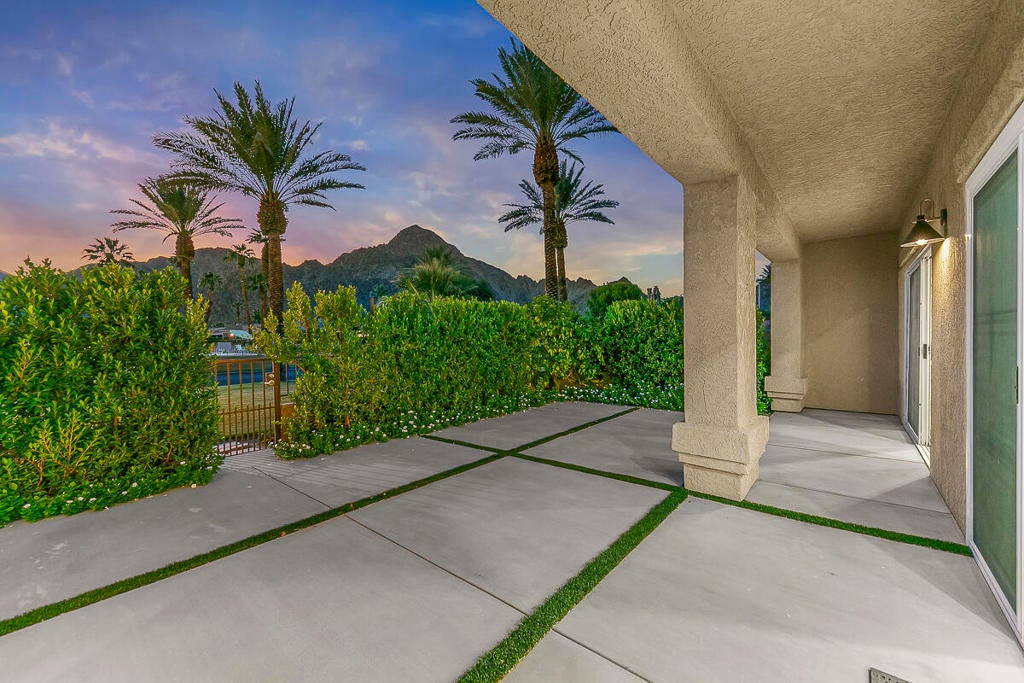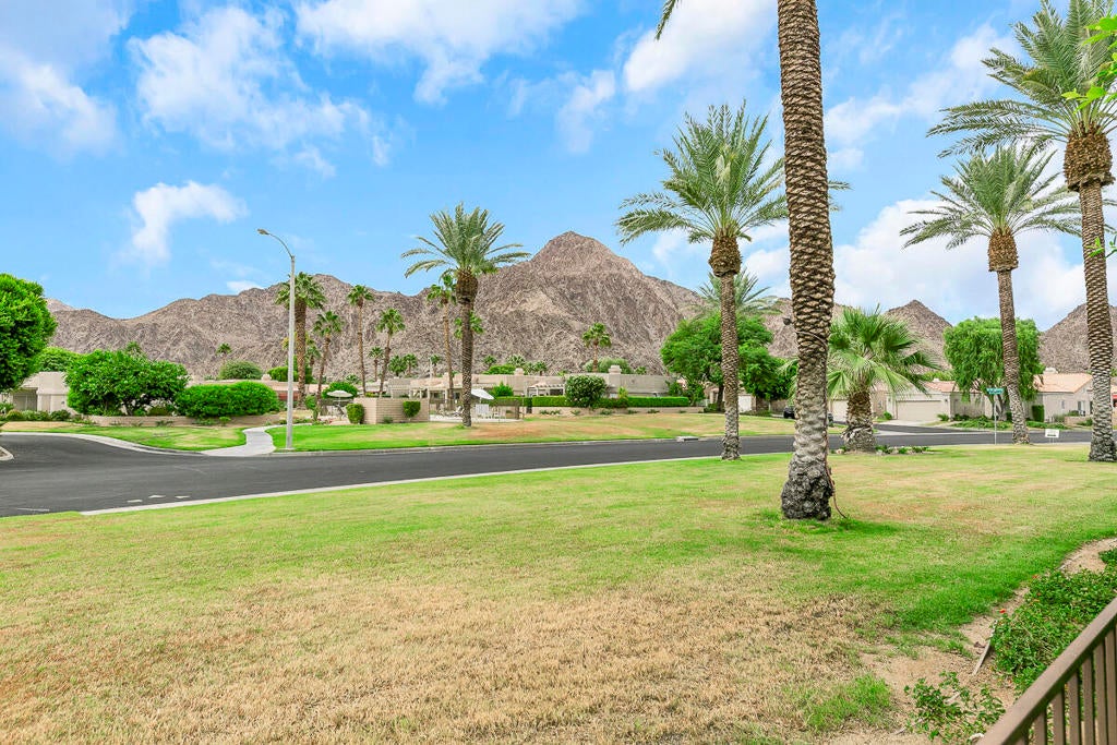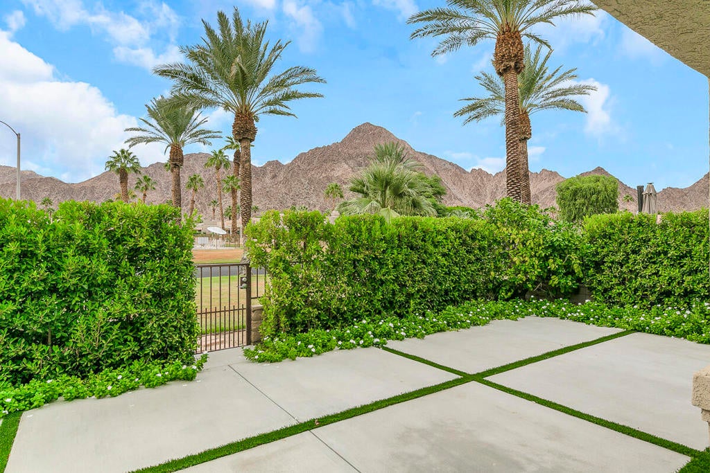 Every detail of this Laguna de la Paz home has been thoughtfully upgraded to create a modern, move-in-ready retreat with sweeping mountain views. Inside, new flooring, fresh paint, decorative lighting, all-new plumbing fixtures, and custom cabinetry with sleek quartz countertops elevate the entire living space. Two walls were opened for a seamless open-concept flow, while new sliding and French doors flood the home with natural light.The great room centers around a cozy gas fireplace and opens directly to a spacious patio where you'll take in uninterrupted mountain vistas. The private primary suite features a generous walk-in closet and its own covered patio, while guest rooms are thoughtfully separated for comfort and privacy.This property is also wired and ready for an ADU, offering future expansion potential for multi-generational living, a guest house, or income opportunity.Laguna de la Paz offers resort-style amenities including a 5-acre lake with walking paths and paddle boats, 15 pools, 16 spas, tennis and pickleball courts, a fitness center, clubhouse, playground, barbecue areas, and controlled access.HOA dues include maintenance of the grounds, guard-gated security, roof coverage, and exterior building maintenance--ensuring easy, low-maintenance living in one of La Quinta's most beautiful communities.Just 3 miles from the Indian Wells Tennis Garden, this home combines the best of luxury upgrades, resort amenities, and full desert beauty.