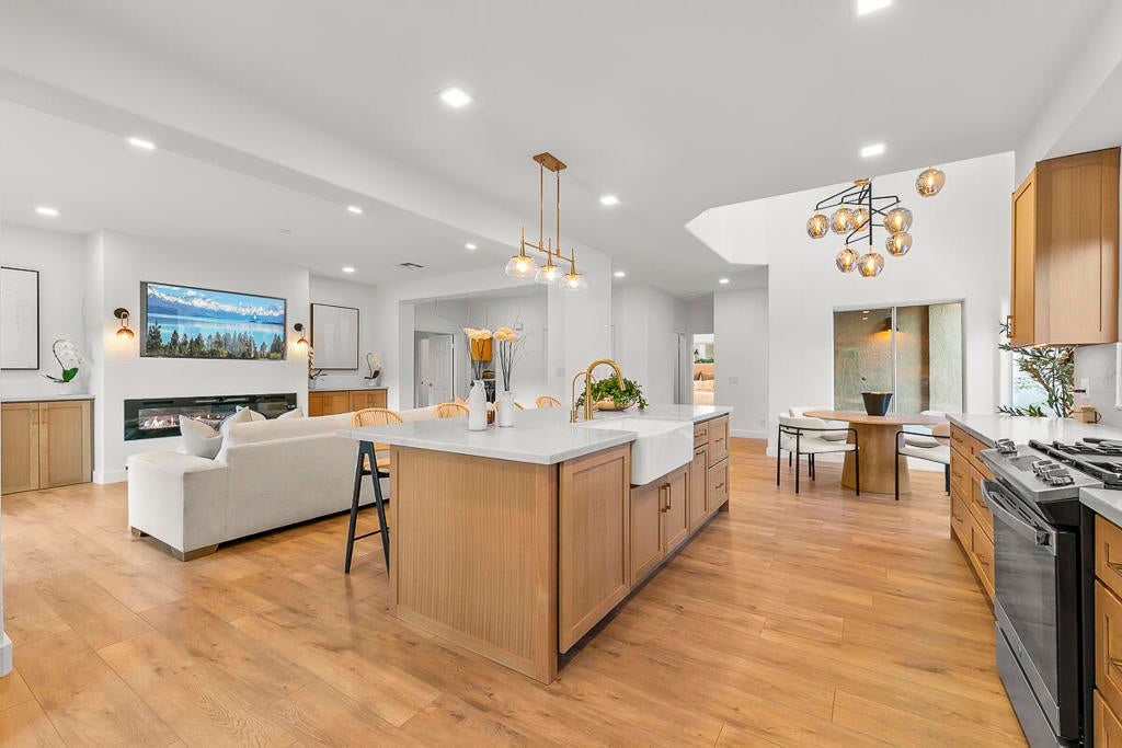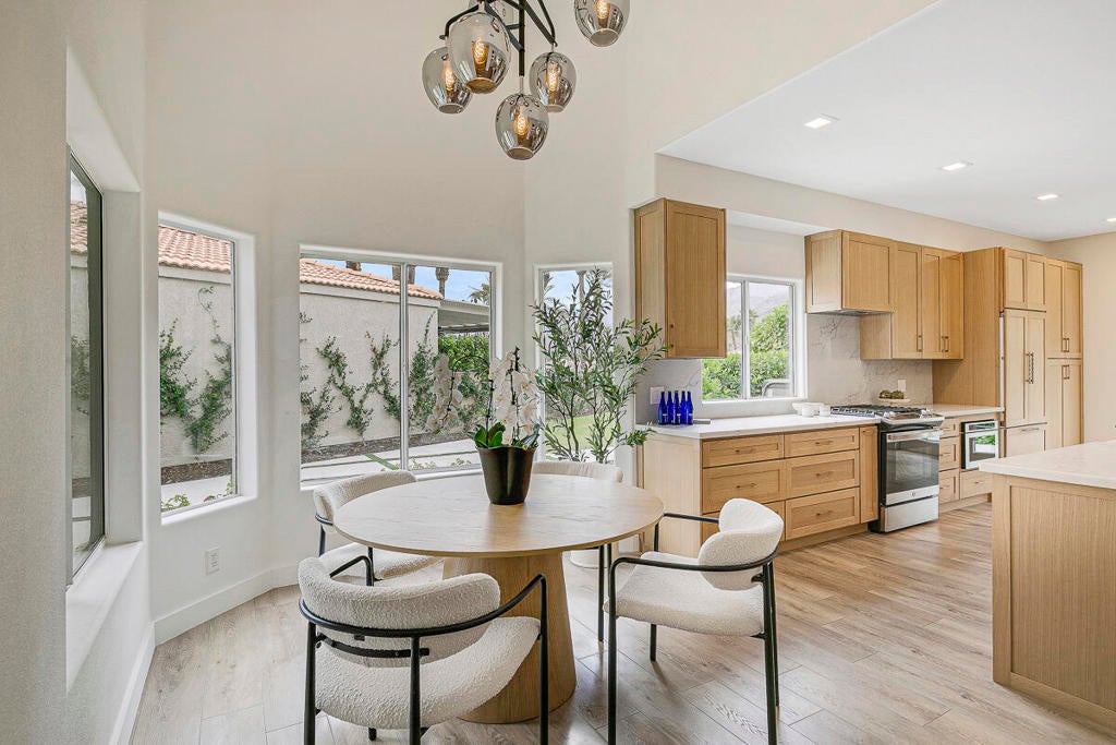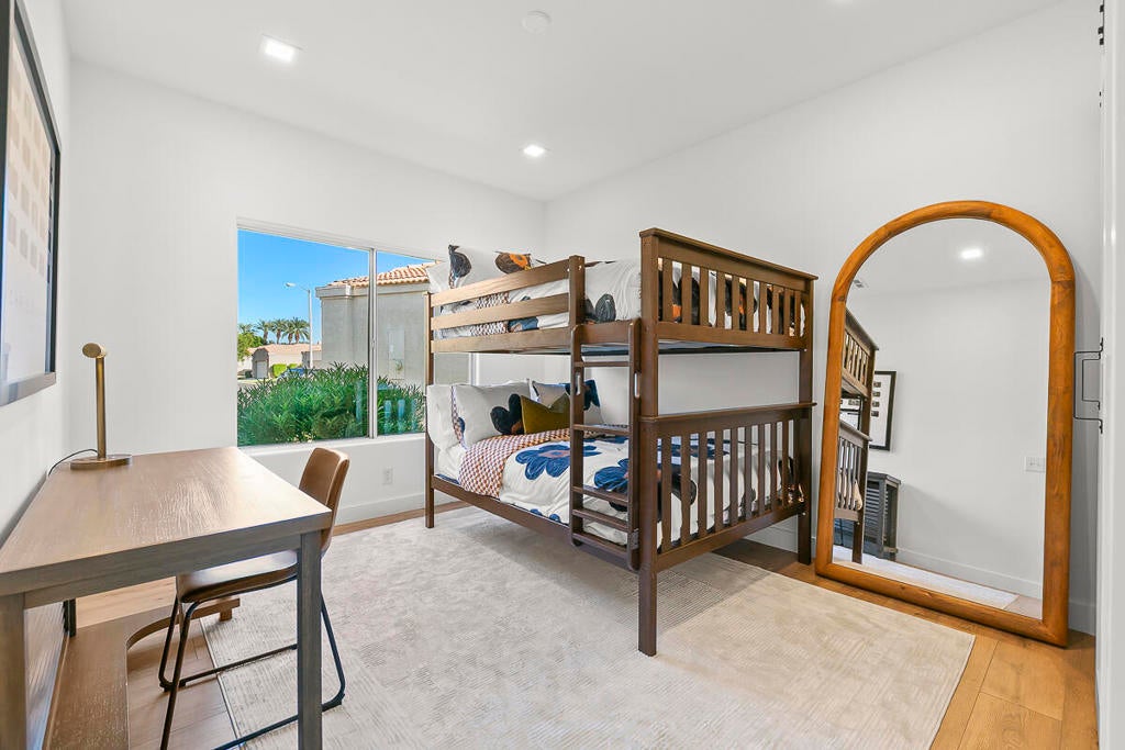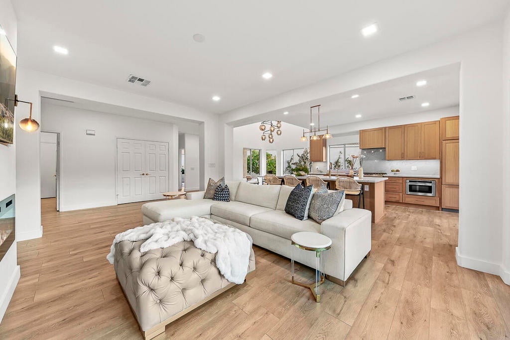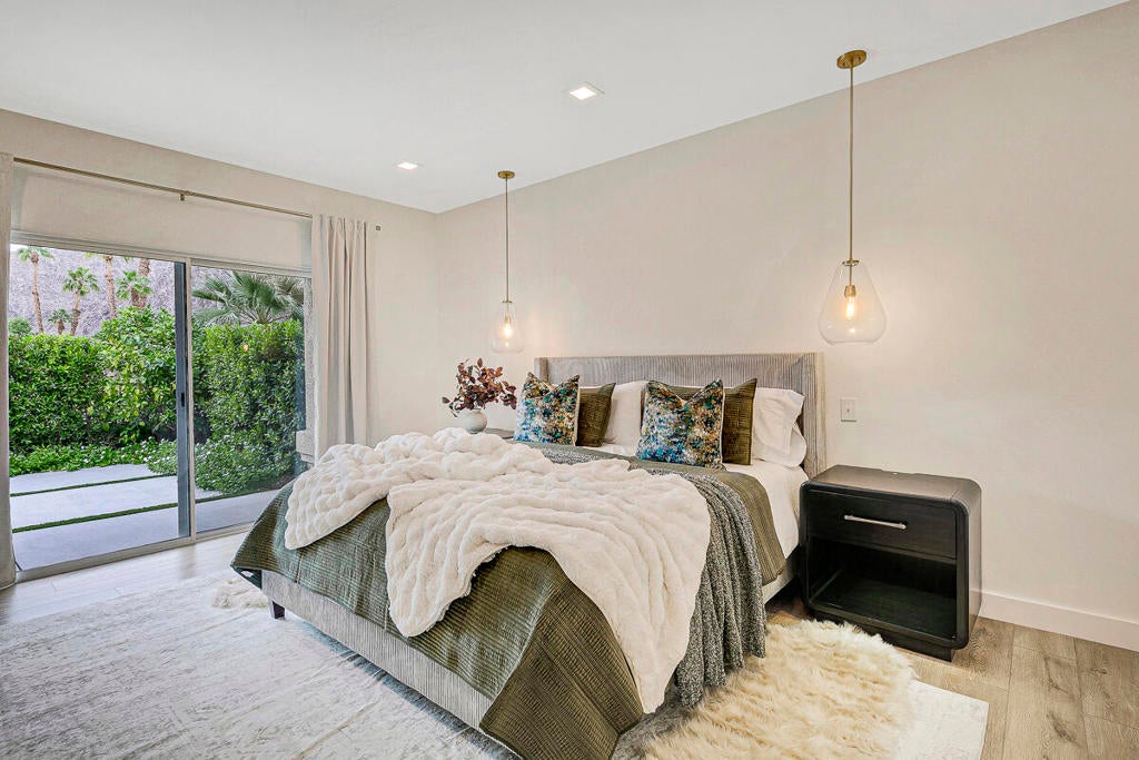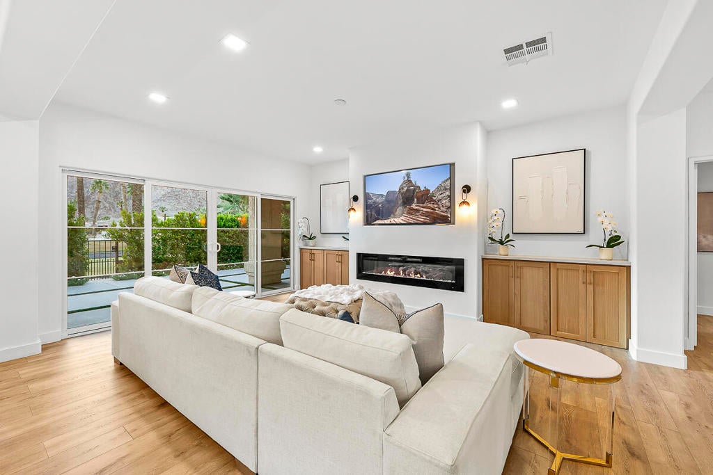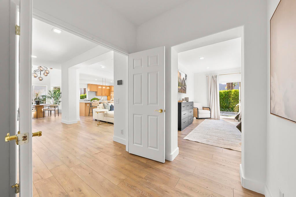 Every detail of this Laguna de la Paz home has been thoughtfully upgraded to create a modern, move-in-ready retreat with sweeping mountain views. Inside, new flooring, fresh paint, decorative lighting, all-new plumbing fixtures, and custom cabinetry with sleek quartz countertops elevate the entire living space. Two walls were opened for a seamless open-concept flow, while new sliding and French doors flood the home with natural light.The great room centers around a cozy gas fireplace and opens directly to a spacious patio where you'll take in uninterrupted mountain vistas. The private primary suite features a generous walk-in closet and its own covered patio, while guest rooms are thoughtfully separated for comfort and privacy.This property is also wired and ready for an ADU, offering future expansion potential for multi-generational living, a guest house, or income opportunity.Laguna de la Paz offers resort-style amenities including a 5-acre lake with walking paths and paddle boats, 15 pools, 16 spas, tennis and pickleball courts, a fitness center, clubhouse, playground, barbecue areas, and controlled access.HOA dues include maintenance of the grounds, guard-gated security, roof coverage, and exterior building maintenance--ensuring easy, low-maintenance living in one of La Quinta's most beautiful communities.Just 3 miles from the Indian Wells Tennis Garden, this home combines the best of luxury upgrades, resort amenities, and full desert beauty.