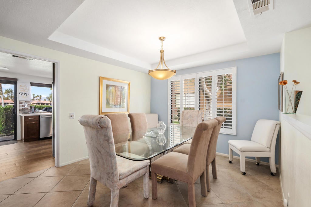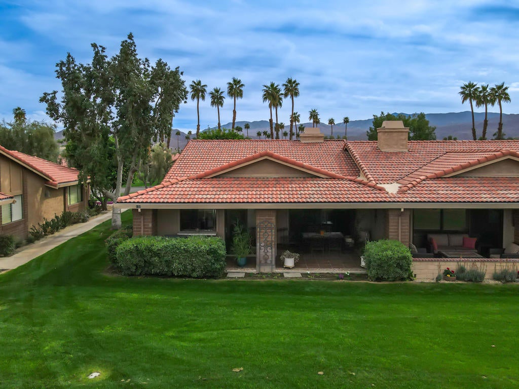 Welcome to your dream retreat! This upgraded 2,051 sq. ft. El Grande model condo offers 3 generous bedrooms and 3 stylish bathrooms, blending comfort with elegance. Soaring ceilings and thoughtfully placed solar tubes fill the home with natural light, creating a bright, open atmosphere.Step out to the tiled patio and take in the serene view of golfers teeing off on a scenic 210-yard par 3. Just a short stroll away, you'll find the sparkling community pool--perfect for sunny afternoons. Inside, a recently updated HVAC system ensures year-round comfort.The kitchen, fully remodeled just 3 years ago, is a chef's delight with modern cabinetry, stainless steel appliances, and a sleek, contemporary design.Enjoy a lifestyle of convenience with the clubhouse just steps away, featuring dining, card games, pickleball, tennis, and a well-equipped fitness center. Chaparral Country Club's prime Palm Desert location puts fine dining, shopping, and entertainment right at your fingertips.From nearly every angle, you'll be captivated by sweeping mountain views--best enjoyed while relaxing on your private patio, listening to the gentle rustle of palm fronds.