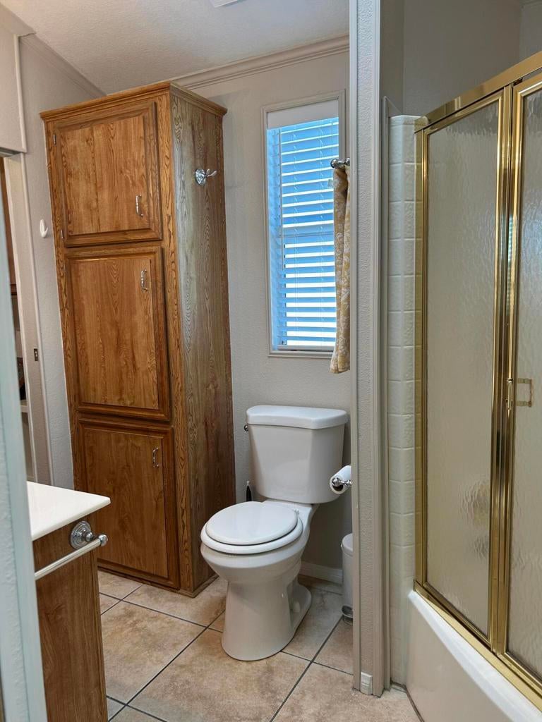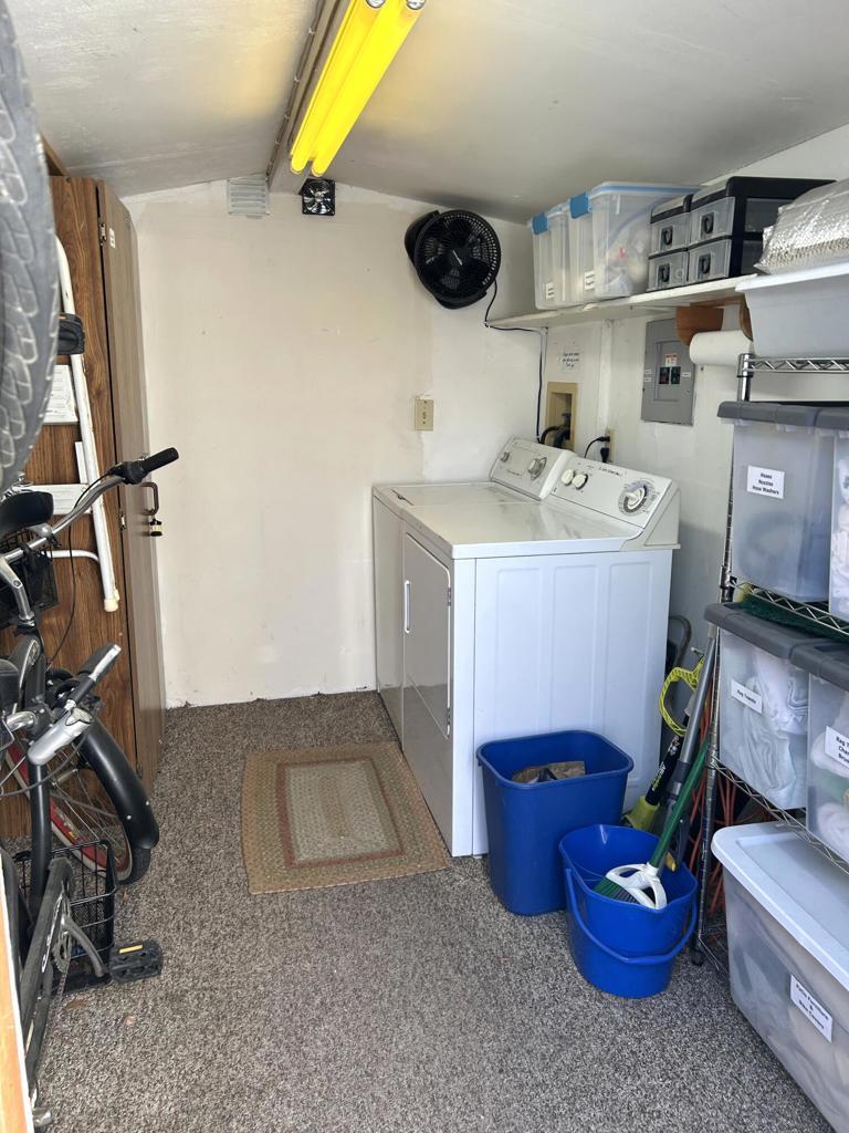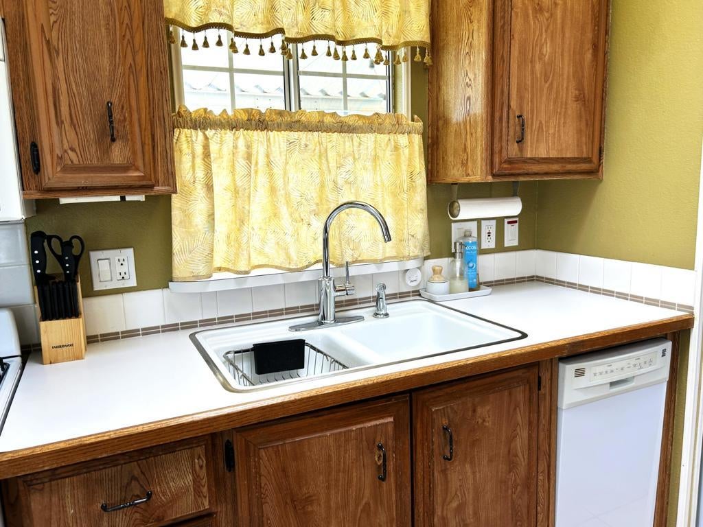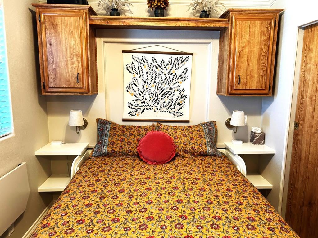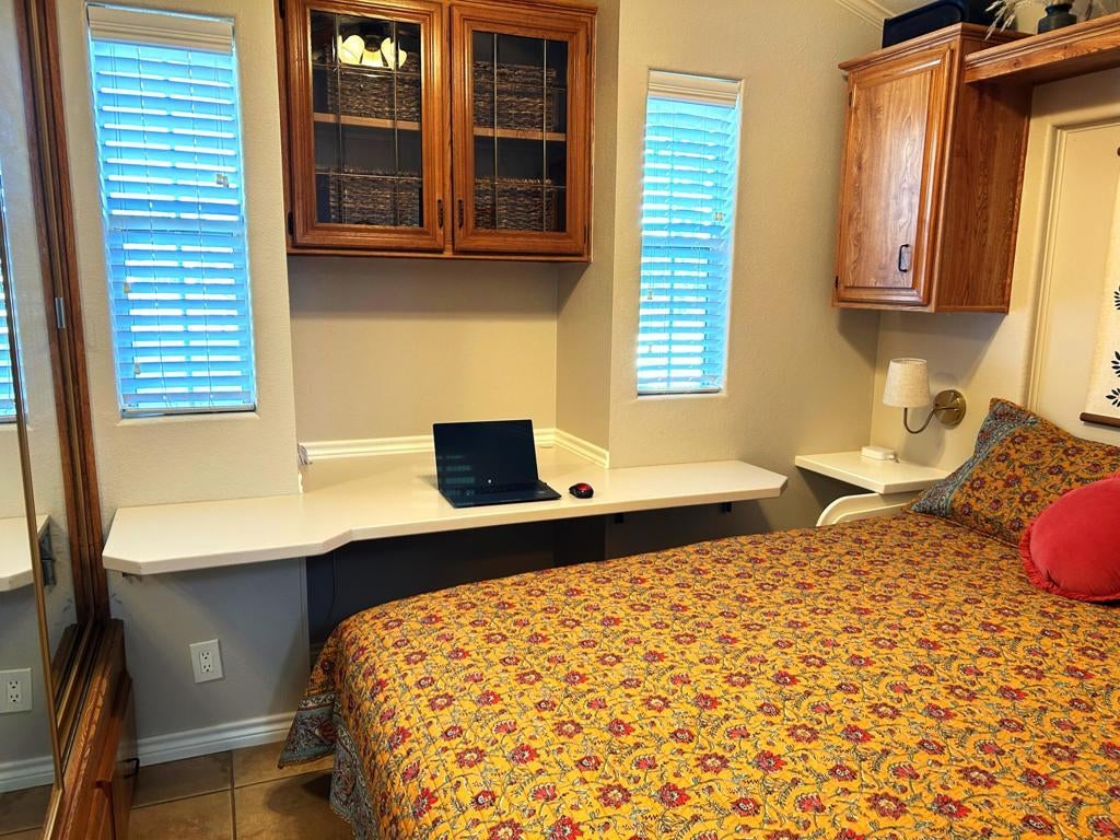 This updated 1992 Park Model has many improvements. The furniture is New, light fixtures have been updated, new ceiling fa, handles and pulss on cabinetry have been changed. New Refrigerator and Range. A New Mattress. Larger bathroom than most Park Models, Washer/Dryer in shed and a Dishwasher in the kitchen. If you lift up the bed and it turns into large desk, perfect for someone who needs to work from home.