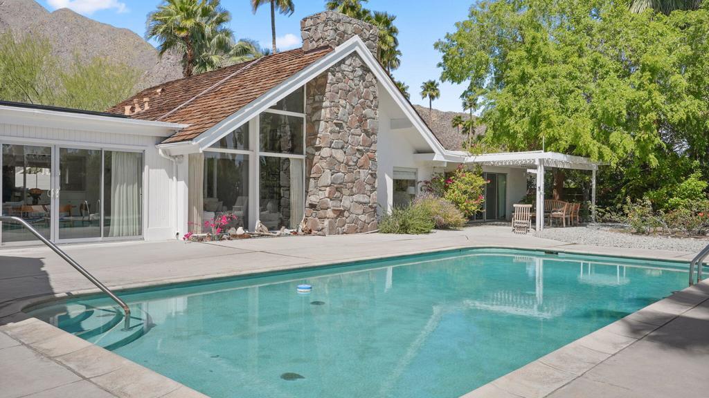 1958 Charles Du Bois Architectural Masterpiece- A rare and sought-after A-Frame 'Swiss Miss' home in Vista Las Palmas, one of only 15 remaining and the only one featuring an architecturally matching guesthouse, originally designed as an art studio.This iconic mid-century modern retreat sits on an expansive lot, offering breathtaking views of the San Jacinto Mountains and open desert skies. Floor-to-ceiling glass walls seamlessly blend indoor and outdoor living, inviting natural light and showcasing the home's dramatic lines. A pool and large Private yard** create an ideal setting for relaxation and entertaining.Thoughtfully preserved original details and modern amenities, including solar energy, enhance this architectural gem's appeal. An unparalleled opportunity to own a piece of Palm Springs history.