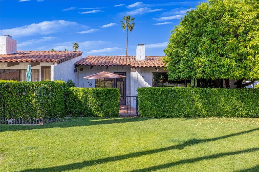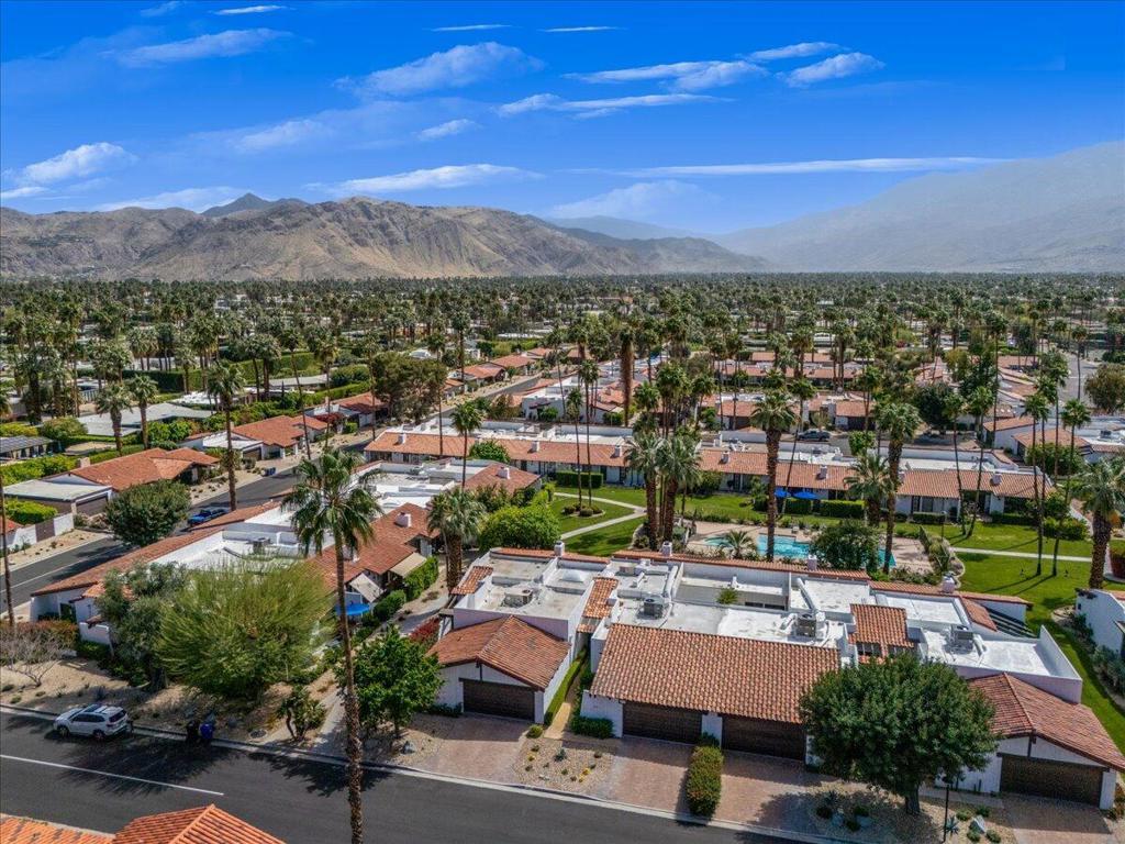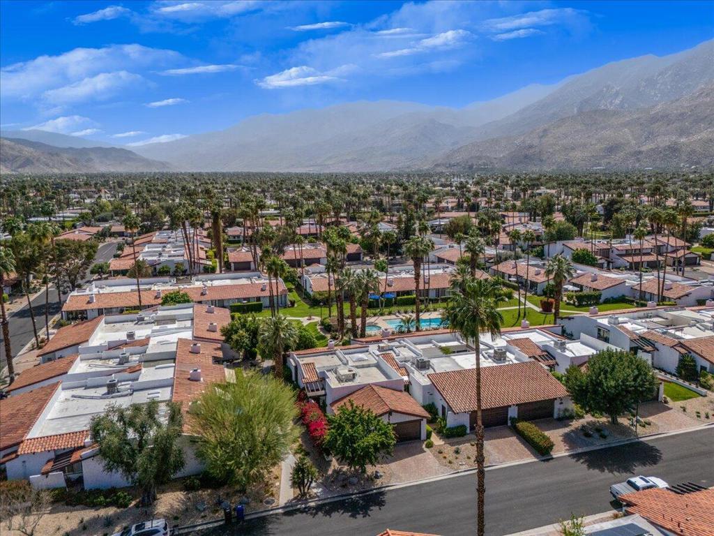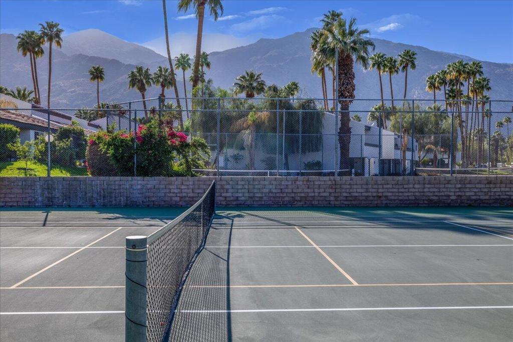 Your South Palm Springs Sanctuary Awaits! Nestled in the heart of Deepwell Ranch, this stunning 2-bedroom, 2-bath corner unit offers the perfect blend of luxury, comfort, and convenience. Just steps from the pool and spa, this home boasts breathtaking southwest mountain views along a lush greenbelt, creating a serene and picturesque backdrop from your private patio. Inside, you experience the spaciousness of vaulted wood-beamed ceilings and the warm ambiance of a fireplace, making the living area perfect for both elegant entertaining and relaxed everyday living. The open floor plan bathed in natural light, showcases an updated kitchen that flows seamlessly into the spacious family/dining room. The primary suite is a true retreat, enhanced with solar tubes and recessed lighting. It features custom closets and a spa-inspired bathroom with quartz countertops, twin sinks, and a full-length mirror. A separate soaking tub and the glass mosaic walk-in shower create a luxurious spa-like escape. The versatile guest bedroom features a Murphy bed, making it ideal as a bedroom or office. It offers access to a stylish bathroom with a glass mosaic-tiled shower and doubles as a powder room for hosting visitors. Every detail has been thoughtfully upgraded, including windows coated with film for privacy and passive temperature control that fills the space with soft, natural light. Stepping outside to your spacious back patio; the perfect spot for morning coffee, sunset cocktails, or summer barbecues, while taking in the breathtaking views. Within the patio you can either enjoy the cooling shade from the mature grapefruit tree or the warmth of the brilliant sun. As part of Deepwell Ranch, you'll enjoy resort-style amenities, including three saltwater pools and spas, tennis court, pickle ball courts, and 24-hour manned security--all within a meticulously maintained, gated community. The attached 2-car garage with epoxy floor and built-in cabinets adds convenience and ample storage. The freshly re-asphalted roads provide a clean, refreshed feel to the neighborhood. Plus, you're just minutes from downtown Palm Springs, with its vibrant dining, shopping, and entertainment hotspots, including L'Horizon, Koffi, and Ace Hotel. This is more than just a home--it's a lifestyle. Don't miss your chance to own this move-in-ready gem in one of Palm Springs' most sought-after communities. Welcome Home!