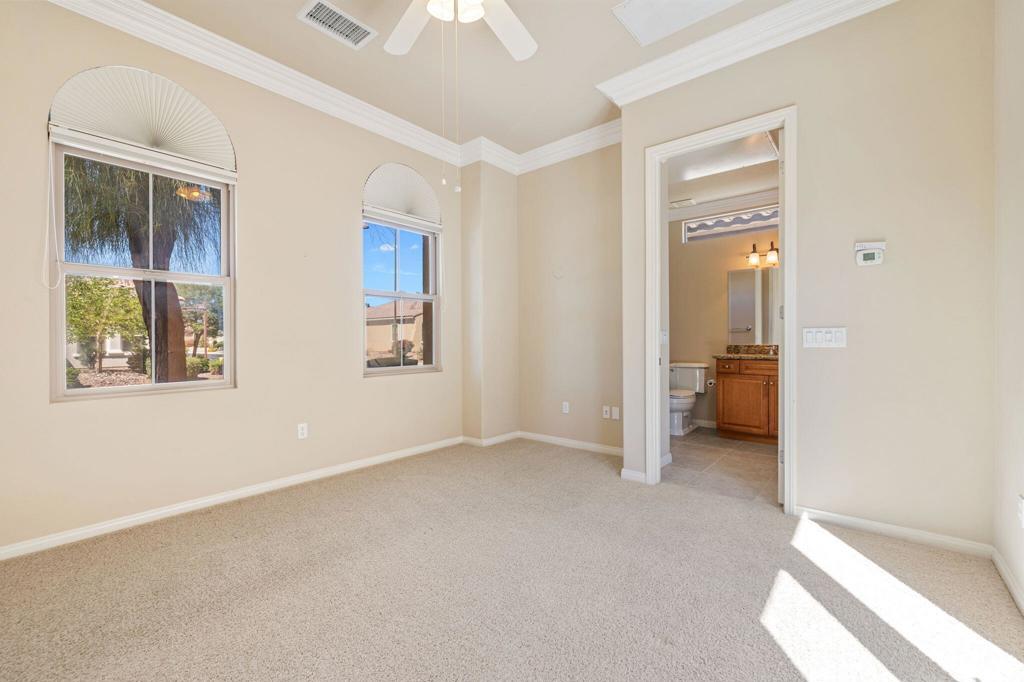 Surrounded by mountains, lush fairways, sparkling lakes, waterfalls, and endless sunshine - this La Paz home has it all! Offering 3 bedrooms, 3.5 bathrooms, with a private casita, the sought-after great room floorplan makes this home perfect for both relaxation and entertaining.Elegant upgrades add warmth and style throughout: tile flooring in all but the bedrooms, crown molding, and custom woodwork at the great room half wall, fireplace, and kitchen island. The kitchen shines with antiqued cabinetry, slab granite counters, stainless appliances, under-cabinet lighting, and convenient pull-out shelving.The spacious primary suite features plantation shutters, direct patio access, and a large walk-in closet. The luxurious bath boasts dual sinks, slab granite counters, an over-sized tub and a large stall shower. The guest suite is equally inviting with plantation shutters, a tub/shower, and granite counters.French doors open from the private casita to the gated courtyard - perfect for guests. A well-appointed laundry room includes abundant storage and a utility sink. The 3-car air-conditioned garage provides plenty of room for storage, hobbies, or even a golf cart.This La Paz home combines style, comfort, and desert living at its best!
