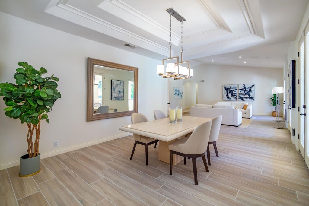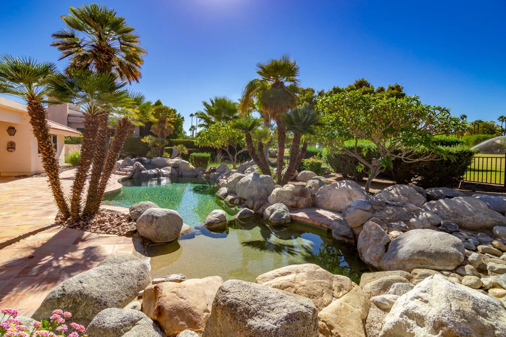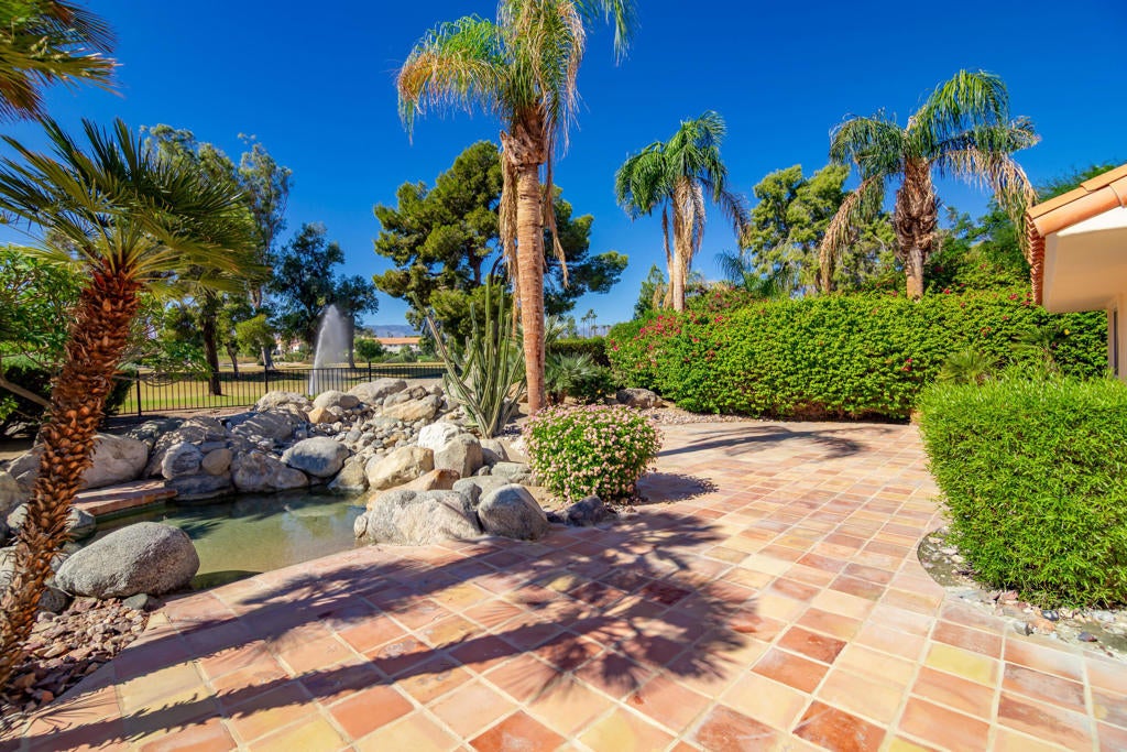 Experience unparalleled luxury in this exquisite estate offering 4 spacious bedrooms each with its en-suite bathroom; encompassing over 3,900 square feet of refined living space. Nestled within the prestigious Avondale Country Club in Palm Desert, this residence boasts prime 5th fairway views and a truly spectacular setting. Step into your private desert paradise featuring a stunning pool with shimmering waterfalls, a rejuvenating jacuzzi, opulent lounge areas, a covered wet bar, outside pool bathroom and lush, meticulously landscaped gardens--perfect for embracing breathtaking desert sunsets. The interior has been tastefully renovated, featuring sophisticated flooring, waterfall style islands in the kitchen along with brand new stainless steel appliances and cabinets. In addition, all interior bathrooms have been remodeled and beautifully updated exuding luxury at every turn. Included HOA amenities encompass 24-hour gated security, a prestigious social membership to the championship golf course, a state-of-the-art fitness center, tennis courts, and pickleball. Just 15 minutes from the world-renowned shopping on El Paseo, this luxurious estate offers an exceptional blend of prestige, comfort, and leisure.