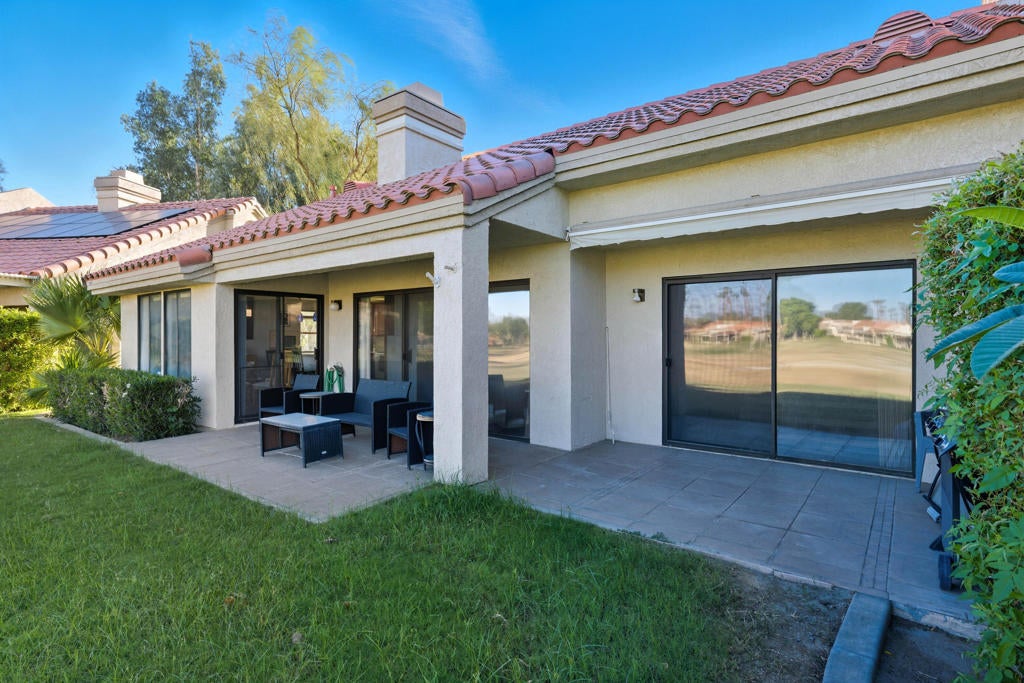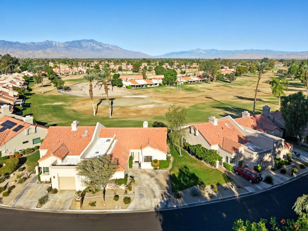 This popular Classic floorplan is nicely updated with 2 bed, 2 bath,1245 sq. ft. and is move-in ready. Located on the 2nd hole of the Palm Desert Resort Country Club. Whether you're looking for a full-time home, seasonal retreat, or investment property, this one checks all the boxes! Step inside to a bright and open floor plan with easy-care vinyl plank flooring throughout and a tile-lined fireplace in the spacious living area. A large sliding glass door leads out to the rear patio, offering gorgeous panoramic golf course views and plenty of space to relax, dine, or entertain outdoors. The kitchen has been tastefully updated with modern countertops, a deep stainless steel sink, and fresh cabinetry. There's also a dining area just off the kitchen, giving you lots of room for entertaining and meals with family and friends. The primary suite is a true highlight, featuring double-door entry for added privacy, a private slider to the backyard, a large soaking tub, dual sinks, and a generously sized walk-in closet. The guest bedroom is perfect for visitors and connects to a Jack-and-Jill bathroom, offering both privacy and convenience. You'll also appreciate the indoor laundry area. This home is part of the Palm Desert Resort Country Club, a welcoming community with access to golf, tennis, pools, spas, and a clubhouse -- all in a beautifully maintained setting. The location is ideal too, just minutes from shopping, dining, entertainment, and world-class events like the BNP Paribas Open and Coachella. If you're dreaming of desert sunsets, peaceful mornings on the patio, and a low-maintenance home in a vibrant community -- this is it. Come take a look and see why this condo is the perfect fit for your next chapter.