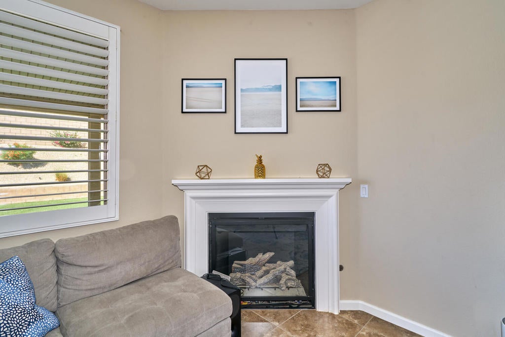 An elegant and highly desirable residence awaits in the peaceful gated community of The Gallery, perfectly situated on a premier corner lot. This central within community location provides enhanced security and a serene environment, free from the distractions of heavy road noise. With a spacious 2,792 square feet, the thoughtfully designed floor plan includes two luxurious master suites, a full size third bedroom, a dining room, and a generous den or office. The spacious great room, complete with a cozy fireplace, is the heart of the home and an ideal space for entertaining. Culinary enthusiasts will appreciate the chef's kitchen, which features granite slab countertops, Maple Shaker cabinets, stainless steel appliances, and under-cabinet lighting. Quality finishes abound throughout, from the 20x20 floor tile to the custom plantation shutters, creating a cohesive and enjoyable living space. The exterior boasts beautifully low maintenance landscaping, allowing more time for enjoying the desert lifestyle. The expansive 13,000+ square-foot corner lot offers ample space for you and your family to enjoy the beauty and tranquility your back yard has to offer, create your personal desert oasis. Additionally, a full three-car garage provides plenty of room for vehicles, storage, and hobbies. This exceptionally clean and move-in-ready home presents an extraordinary opportunity for refined living within a superb, central community location, all complemented by low HOA fees unheard of in such a well maintained community.