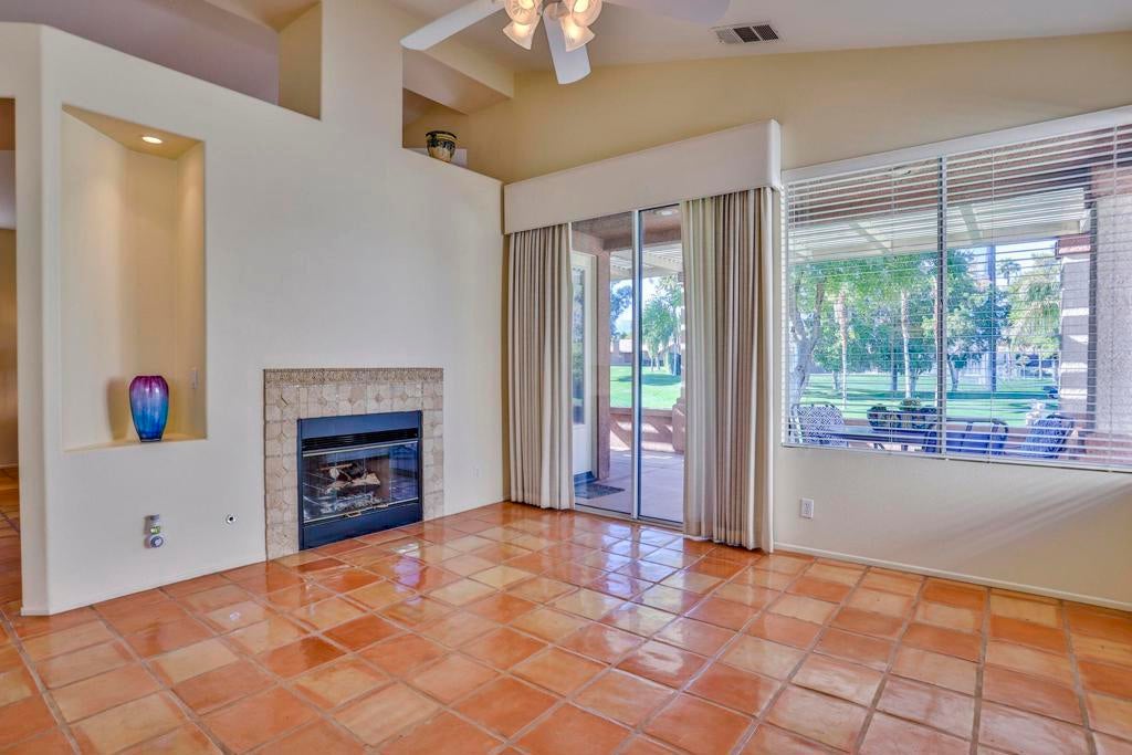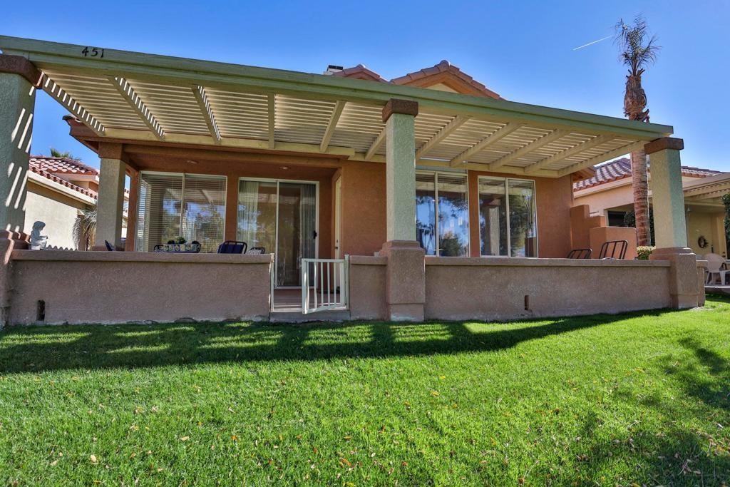 Experience the ease of country club living at , The Oasis Country Club one of Palm Desert's most popular private communities. Ideally situated just steps from the clubhouse, this residence presents the largest floor plan within the community 1787 square feet of airy, light-filled living space designed for comfort and style. PAID OFF SOLAR is an additional benefit. Inside, you'll find three spacious bedrooms, two bathrooms, living room and den, cathedral ceilings, and an open layout that blends elegance with everyday functionality. A gas cooktop, indoor laundry, and direct garage access enhance convenience, while large windows frame beautiful golf course views.Perched on an elevated lot above the first fairway, this home invites seamless indoor-outdoor living. The expansive patio provides the perfect setting for al fresco dining, gatherings with friends, or quiet evenings overlooking the greens.From your doorstep, stroll to the clubhouse for breakfast, lunch, dinner, or happy hour, or unwind by the Enclave pool and spa, located just moments away.The Oasis Country Club is a member-owned, self-managed community, celebrated for its impeccable care and welcoming spirit. Residents enjoy access to an award winning 18-hole golf course, 18-hole putting course, three tennis and pickleball courts, 18 pools and spas, all in a gated community.At The Oasis, every day feels like a retreat. Discover the charm, community, and understated elegance that make this club one of Palm Desert's true treasuresa''centrally located and close to world-class dining, entertainment, and recreation.
