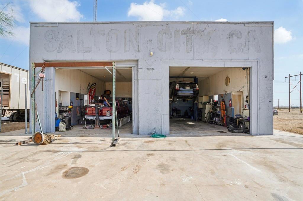 Prime commercial opportunity in Salton City! Once the community fire station, this iconic building now operates as a successful auto repair garage. The spacious garage offers ample work area, storage, and vehicle access. The rear of the garage is a comfortable 2-bedroom residence featuring a recently renovated kitchen, updated bathroom, and open living space. Perfect for an owner-user seeking both a thriving business location and on-site living.