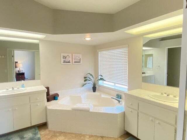 Book your Seasonal Retreat and begin living a Resort Lifestyle NOW! This Super Clean, Upgraded, 3 bedroom / 2 1/2 bath sleeps six! Stay for a full month at less than half the price of a hotel and with all amenities included! Enjoy gorgeous Sunrises and Sunsets, and Indoor/Outdoor living and dining on either the front patio with Southwest facing mountain views or back patio overlooking the pool and Northeast Mountain Views! Greeted upon entry with vaulted ceilings, a large comfy Living Room with Fireplace and Dining area and beautifully updated kitchen complete with a light, bright breakfast nook with views and seating for 4. The primary suite has a walk-in closet, dual vanity, separate tub and shower, and glass sliders with direct access to back patio. The ensuite guest bedroom with walk in closet and private bathroom is down the hall at the other end of the home and Bedroom #3 sleeps an additional 2 guests! 1/2 bath and a separate laundry room separate the rooms. Desert Falls has it all!! Centrally located in the middle of the valley with easy access to everything our beautiful valley has to offer. Within walking distance to restaurants and shopping and only a few miles to all the top entertainment venues. Acrisure Arena, Agua Caliente Spa & Casino, the McCallum Theatre and El Paseo: a 2-mile boulevard of upscale Galleries, Boutiques, and fine Dining Restaurants are all within just a few minutes' drive. Amenities Include use of Tennis, Pickleball, Fitness Center, and 29+ Pools & Spas. Call Today to Reserve your Vacation Getaway!
