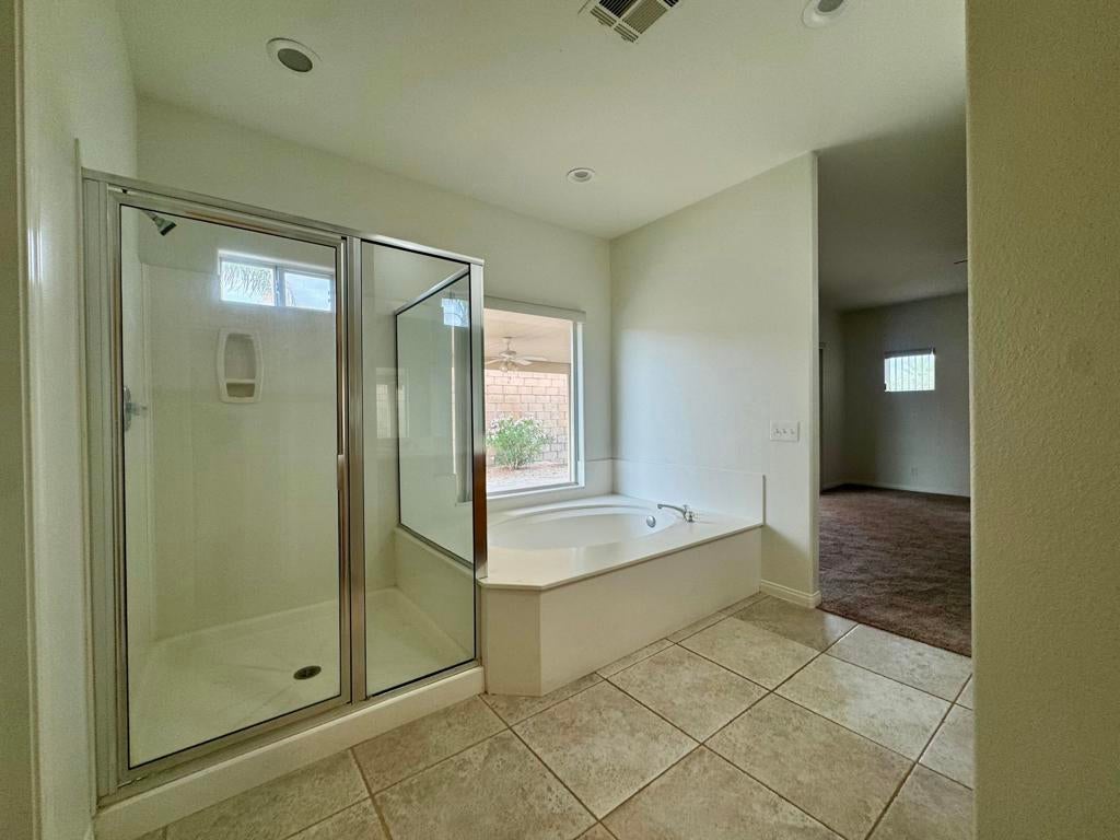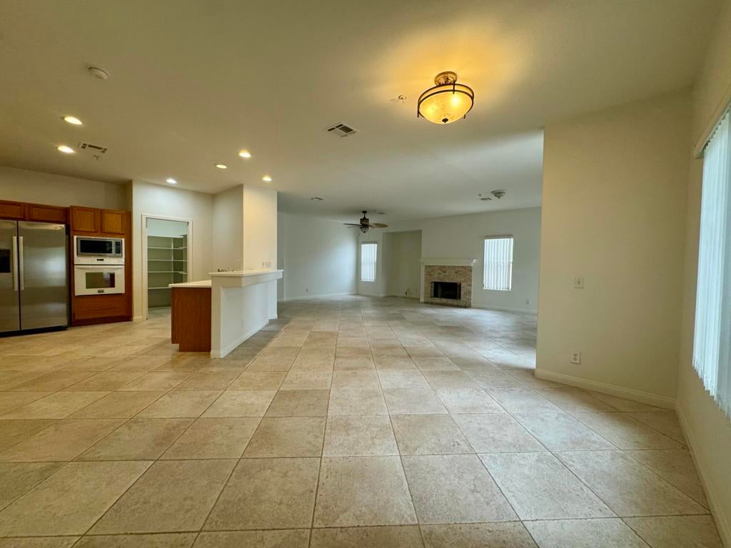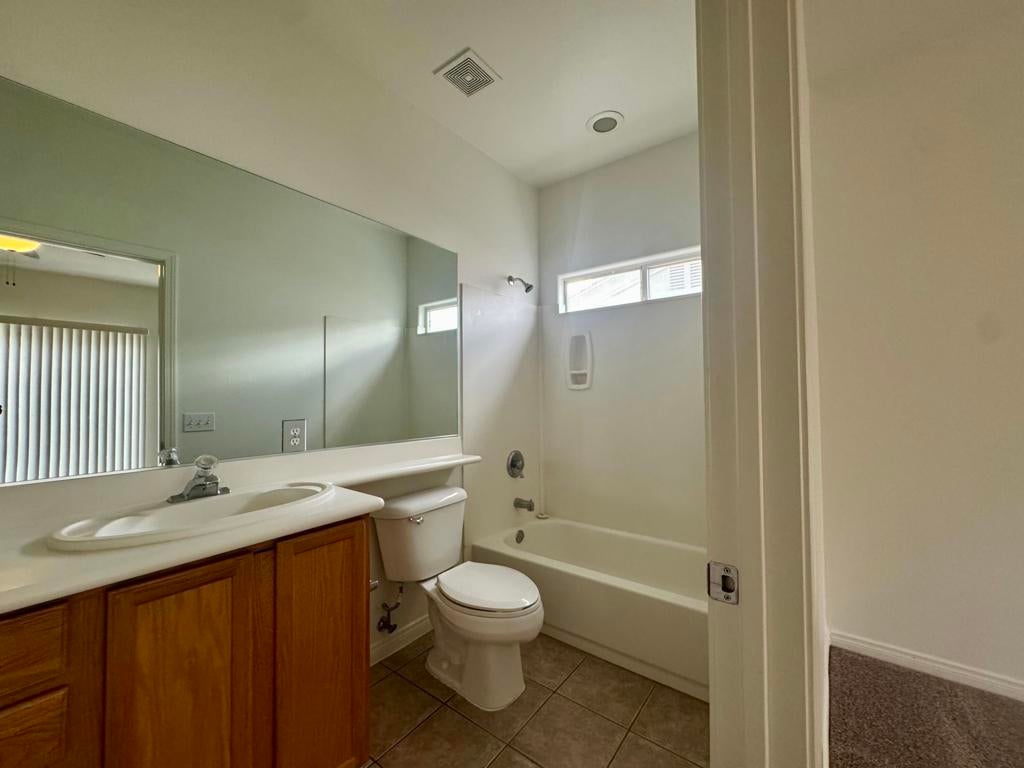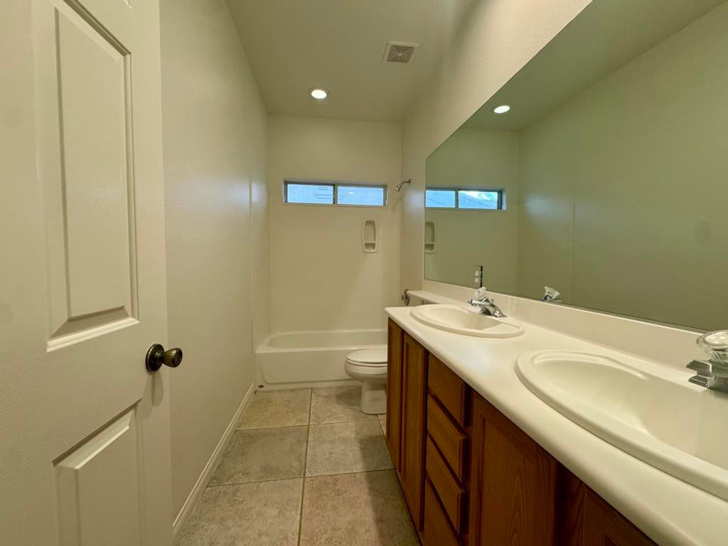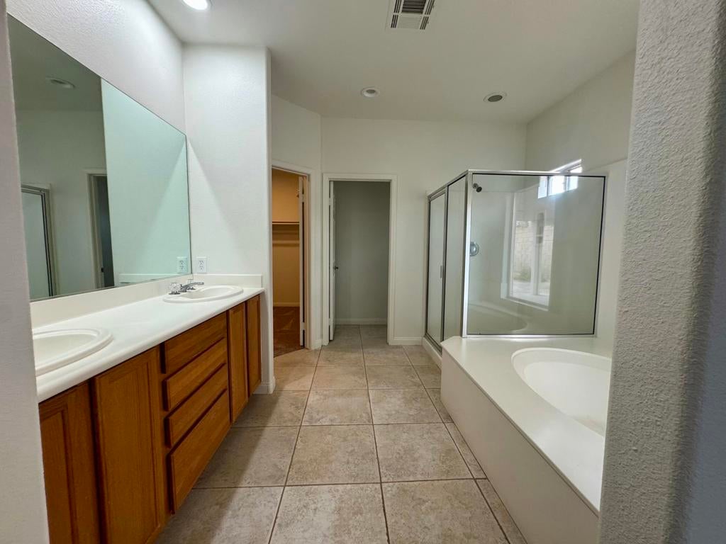 Available for Long-Term Lease. Welcome home to this beautifully maintained 2,221 sq. ft. residence, ideally located on a desirable corner lot. This 3-bedroom, 3-bathroom home features two en-suite bedrooms, making it ideal for multi-generational living or hosting guests. The open-concept great room offers a welcoming space to relax or entertain, complete with a cozy fireplace. The kitchen is a dream for any home chef, featuring a breakfast bar, ample counter space, and a large walk-in pantry with extensive storage. The primary suite is a peaceful retreat, boasting a walk-in closet, dual sinks, a soaking tub, and a separate shower. The second en-suite bedroom also includes a walk-in closet and full bath, providing added privacy for guests or extended family. A bright and airy third bedroom and a full hallway bathroom with dual sinks offer plenty of room for the whole family. The spacious laundry room includes a sink and built-in storage for added convenience. With fresh paint and new carpet throughout, this move-in home is located close to parks, schools, and amenities. Home has a two-car spacious attached garage.