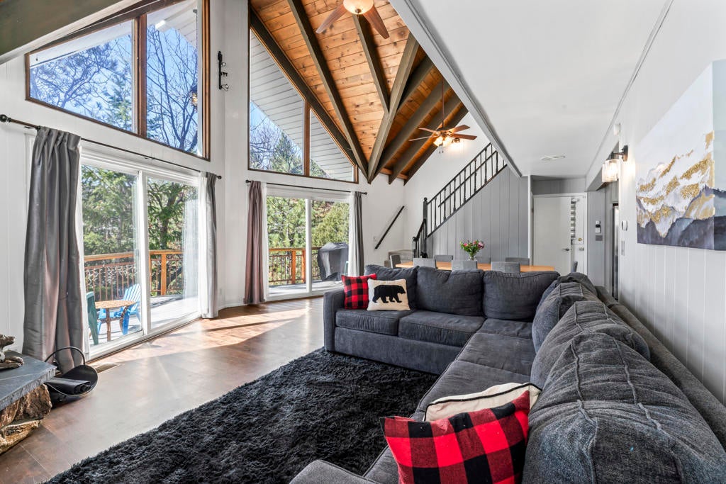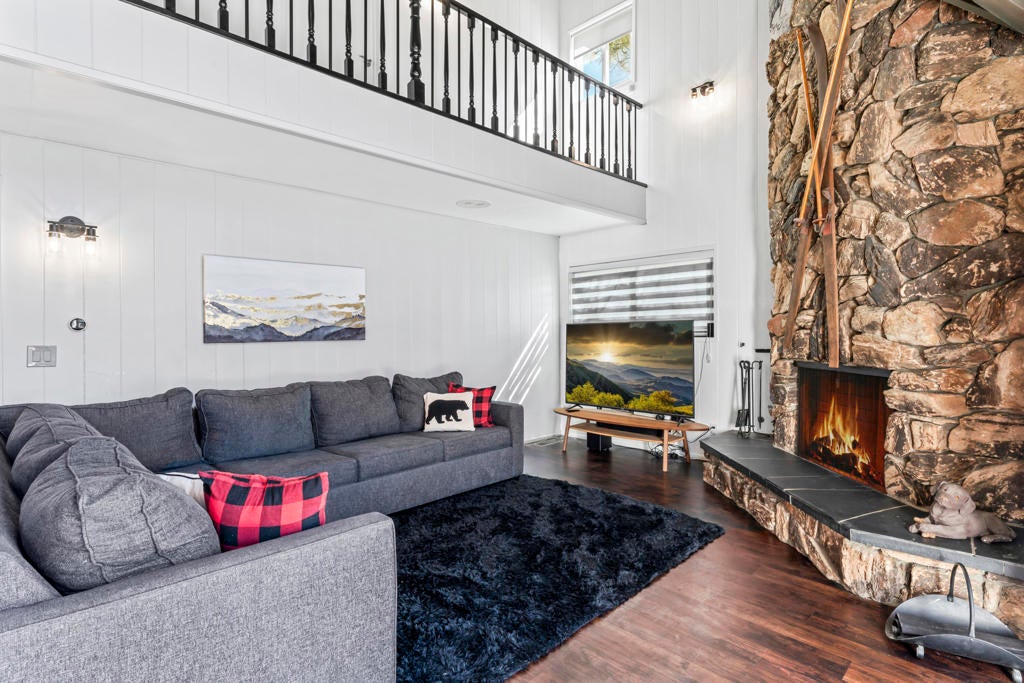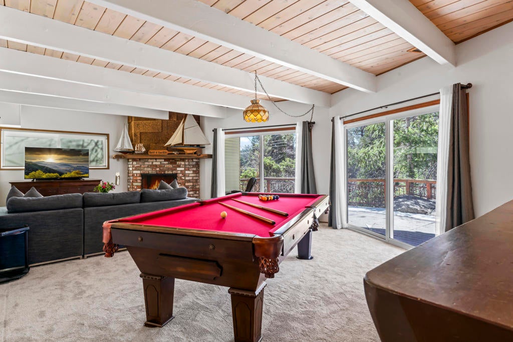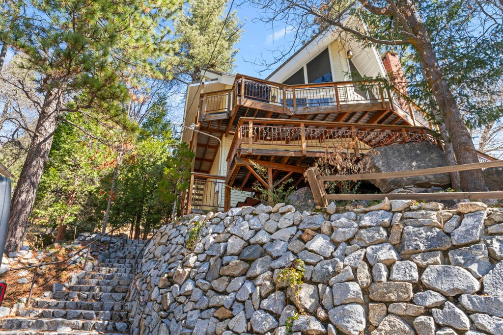 Nestled among lush trees in the highly sought-after West Shore of Lake Arrowhead, this beautifully upgraded 1st-tier prow-style retreat offers the perfect blend of tranquility, style, and convenience. With ALA trail access directly across the street, you can easily enjoy the pristine waters of Lake Arrowhead and access the shoreline walk to Tavern Bay Beach Club, near the picturesque UCLA Conference Center. Step inside and be greeted by soaring ceilings, a striking floor-to-ceiling stone fireplace, and a dramatic wall of glass that floods the space with natural light. The spacious open-concept main level features a large kitchen flowing right into the dining and living areas--perfect for entertaining. Downstairs, a versatile family/game room awaits, complete with a built-in wet bar, fireplace, and separate laundry room and utility/storage area. With 3 bedrooms, 2 full baths, and 2 half baths, this home has room for everyone. Enjoy the outdoors on the large Trex deck and take in the peaceful forest views and a peek of the lake across the street. Additional features include: dual pane windows, newer carpet & fresh paint throughout; low-maintenance vinyl siding; plenty of storage & off-street parking; newer quartz countertops; upgraded sinks and shower; and newer fixtures. Whether you're looking for a full-time residence, vacation home, or investment property, this exceptional Lake Arrowhead retreat is ready for you! Don't miss this opportunity--schedule your showing today!
