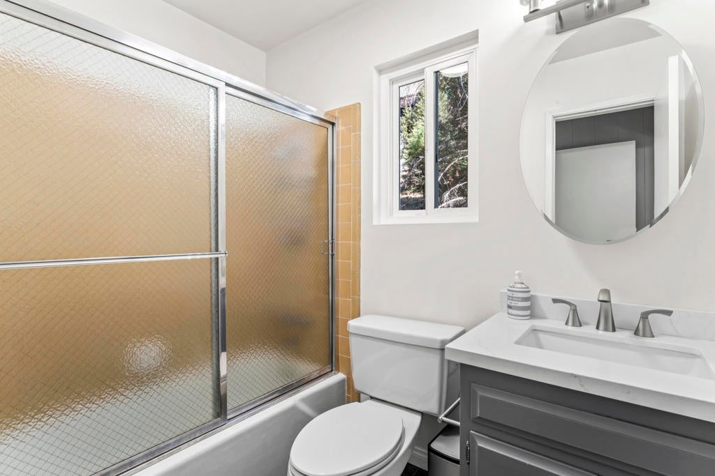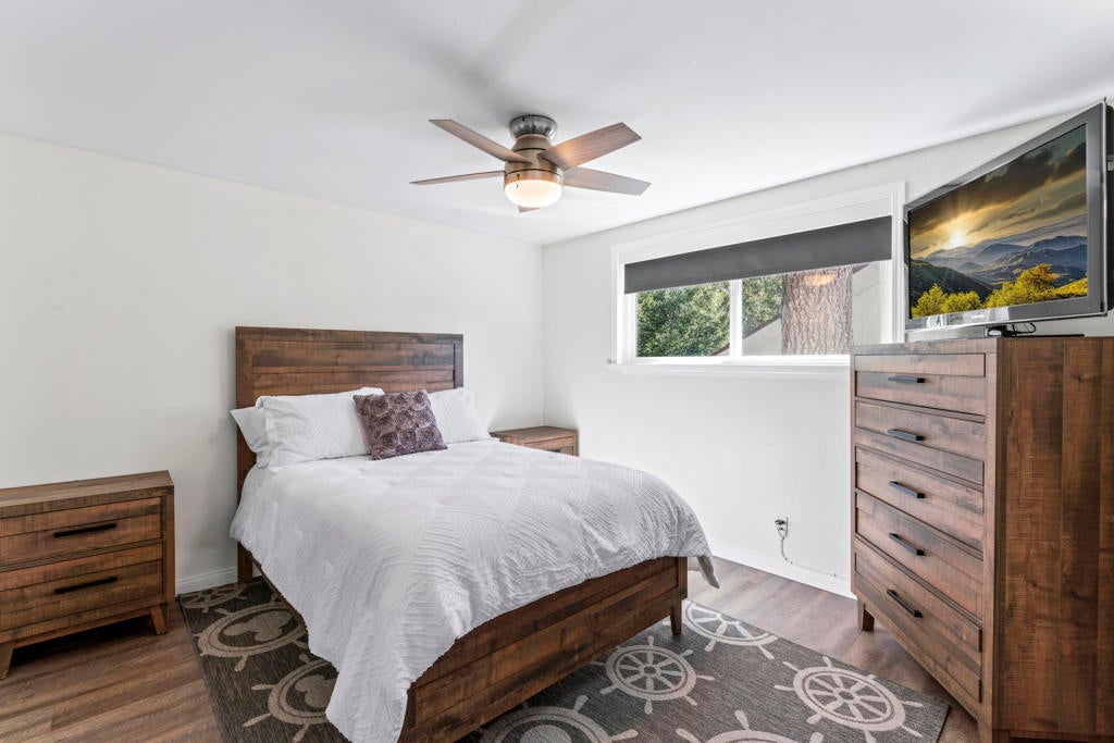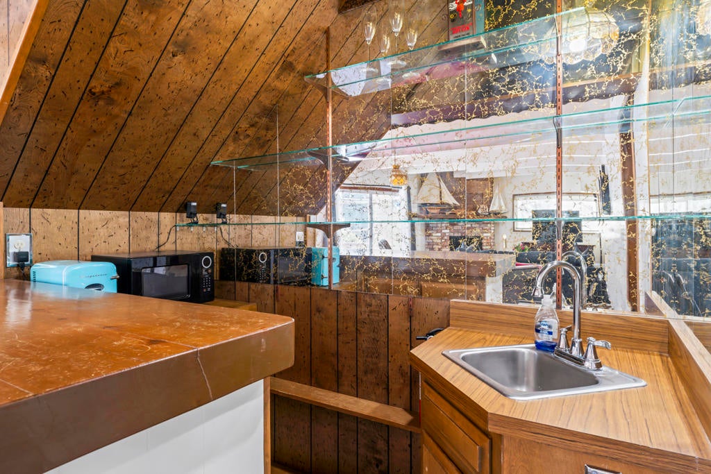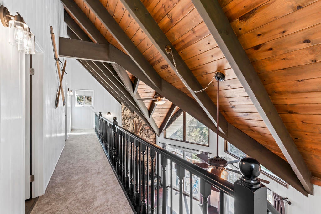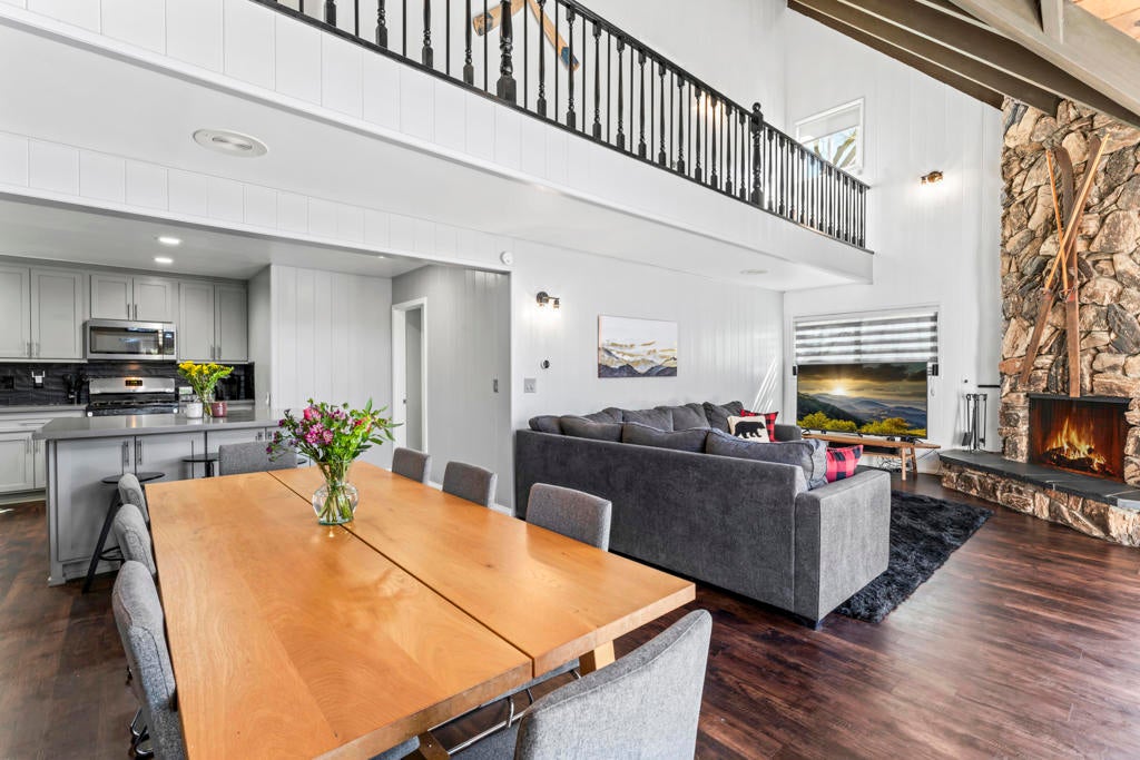 Nestled among lush trees in the highly sought-after West Shore of Lake Arrowhead, this beautifully upgraded 1st-tier prow-style retreat offers the perfect blend of tranquility, style, and convenience. With ALA trail access directly across the street, you can easily enjoy the pristine waters of Lake Arrowhead and access the shoreline walk to Tavern Bay Beach Club, near the picturesque UCLA Conference Center. Step inside and be greeted by soaring ceilings, a striking floor-to-ceiling stone fireplace, and a dramatic wall of glass that floods the space with natural light. The spacious open-concept main level features a large kitchen flowing right into the dining and living areas--perfect for entertaining. Downstairs, a versatile family/game room awaits, complete with a built-in wet bar, fireplace, and separate laundry room and utility/storage area. With 3 bedrooms, 2 full baths, and 2 half baths, this home has room for everyone. Enjoy the outdoors on the large Trex deck and take in the peaceful forest views and a peek of the lake across the street. Additional features include: dual pane windows, newer carpet & fresh paint throughout; low-maintenance vinyl siding; plenty of storage & off-street parking; newer quartz countertops; upgraded sinks and shower; and newer fixtures. Whether you're looking for a full-time residence, vacation home, or investment property, this exceptional Lake Arrowhead retreat is ready for you! Don't miss this opportunity--schedule your showing today!