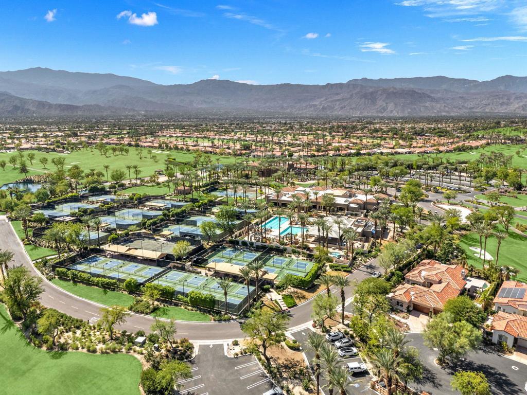 A Rare Find in Indian Ridge Country Club. Built in 2006, this stunning Ocotillo 3G is one of the newest homes in Indian Ridge and sits on a rare two-lot parcel. With 3,869 square feet of luxurious living space, the home features 4 bedrooms and 4.5 baths including a private guest casita, perfectly designed for comfort and privacy. Step inside and you'll find beautiful custom upgrades throughout, from granite slab counters and GE Monogram appliances to wool carpeting, Venetian plaster walls, and remote-controlled shades. Every detail reflects quality and sophistication, complemented by high-end furnishings included in the sale. The outdoor living space is your private resort complete with multiple seating areas, a sparkling saltwater pool and spa (accessible directly from the primary suite), and breathtaking west-facing views of the San Jacinto Mountains across the Grove's 9th fairway. The pool features a new filter pump and heater, and its interior was recently bead blasted for a fresh, like-new finish. Located within the HOA section, your monthly dues conveniently cover exterior landscaping, roof maintenance, exterior painting, fire insurance on the structure, cable, Wi-Fi, and trash service, allowing you to truly relax and enjoy the desert lifestyle. Best of all, this home includes a registered Golf Membership, eliminating the waitlist. Just a short stroll from the clubhouse, dining, fitness center, and tennis and pickleball courts, everything you need is right at your fingertips. Discover easy luxury, timeless design, and effortless living in one of Indian Ridge's most desirable locations.