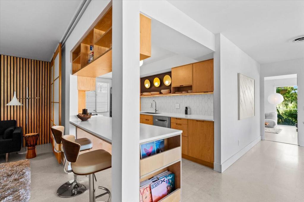 Welcome to the exclusive hillside enclave of Rimcrest, a stunning retreat where mid-century modern charm meets breathtaking panoramic views above Palm Springs. Built in 1967 and designed by Leroy Rose & Harold Carlson this rare freestanding detached condo offers the privacy of a single-family home with the ease of resort-style living. Spanning 1,600 square feet, this beautifully remodeled 2-bedroom, 2-bathroom residence also features a versatile flex space perfect for a home office, den, or bedroom for additional guests, easily made private with original refurbished shoji screens. Stylish updates include new eco-friendly cork flooring, designer-tiled bathrooms, and a sleek galley kitchen with new custom cabinetry and lighting. Step onto your expansive patio, an entertainer's dream, where you can soak in the mesmerizing desert landscape. And when it's time to unwind, a sparkling community pool and spa are just steps away. Furnishings available outside of escrow. Don't miss this rare opportunity to own a slice of Palm Springs paradise!