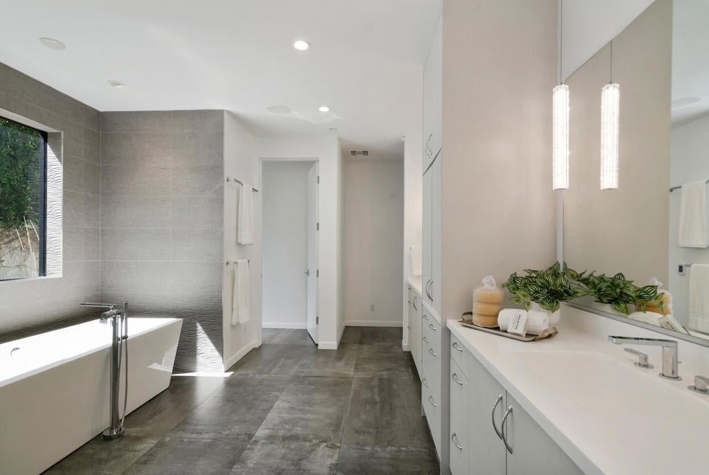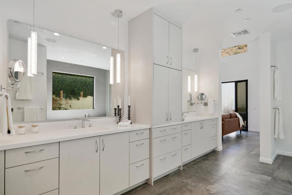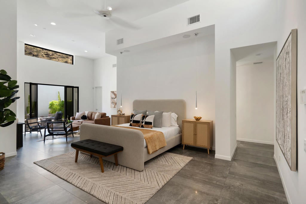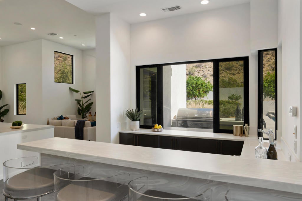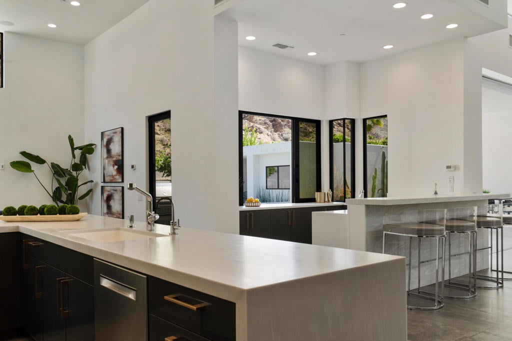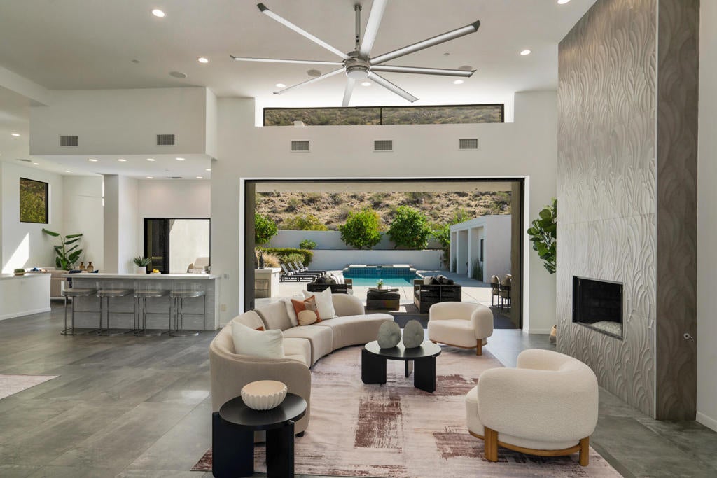 Modern, sophisticated and extensively upgraded, this bright and open custom estate redefines luxury livingin Palm Springs' preferred Andreas Hills enclave. Virtually stripped to the studs and reimagined, the contemporary residence generously accommodates both stylish daily living and grand-scale entertaining in a sprawling single-level floor plan that measures approx. 5,715 s.f. A large pivoting glass entry door introduces main living areas that include a great room with clerestory windows, a sleek fireplace, glass pocket doors to the backyard, and a walk-in wet bar with pass-thru to the outdoor kitchen. Five bedrooms with ensuite (+ large office with private bath could become a 6th bdrm) and 6.5 baths --including a detached casita--ensure comfort for everyone. Open to living areas, a newer chef-caliber kitchen is appointed with high-gloss custom cabinetry and custom-designed countertop, two islands, stone countertops, two sinks, and top-tier appliances including a built-in cabinet-matched refrigerator and a 60 inch commercial-grade stainless steel American Range. Additionally, there are two 30 inch gas ovens and a Commercial-grade fire suppressant system installed by Desert Fire. Powered by a rooftop net-zero solar array, this expertly crafted home hosts newer electrical and plumbing systems, oversized ceiling fans throughout, whole-house audio, and a three-car garage with EV charger. Luxuriate in a primary suite with sitting area, fireplace, patio, a freestanding tub, oversized shower and a walk-in closet. Located on fee land (no lease), the expansive homesite backs to a hill and is distinguished by a pool and spa with solar heat, a spacious loggia, outdoor shower and a built-in BBQ. Photos taken at the time the home was furnished (vacant now).