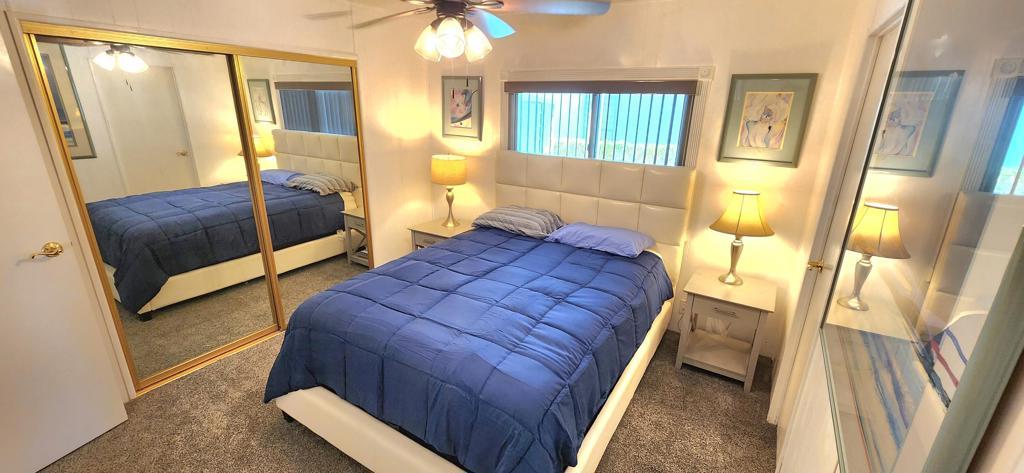 This spacious 2-bedroom, 2- bath residence is situated on a sought-after interior street and features large dual-pane windows with vertical blinds, ensuring abundant natural light and view of the mountains. Significant enhancements have been professionally completed to improve energy efficiency, including new heating and air conditioning, ceiling fans, a new roof, and solar system. The solar lease can be easily transferred to buyer. Newer carpeting in the living room, dining area, and bedrooms provides added elegance and comfort. Well-appointed kitchen affords convenient access to both the formal dining room and a generously sized family room/den, presenting an excellent venue for entertainment. The primary suite offers double closets, while the en-suite bath features a large soaking tub, dual sinks and walk-in shower; the guest bathroom has been updated. This well-maintained home is move-in ready for new owners. Residents of Palm Desert Greens benefit from proximity to shopping, dining, casinos, and medical facilities. A low monthly fee of $400 includes complimentary golf, 24/7 guard-gated security, cable television, Wi-Fi, trash removal, an on-site restaurant and bar, and numerous other amenities. Please contact us to schedule a private tour of this exceptional home.