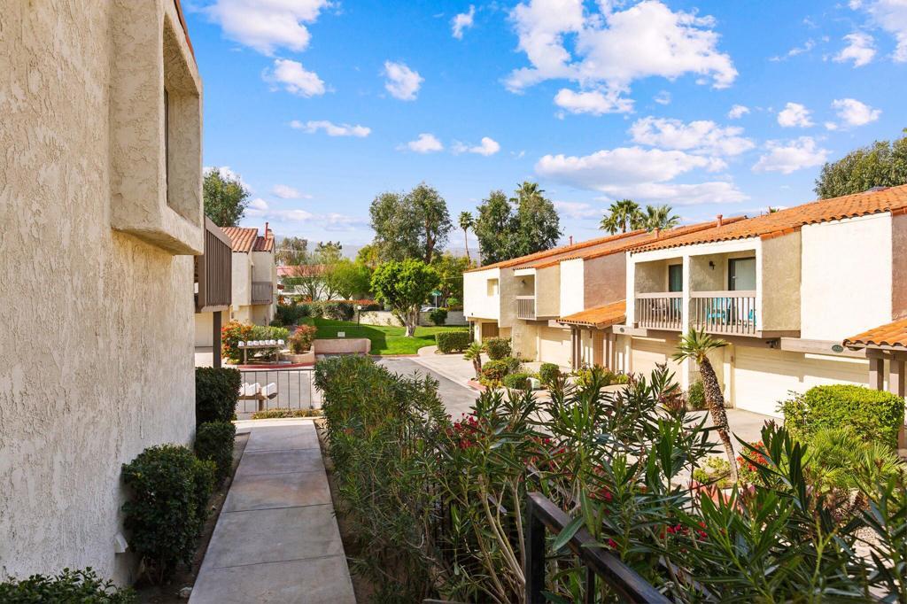 This Wonderul unit is located in SOUTH PALM DESERT, the Bel-Air of Palm Desert.It is very rare that a property comes up for Sale in the very desireable Mountain Villas community.This is a well located corner condominium. Excellent size bedrooms with a Den/Office/Reading room/Study, anything you want to make of it. Light & bright with a truly wonderful indoor atrium, perfect for a hammock, giant loung chair, etc limited only by your imaginaton. Lots of counter & cabinet space in the kitchen which is very nicely appointed. The kitchen also has a wonderful view of the pool, green space & very nice view of the mountains. The master bedroon has a small balcony for those who like to sit & watch the world go by.The back sports a nice, private patio, again with a view of the mountains, the pool, trees, and green space. There is an oversized two car garage with a work space for those who enjoy that kind of activity. If that isn't enough, & by all rights it should be, there are mutiple community pools, a club house and tennis courts. Not only that, but Mountain Villas is a Gated community & is very close to El Paseo (the Desert's answer to LA's Rodeo Drive), with all the shopping & eateries that one can hope for. If location is important to you, & I am sure it is, look no further. It should be noted that the HOA Takes care of the Maintenance of the Pools, the Spas, the Community Controlled Access Gate, the Roof, the Exterior of the Building, the Gounds, the Clubhouse, there is Guest Parking and the complex is Pet Friendly. KIt is very hard to find this size property in a gated community in Palm Desert for under $400,000. a wonderful condo at a great price. Very easy to show.