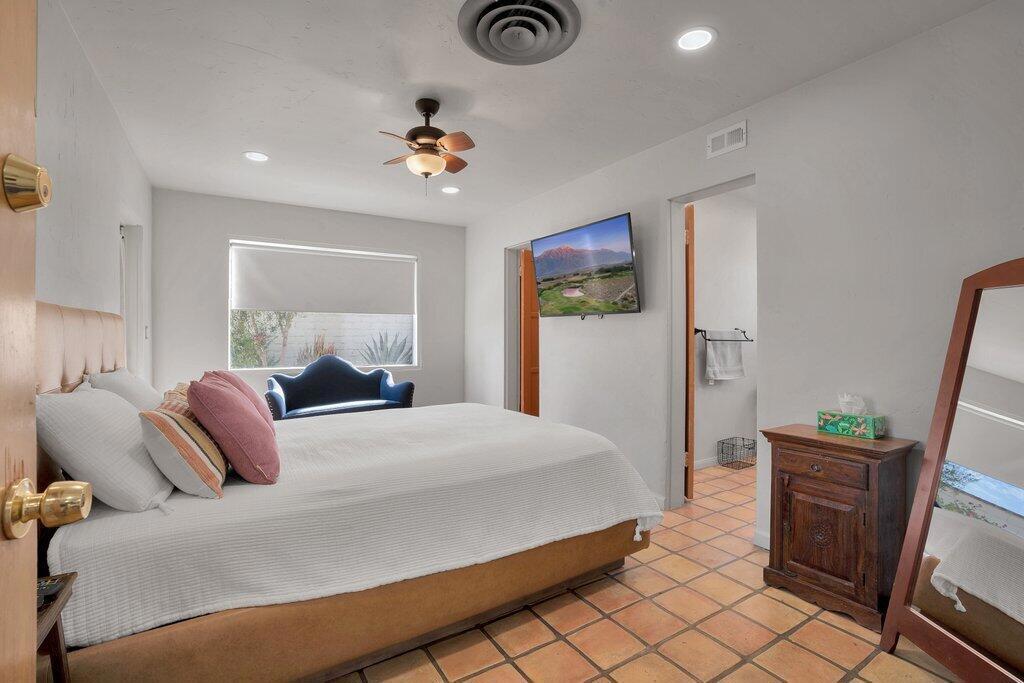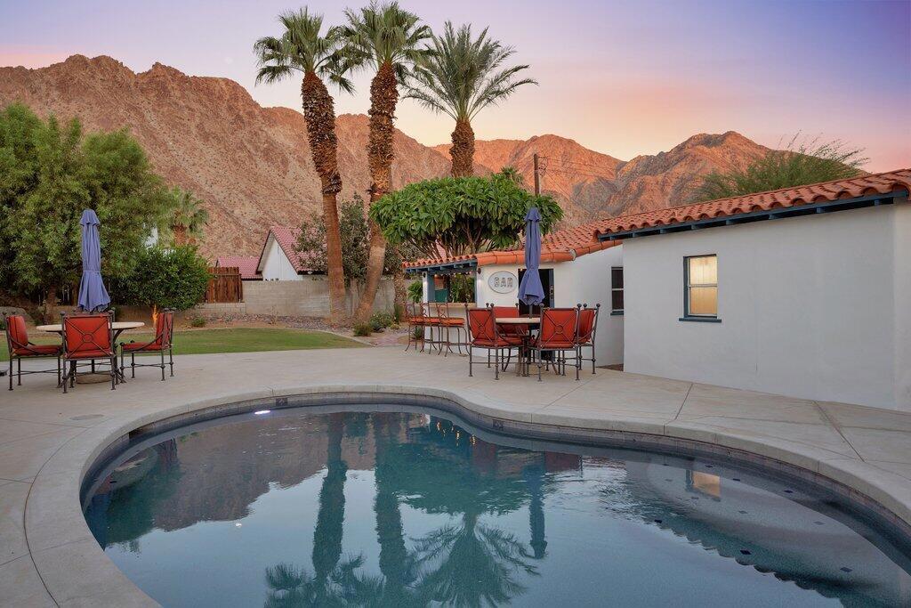 Welcome to Casa Del Sol - a one-of-a-kind 1936 Spanish style retreat that blends historic charm with relaxed desert living. Nestled on a rare triple lot in the scenic La Quinta Cove, this beautifully preserved home offers a true sense of privacy and space, surrounded by desert landscape and picture perfect mountain views. The main home features three bedrooms and two full baths. A separate studio casita includes its own kitchen and bathroom. This property is truly a rare find, Enjoy peaceful mornings in the courtyard, lazy afternoons by the pool with a fun bar area, and evenings exploring Old Town La Quinta's restaurants, shops, and festivals, all just minutes away. Whether you're here for a month-long retreat or a seasonal stay, Casa Del Sol offers the perfect blend of charm, privacy, and the ultimate desert relaxation.---------Available for stays of 30 days or longer. Furnished and ready to enjoy.