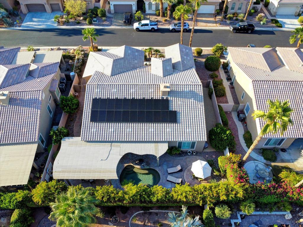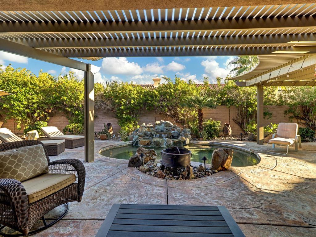 Welcome to 81597 Camino El Triunfo, a stunning El Dorado model in the desirable 55+ community of Sun City Shadow Hills. This beautifully maintained 2-bedroom, 2-bath plus den home offers an ideal blend of sophistication and desert comfort. The open-concept design features high ceilings, tile flooring, and large windows that fill the space with natural light. The gourmet kitchen includes granite countertops, stainless-steel appliances, a center island, and abundant cabinetry--perfect for entertaining. The spacious primary suite offers a luxurious bath with dual vanities, soaking tub, and walk-in closet. A versatile den provides a great space for an office or guest room. Step outside to a private backyard oasis with an extended covered patio, lush landscaping, BBQ island and tranquil sitting areas next to an inviting spool with waterfall -- ideal for relaxing or hosting friends. Enjoy resort-style living with two golf courses, fitness centers, clubhouses, pickleball, tennis, pools, and over 60 social clubs in one of the desert's premier active-adult communities. The upgrades to this property are too much to list. Please see the document folder for additional upgrade information. Call today at 760-574-2299 for showings. Use the link below for Sun City Shadow Hills development information. https://www.scshca.com