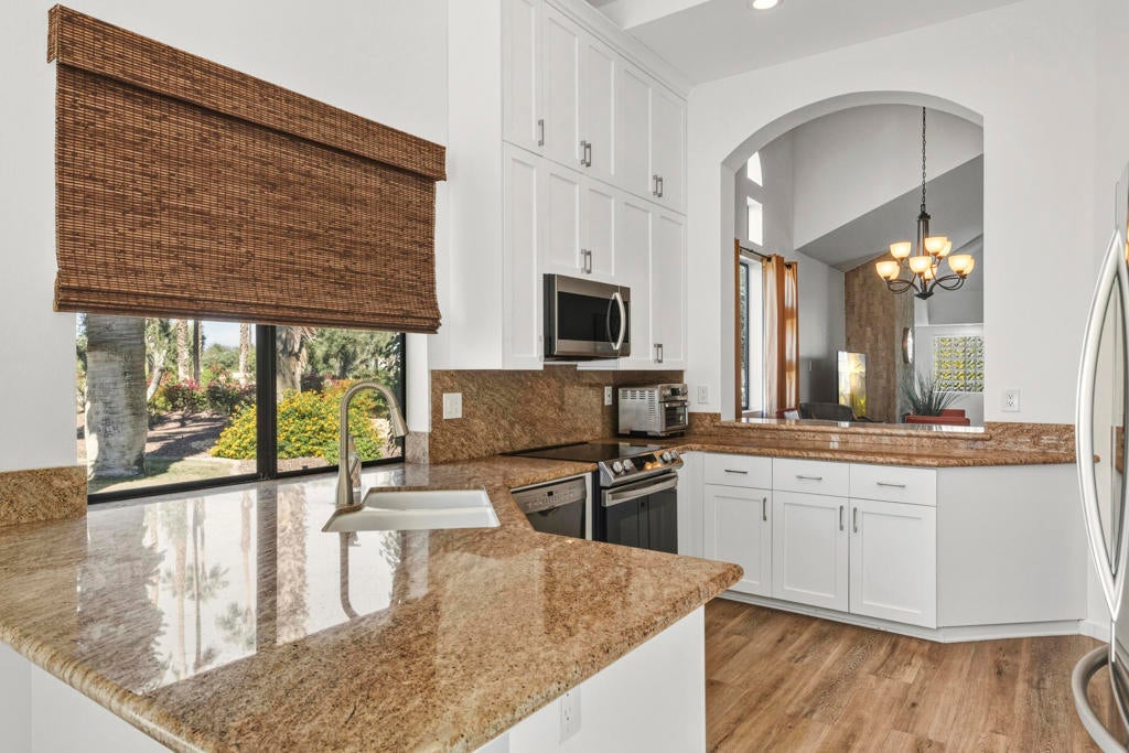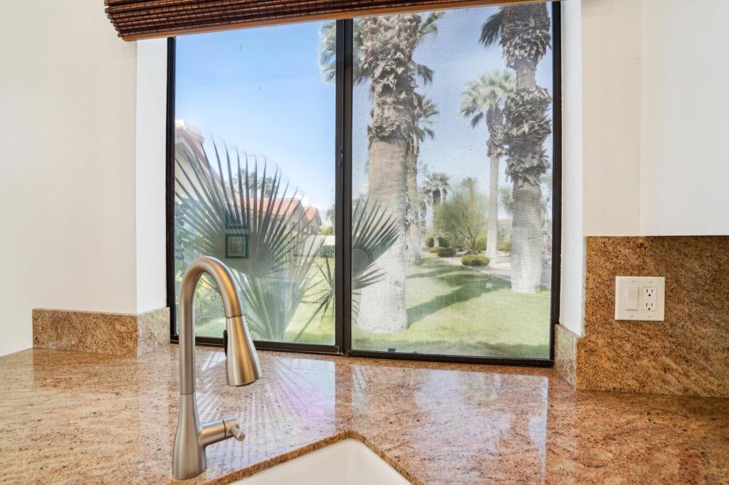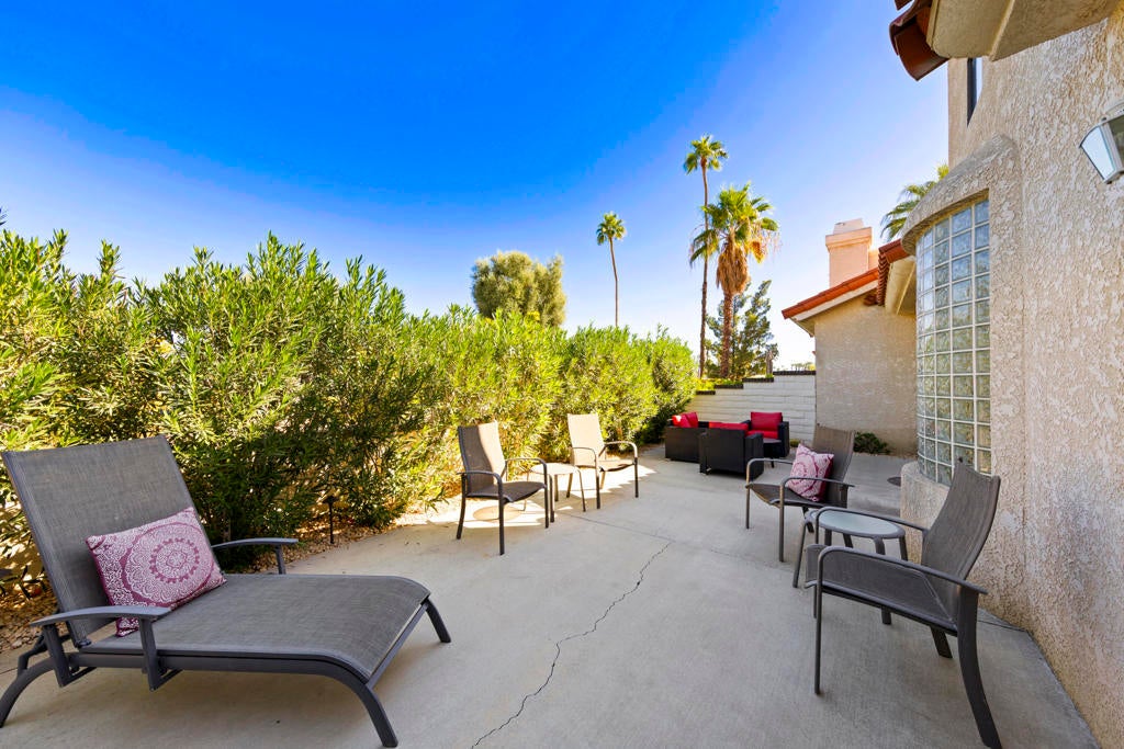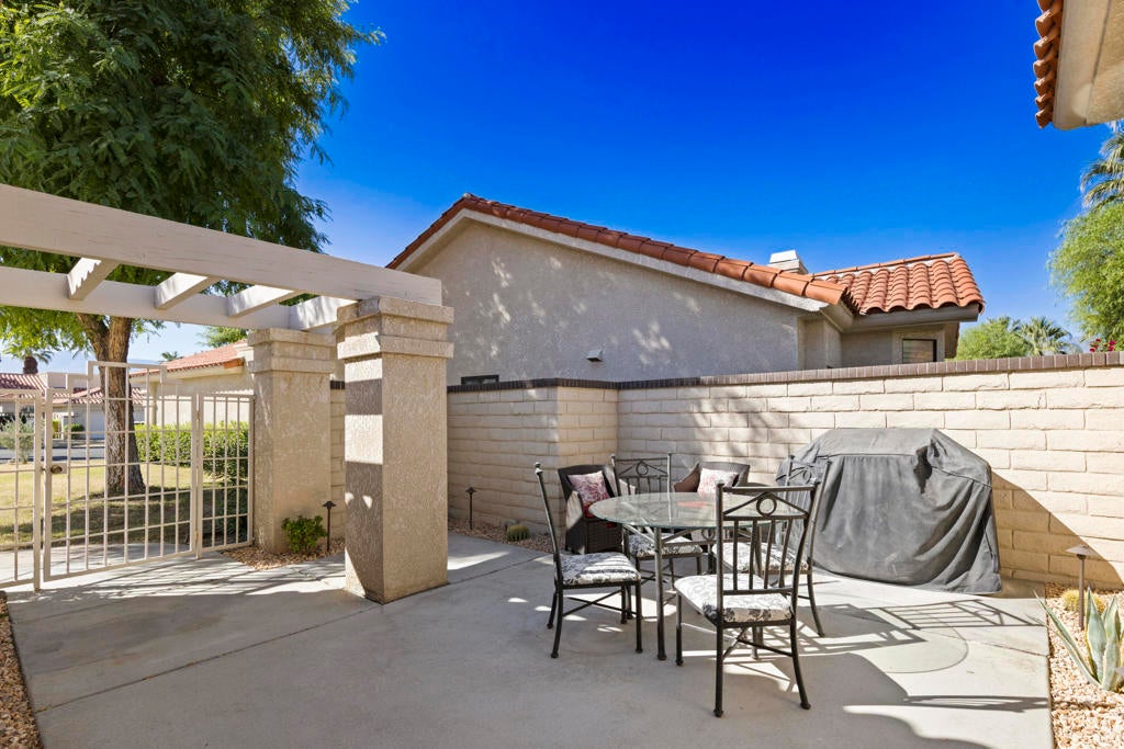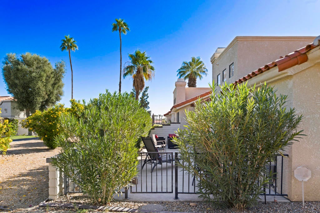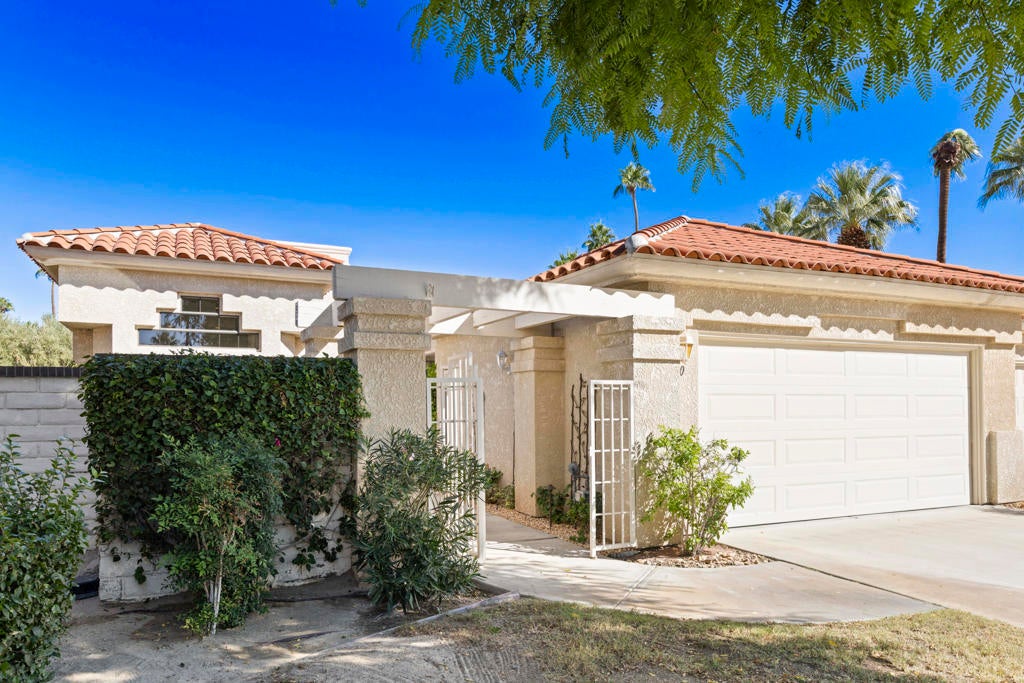 *AVAILABLE TO SHOW 11/28!! Stunning -looks like a Model! This property is a must see located in the heart of Palm Desert, in the desirable community called The Courtyards in Desert Falls CC. Single level condo, sharing only one wall, shows like a single-family home offering over 2,000 sqft, Full 3 bedrms, 2 full baths & a powder room. A long driveway, two car garage, & a private gated courtyard (updated landscaping from photos) entry greets you. Located in a cul-de-sac, Pristine best describes this property, naturally bright!! Vaulted ceilings throughout. Luxury vinyl plank flooring throughout. Great open floor plan! Fantastic kitchen, with slab granite counters, beautiful white shaker style cabinets set up to the ceiling! Plenty of cabinets, storage & a pantry. More than just a gorgeous kitchen, the breakfast nook overlooks the courtyard entry as well as a large window over kitchen sink looking out to the snowcapped mountains. Also, has a single French door entry! Kitchen opens to dining room and family room with gas fireplace. Large windows in dining room. Next to fireplace see a large corner space and sliding glass door to spacious private patio. All in Neutral tones. Primary bedroom/suite has a two-way fireplace- into the bathroom (also updated since photos) with separate large shower and tub. Walk in closet. Also, slider leading to back patio.Guest bedroom located down a hallway, also with its own beautiful bathroom -(updated shower too!), and walk in closet, located on opposite side of property, nice for privacy. Third bedroom used as a den is located close to the entry. Terrific floor plan. Just across from a serene pool & spa area and a short walk to the Clubhouse, next to the Health & Fitness Ctr, tennis courts and famous pickle ball! Which is included in your monthly HOA dues along with 24 hr. security, Cable tv with premium channels, all exterior and roof. Championship golf course, semiprivate club! Several memberships available or pay as you play or dine! Healthy, well-run association. Cannot state enough what a wonderful neighborhood this is. Short term rentals not available, but monthly rentals are!All furnishings can be available. With a location close to the JW Marriott, all kinds of shopping, several restaurants, minutes from renown Eisenhower Medical Campus, Acrisure Arena, casinos, Palm Springs A/P, and I- 10. Great as a Primary residence- or your vacation home or rental! ~Call now for your private tour! See yo
