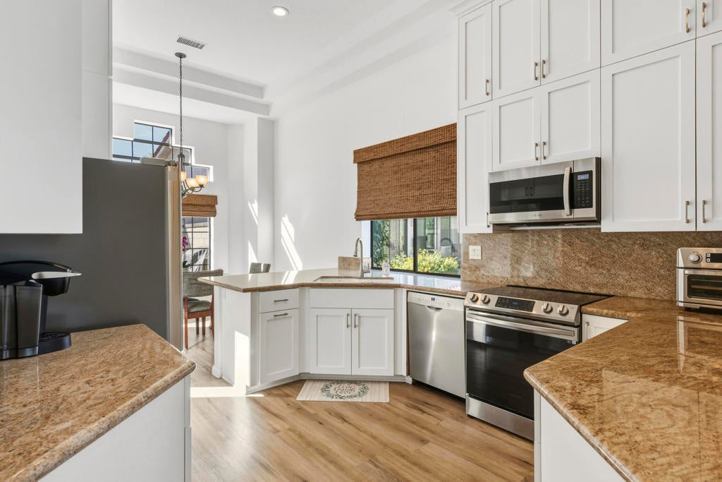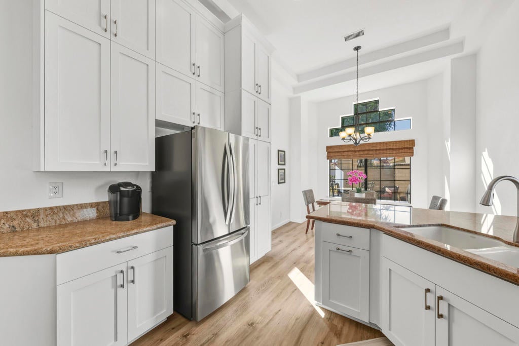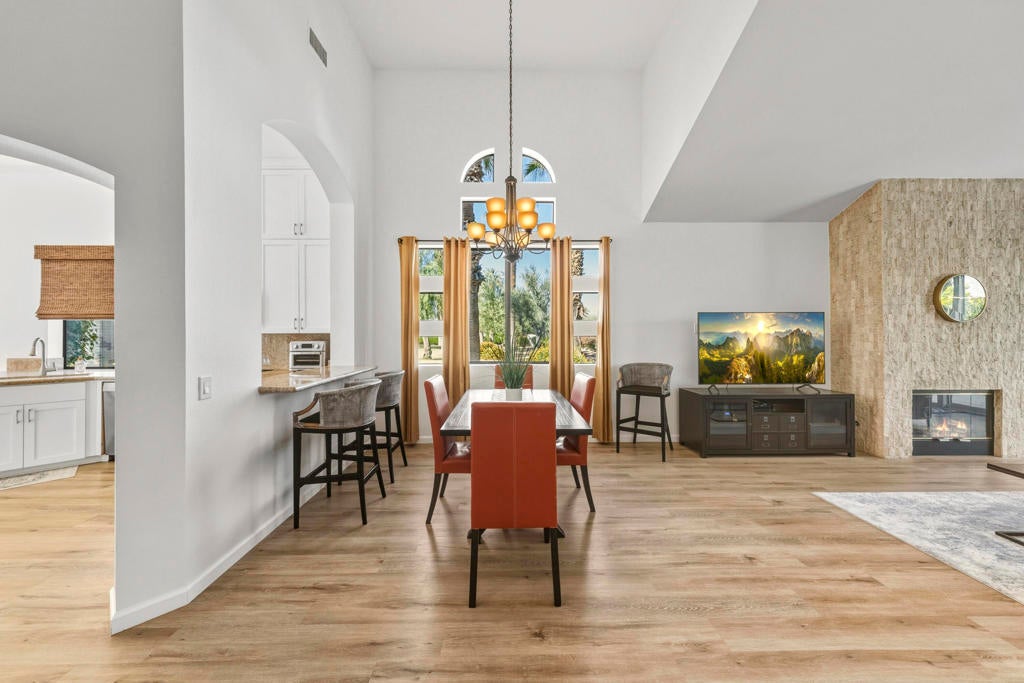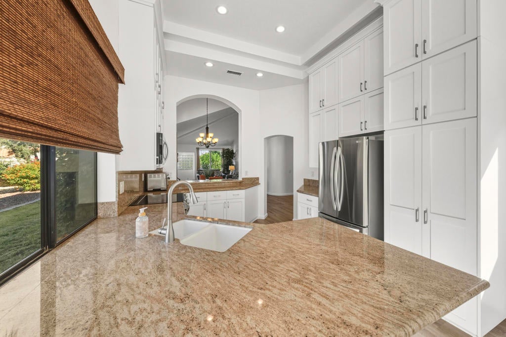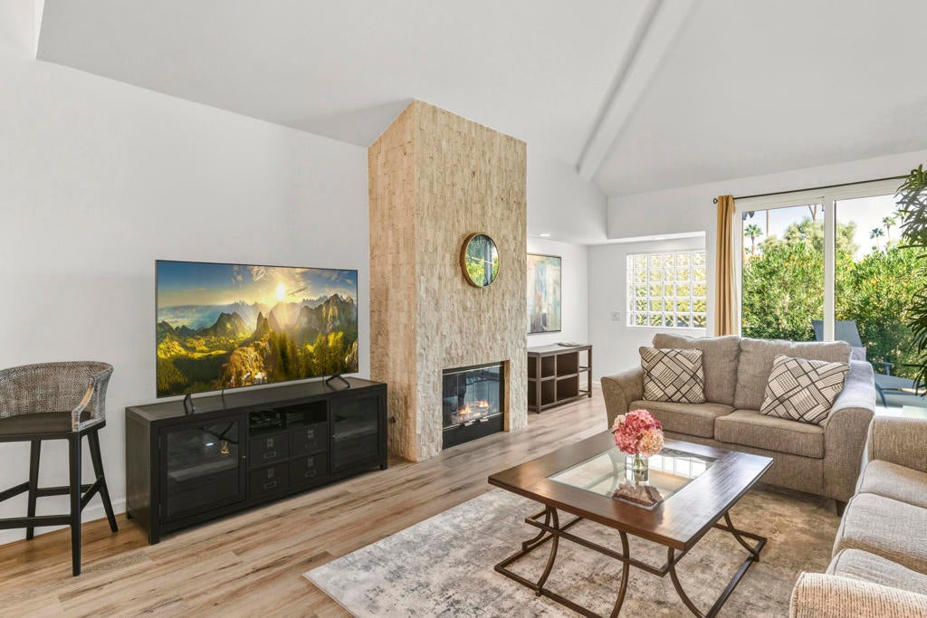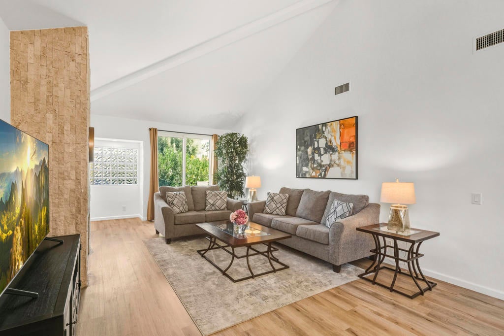 *AVAILABLE TO SHOW 11/28!! Stunning -looks like a Model! This property is a must see located in the heart of Palm Desert, in the desirable community called The Courtyards in Desert Falls CC. Single level condo, sharing only one wall, shows like a single-family home offering over 2,000 sqft, Full 3 bedrms, 2 full baths & a powder room. A long driveway, two car garage, & a private gated courtyard (updated landscaping from photos) entry greets you. Located in a cul-de-sac, Pristine best describes this property, naturally bright!! Vaulted ceilings throughout. Luxury vinyl plank flooring throughout. Great open floor plan! Fantastic kitchen, with slab granite counters, beautiful white shaker style cabinets set up to the ceiling! Plenty of cabinets, storage & a pantry. More than just a gorgeous kitchen, the breakfast nook overlooks the courtyard entry as well as a large window over kitchen sink looking out to the snowcapped mountains. Also, has a single French door entry! Kitchen opens to dining room and family room with gas fireplace. Large windows in dining room. Next to fireplace see a large corner space and sliding glass door to spacious private patio. All in Neutral tones. Primary bedroom/suite has a two-way fireplace- into the bathroom (also updated since photos) with separate large shower and tub. Walk in closet. Also, slider leading to back patio.Guest bedroom located down a hallway, also with its own beautiful bathroom -(updated shower too!), and walk in closet, located on opposite side of property, nice for privacy. Third bedroom used as a den is located close to the entry. Terrific floor plan. Just across from a serene pool & spa area and a short walk to the Clubhouse, next to the Health & Fitness Ctr, tennis courts and famous pickle ball! Which is included in your monthly HOA dues along with 24 hr. security, Cable tv with premium channels, all exterior and roof. Championship golf course, semiprivate club! Several memberships available or pay as you play or dine! Healthy, well-run association. Cannot state enough what a wonderful neighborhood this is. Short term rentals not available, but monthly rentals are!All furnishings can be available. With a location close to the JW Marriott, all kinds of shopping, several restaurants, minutes from renown Eisenhower Medical Campus, Acrisure Arena, casinos, Palm Springs A/P, and I- 10. Great as a Primary residence- or your vacation home or rental! ~Call now for your private tour! See yo