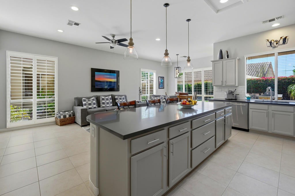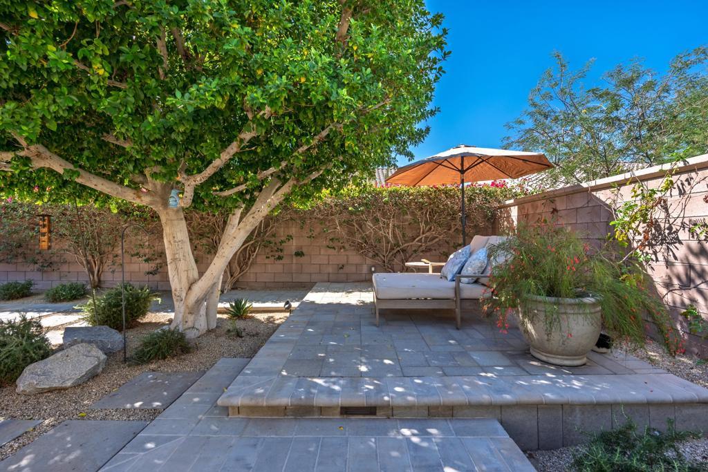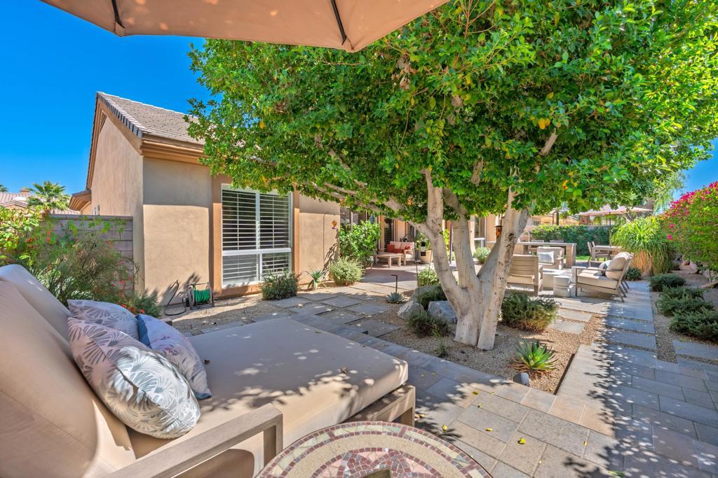 Step into desert living at its best with this stunning Monaco floor plan in highly desirable Sun City Palm Desert. This move-in-ready home offers 3 bedrooms, 3 bathrooms, and approximately 2,515sf of beautifully updated living space. The light-filled open layout features elegant finishes throughout, including remodeled interiors that blend comfort and sophistication. The chef's kitchen opens seamlessly to the family room and casual dining area--perfect for entertaining. The spacious primary suite offers a spa-like bath and ample closet space, while two guest rooms provide flexibility for visitors and/or a home office. Outdoors, enjoy a true resort-style setting with a south-facing backyard designed for relaxation and entertaining. Multiple paver finished seating and dining areas--one elevated with a private shade tree-- all surrounded by lush landscaping and a built-in barbecue for alfresco gatherings. The oversized laundry room provides tons of storage as does the 2-car + golf cart garage. Located within the gates of Sun City Palm Desert, residents enjoy world-class amenities including golf courses, pickleball, tennis, fitness centers, pools, restaurants, and endless social clubs--all with remarkably low HOA dues. Plus, a bonus is the low-cost electricity from Imperial Irrigation District (IID). A beautifully remodeled, move-in ready opportunity in one of the desert's most sought-after active adult communities!