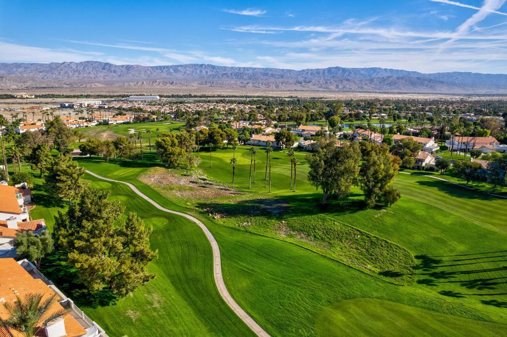 Wake up to sweeping golf and mountain views in this turnkey-furnished, east-facing condo. From the front balcony, take in dramatic San Jacinto peaks and an abundance of swaying palms; inside, wide-tile flooring runs through the main living spaces for easy, low-maintenance living. The great room and dining area look across multiple fairways with layered greens, giving you a 'view location' that truly lives larger than the square footage. A bright kitchen opens toward the action so you're never far from the conversation. The orientation is ideal--soft morning sun, afternoon shade--so patios stay comfortable all season. Offered fully furnished (per inventory) for an immediate move-in or effortless rental launch. Resort-style community amenities nearby, plus quick access to dining, shopping, and desert fun. If you've been waiting for a clean, updated, view-forward home that's ready on day one, this is it. The generously sized primary suite is a true retreat, complete with direct balcony access, ample closet space, and a spa-inspired bath. Two additional bedrooms offer comfort and flexibility, perfect for guests or a home office. Additional highlights include an in-unit laundry area, attached two-car garage, and access to the exceptional community amenities: 24-hour guard-gated entry, tennis and pickleball courts, fitness center, and resort-style pools. This residence offers a rare opportunity to enjoy the best of the desert lifestyle with the peace of mind and prestige that comes with living at Desert Falls. Short term rentals are approved. The privately owned Desert Falls CC offers pay-as-you-play or membership options. Desert Falls is perfectly located mid-valley, close to dining, groceries, and retail. Within minutes of the renowned AcriSure Arena - a premiere venue home of the CV Firebirds hockey team and hosting the biggest artists and acts on the planet.