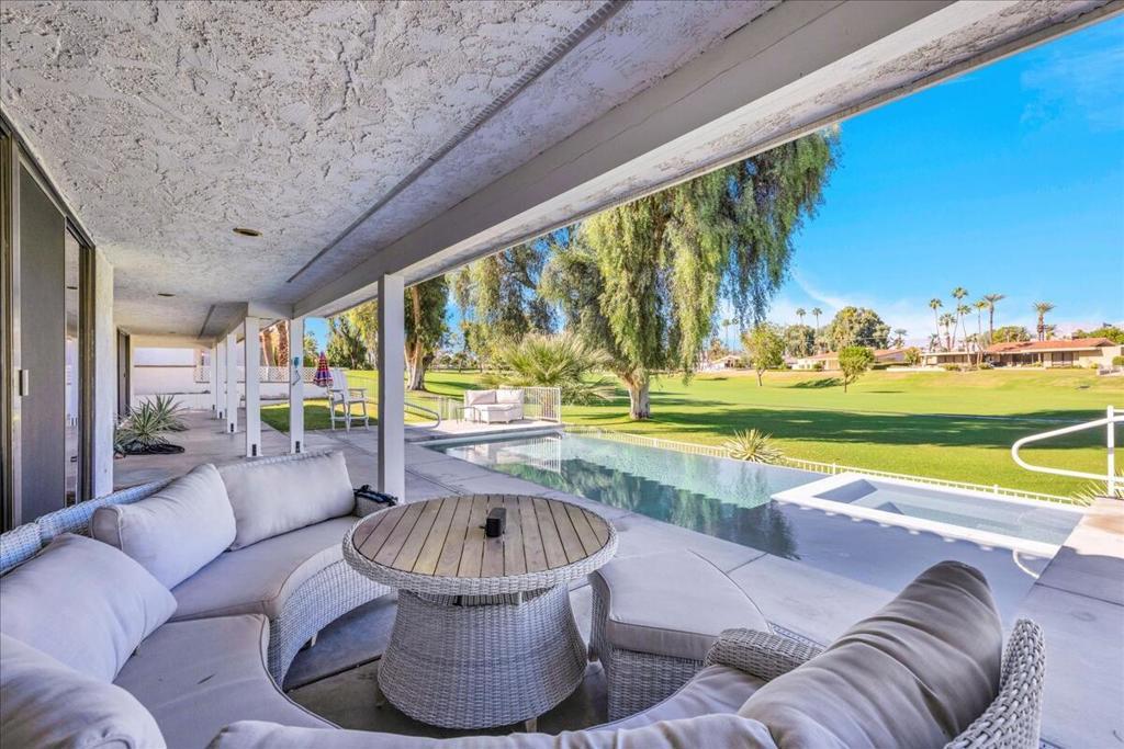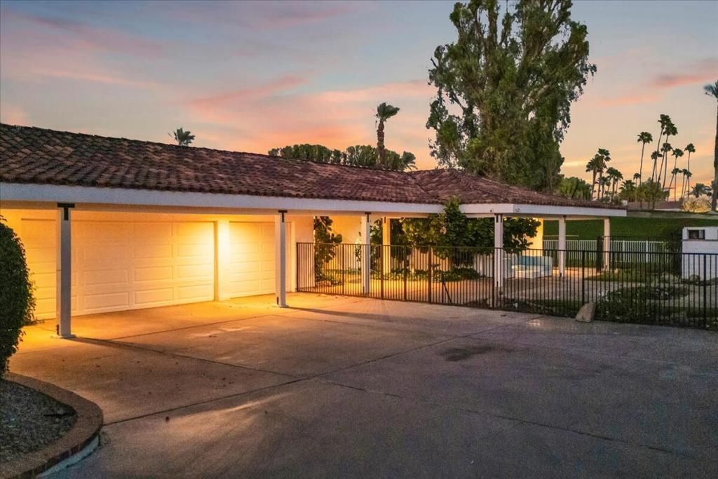 Open Concept Living overlooking the golf course with double fairways. An exceptional find in Bermuda Dunes Country Club. Captivating ultra secluded home. Custom-built ideal for entertaining with 227 feet of fairway frontage! LUXE outdoor space features infinity edge salt-water pool & spa, built-in outdoor kitchen with grill, refrigerator, polished granite counters--even a griddle! Covered lanai, lush plantings and double doors invite you in to discover a wide open floor-plan with walls of glass. Focal point floor-to-ceiling 360-degree custom fireplace. Original builder features throughout such as industrial grade glass windows and doors. Concrete floors with lighted accents. Teak wood kitchen with beautiful slab granite counters (an abundance of built-in storage cabinetry + pantry closet). Covered patio wraps around entire home boasting stunning elevated views of the greens! Interior power window shades provide shade & privacy. Primary wing features sumptuous private suite with spacious rooms, spa-like bath with sunken tub; adjacent junior suite--all with direct access to pool/spa & covered patio. South side of home holds the third private, self-contained suite with access to covered patio PLUS separate office with dual sinks (formerly used as a photography darkroom). Oversized & extra deep 3-car attached garage PLUS additional bay with outside entrance for storage or potential bonus room. Parking for 7-cars, by traversing down the long private driveway lined by hedges. IID for lower electric bills. Low HOA of only $214 a month includes cable TV (two boxes with Showtime, Cinemax & HBO plus internet with Spectrum). 24-hour guard gated security. 30 day rental minimum. The epitome of an indoor/outdoor lifestyle choice, for which the desert is known. Stop searching and START living!