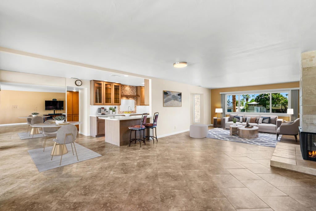 Welcome to your desert oasis! This 2-bedroom, 2-bath home spans over 1700 sq. ft. and sits just off the Shadow Mountain Golf Course, offering unobstructed breathtaking mountain and golf course views with the most sensational sunsets. Mornings are bright and cheerful, and evenings are made for relaxing in your private pool-cocktail in hand. Best of all, it's country club living with NO HOA! Step inside the open floor plan with ceramic tile flooring and carpeted bedrooms. The updated kitchen shines with quartz countertops, modern cabinetry, custom tiled backsplash and kitchen counter seating. The fireplace sets the scene for cozy winter nights, while the separate dining area is perfect for entertaining. The primary bedroom has an en-suite bathroom featuring dual sinks, a vanity area, and generous closet space. Additional perks include a one-car attached garage for convenience and an indoor washer/dryer. This highly sought after South Palm Desert location is surrounded by multi-million dollar homes, just steps away from El Paseo, with its world-class restaurants and shopping. Tucked away on a quiet dead-end street, this home makes an ideal second home, full-time residence, or investment property. Shadow Mountain Golf Resort-the first golf course in Palm Desert, designed by Gene Sarazen, has a new 18 hole putting green and renovated bar and grill. Don't miss your chance to make this desert dream home yours.