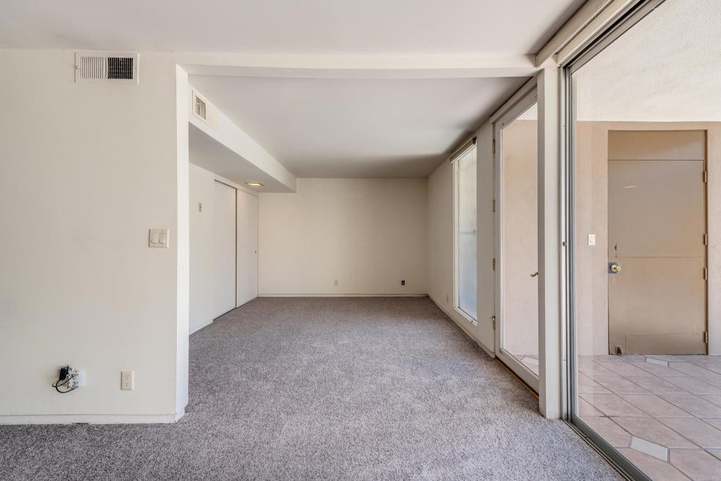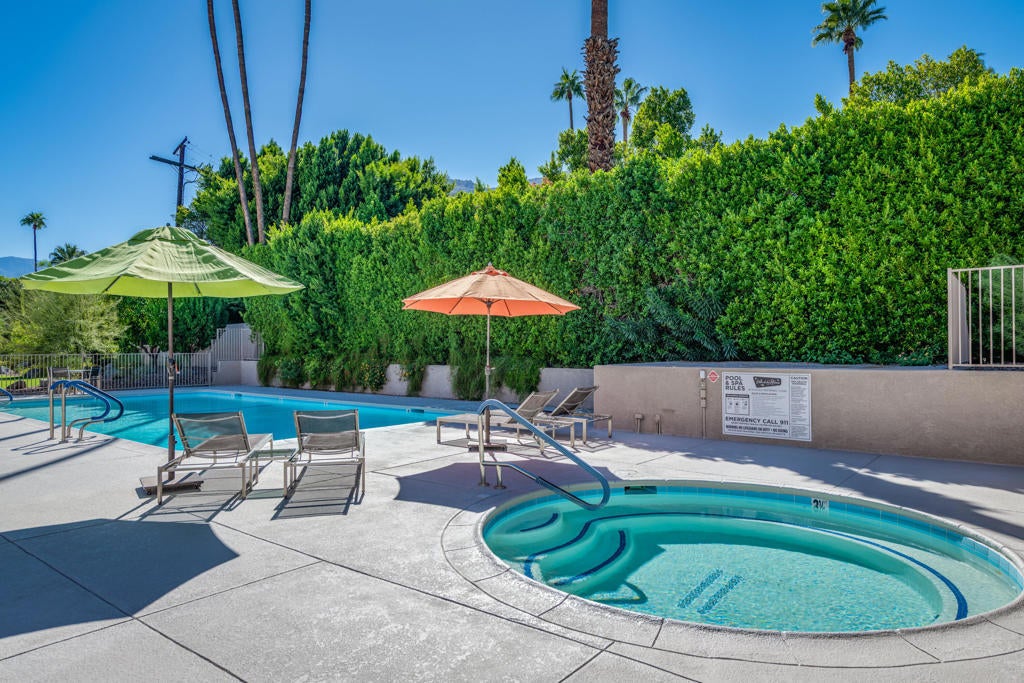 Rare Mid-Century Find -- Uptown Design District Modern Living. Step into the Palm Springs lifestyle of the 1960s -- sleek lines, open spaces, and indoor-outdoor living at its best. The last two renovated units recently sold for $870,000 each. This rare 2-bedroom, 2-bath residence is located within the iconic ''Villa de Las Palmas'', a gated, 24-unit Mid-Century Modern community built in 1962. Perfectly situated on West Via Lola, once affectionately known as ''Millionaire's Row,'' this address captures the timeless glamour of the Uptown Design District. Inside, discover an airy living and dining space wrapped in dramatic floor-to-ceiling glass -- approximately 15 feet wide by 8 feet high -- framing postcard views of Mt. San Jacinto. The home's layout flows effortlessly to a spacious 15' x 19' entertaining balcony (approx. 285 sq. ft.), where cocktail hour meets sunset in true Palm Springs style. All indoor and outdoor spaces of the condo are on the same level. Beautifully renovated greenbelt and desertscape (2023) with year-round heated Pool, Spa and Fire/Water Feature ... all facing Mt. San Jacinto. Don't forget the hard-to-find, assigned, underground garage parking space. Steps from Ernest Coffee, Tailor Shop Craft Cocktail Bar, Hyphen Wine Shop, Saffron & John's restaurants. Less than 1/4 mile to 849, Jake's, Cafe La Jefa, Workshop & Trio (which is a 3 minute walk). Stroll or bike through your exclusive Old Las Palmas neighborhood any day of the week. HOA allows 30-day or longer rentals. Pets welcome. The last two renovated units recently sold for $870,000 each. NOTE: Tax Records indicate every unit in this complex is only 1 Bedroom. Ask your agent for photos of the adjacent condominium that was beautifully renovated a few years ago. Transform Unit 7 into the ''Palm Springs Getaway'' of your dreams!