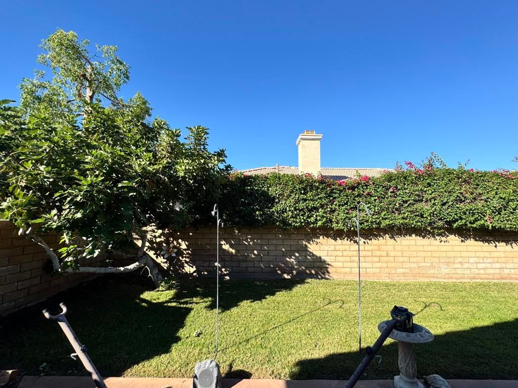 Beautiful, light, cozy and very clean house in Indian Palms CC. Three golf courses, multiple pools, banquet house, clubhouse with restaurant and bar, pickle ball courts are some of the amenities that it offers. 3BdR, 2 Bath, tile throughout the house; laundry room; great size backyard with fruit trees (lemon and fig) and solar lights. Private and quiet property with a very close proximity to Coachella and Stagecoach music festivals!