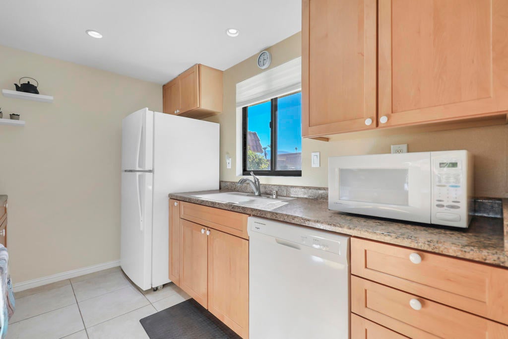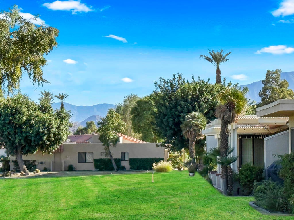 Located in the heart of Palm Desert, this beautifully updated 2 bedroom, 2 bath condo in the Palm Desert Resorter captures the essence of desert living. Enjoy fabulous east-facing fairway and mountain views from the extended covered patio, perfect for morning coffee or relaxing evenings. The kitchen has been opened up to create a bright, inviting space with new cabinetry and a seamless flow into the living area. Both bathrooms have been tastefully updated, and the home features tile flooring throughout except planked vinyl flooring in the bedrooms for a warm, modern touch. A 2-car garage has been added for convenience and additional storage. Experience resort-style living at its best with golf, tennis, pickleball, bocce ball clubhouse amenities, 20 pools and spas and a vibrant social atmosphere--all within the gates of this sought-after Palm Desert community. Short term rentals are allowed.