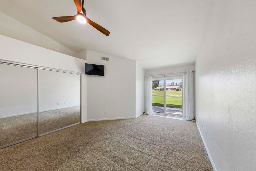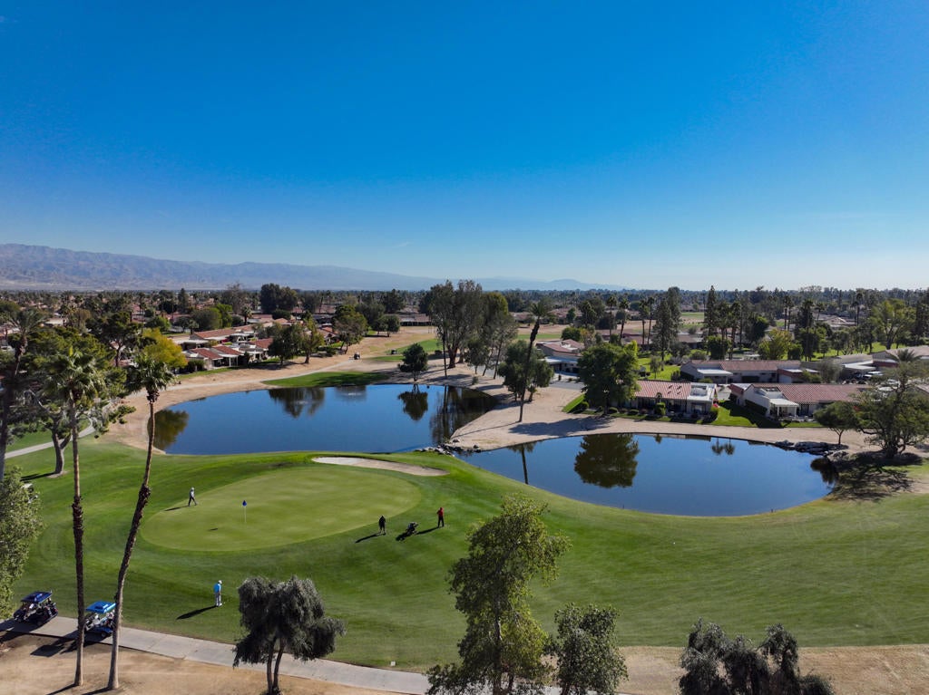 New price at $379,500! Welcome to Palm Desert Resort Country Club, where resort living meets spectacular views. This beautifully upgraded Augusta model sits on a prime lot overlooking the lake, mountains, and the 6th fairway--one of the community's most scenic settings. The remodeled kitchen features granite counters, stainless appliances, and a refaced fireplace. The primary suite offers dual vanities, a skylight, soaking tub, and separate shower, while the guest bath includes a stylish walk-in shower. Tile flooring flows throughout the home, with carpet in the bedrooms, dual-pane windows, and newer A/C and furnace providing comfort year-round. Located in a 24-hour guard-gated community with 20 pools and spas, clubhouse, golf, tennis, and pickleball available--this home is move-in ready and ready to impress.