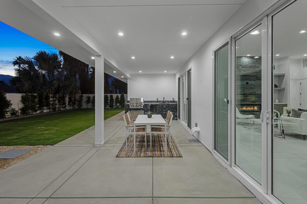 New construction, luxurious, upscale home featuring over 2,400 sq. ft. of livable space. 4 spacious bedrooms, of which 2 are primary retreats and 4 bathrooms. The home's modern architecture showcases an open floor plan. High ceilings, large windows and the open concept cultivate an abundance of natural light throughout the living areas. The kitchen features the latest technology in Samsung appliances (refrigerator, dishwasher, oven, microwave, hood and gas range), large center island with eat at counter, LED lighting throughout and a cozy fireplace in the living room. The seamless indoor / outdoor flow connects the inviting interior spaces to the serene, lush landscaping and outdoor areas. The exterior boasts an inviting spool for 20 people, an outdoor full sized bathroom with shower, BBQ area with sink and a mini fridge under a covered recreational space. The garage has an EV charger and storage room. The home is centrally located and within 5 minutes to Palm Springs. Close to the casino, the freeway, shopping, restaurants, and everything the desert has to offer. A brand new, highly upgraded home, with no HOA waiting for you! Make me an offer today!