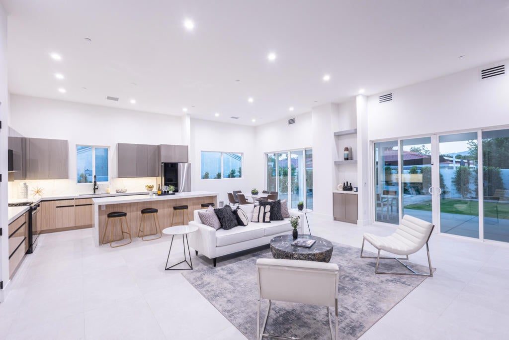 New construction, luxurious, upscale home featuring over 2,400 sq. ft. of livable space. 4 spacious bedrooms, of which 2 are primary retreats and 4 bathrooms. The home's modern architecture showcases an open floor plan. High ceilings, large windows and the open concept cultivate an abundance of natural light throughout the living areas. The kitchen features the latest technology in Samsung appliances (refrigerator, dishwasher, oven, microwave, hood and gas range), large center island with eat at counter, LED lighting throughout and a cozy fireplace in the living room. The seamless indoor / outdoor flow connects the inviting interior spaces to the serene, lush landscaping and outdoor areas. The exterior boasts an inviting spool for 20 people, an outdoor full sized bathroom with shower, BBQ area with sink and a mini fridge under a covered recreational space. The garage has an EV charger and storage room. The home is centrally located and within 5 minutes to Palm Springs. Close to the casino, the freeway, shopping, restaurants, and everything the desert has to offer. A brand new, highly upgraded home, with no HOA waiting for you! Make me an offer today!