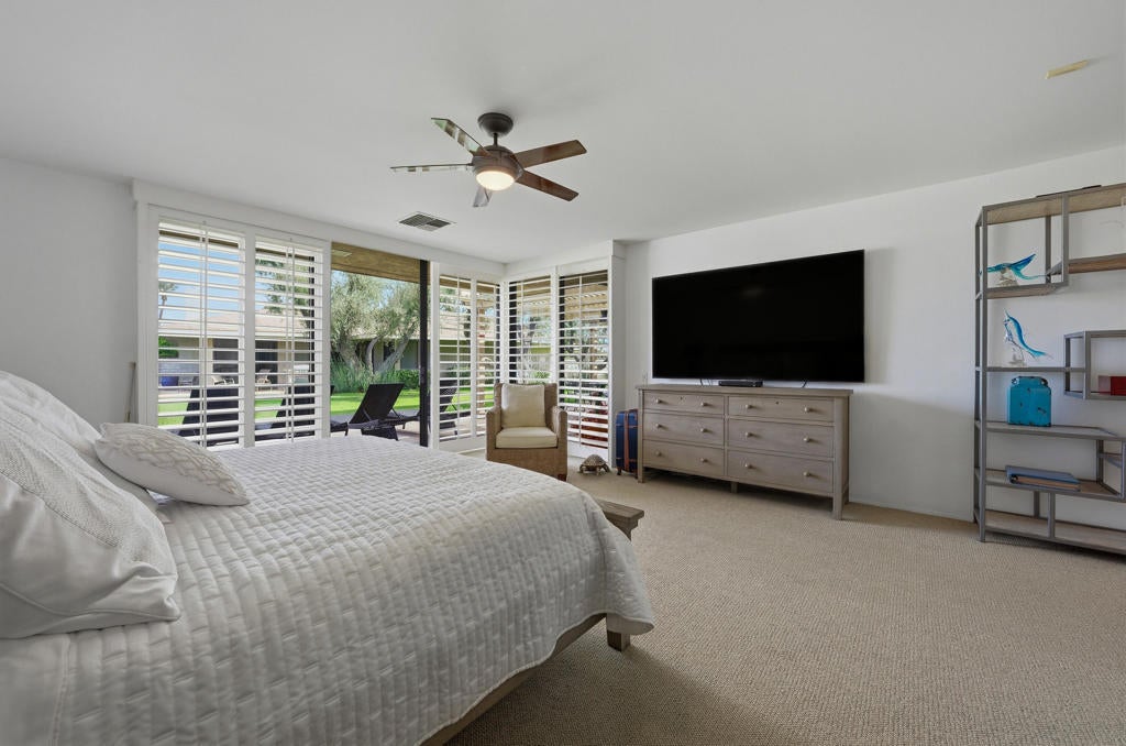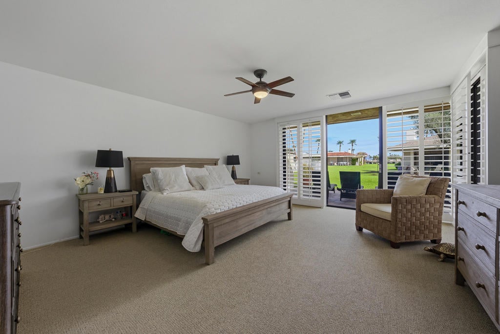 This Expanded Broadmoor model welcomes you into relaxed sophistication with 3104 sq ft - 2 dual master suites & 3 en-suite baths. Third bedroom can be used as a bedroom/den/office with Custom built-in Cabinetry. The spacious Livingroom sets the stage for casual desert living & elegant entertaining. Granite counters, Travertine floors, sleek stainless appliances w/ upgraded cabinets that complement this gourmet kitchen. This Spa inspired Primary suite boast style w/ a separate shower, tub with dual vanities and a walk in closet. Take advantage of the back patio with a recently remodeled exterior patio that was expanded for maximum outdoor entertaining space. New Aluma wood patio cover, and new outdoor pavers. great for entertaining and just step to the community Pool. The Springs CC has a beautifully remodeled Clubhouse, newly remodeled golf course and a state-of-the-art fitness center, 46 community pools/spas, 11 tennis courts & private golf course. This prime location in Rancho Mirage is located across from Eisenhower Medical Center, close to shopping and El Paseo drive. The Springs Is where you belong!