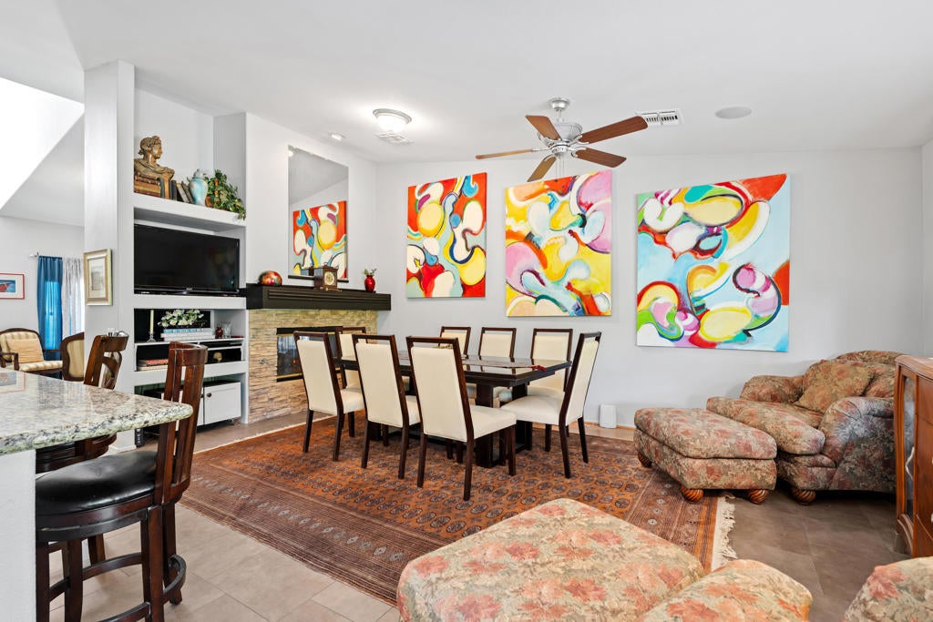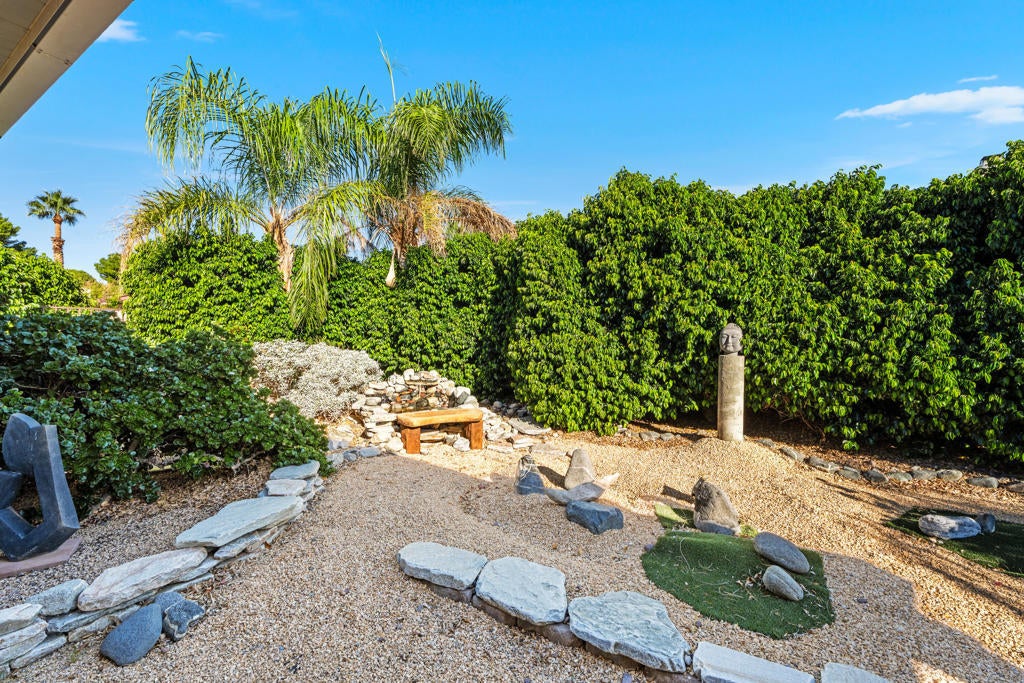 Welcome to Mission Lakes Country Club! This well laid out home features three well-proportioned bedrooms, two bathrooms PLUS an office. The oversized primary bedroom offers large closet and storage space. An open floor plan with high ceilings is great for entertaining. The kitchen, with its Stainless Steel appliances, is open to the family room/dining area plus there is an extra living area for larger gatherings or just some extra separation. There is also a fireplace in both the living room and the family room for those cool desert nights. The home is situated on a corner lot which provides a little extra privacy, plus opens up some of the views. Backyard has a large relaxing shaded patio cover where you can look out at the tranquil water feature. The entire yard is low maintenance which will allow you to have more time to spend time doing all that the community has to offer. Low HOA fees currently of $485 per month include gym, pool and unlimited golf for two on title on their championship Ted Robinson designed golf course. $20 per month of the fee is appllied to dining in their restaurant. Come see all that Mission Lakes has to offer
