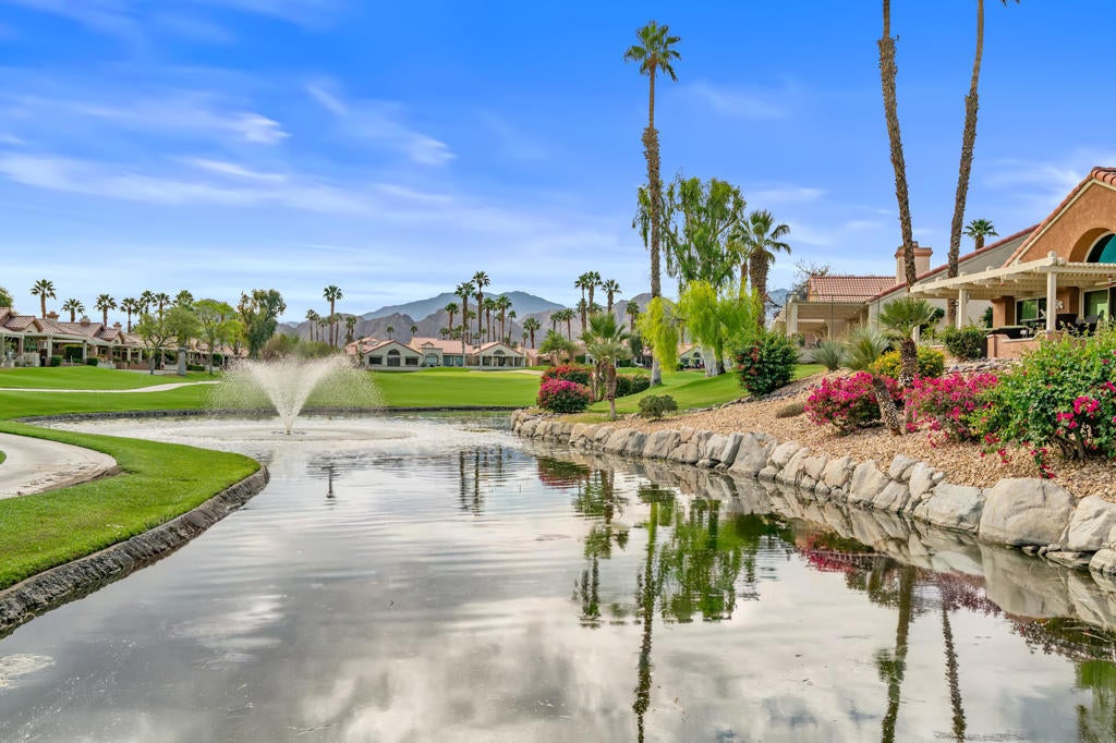 Welcome to this beautifully 2 bedroom, 2 bath and a powder room condominium in the sought-after Oasis Country Club. Positioned with a south-facing back patio overlooking the 13th hole, this residence captures gorgeous views of the lush green fairway, tranquil pond with a fountain, and the majestic mountains beyond--a truly picturesque and serene setting. Upstairs, you'll find two large bedroom suites, each with its own private bath, offering exceptional comfort and privacy. A spacious landing area provides abundant built-in storage, ideal for organization and convenience. The remodeled kitchen is both stylish and functional, featuring tasteful upgrades that complement the home's inviting atmosphere. Additional highlights include direct garage access and fresh paint, and large tile flooring, creating a cohesive interior throughout. Outdoors, enjoy a private front courtyard and a back patio perfectly suited for relaxing or entertaining while taking in the golf course and mountain views. Also convenient for your dog. Within the gates of Oasis Country Club, residents enjoy access to an 18-hole, executive golf course, 18 pools and spas, pickleball and tennis courts, a fitness center, two dining venues, including casual and fine dining options with a bar and patio. The community also features citrus trees, a dog park, and a welcoming, active social atmosphere--all within a low-maintenance, non-age-restricted environment. ''Come and see what makes Oasis Country Club such a treasured place to live.