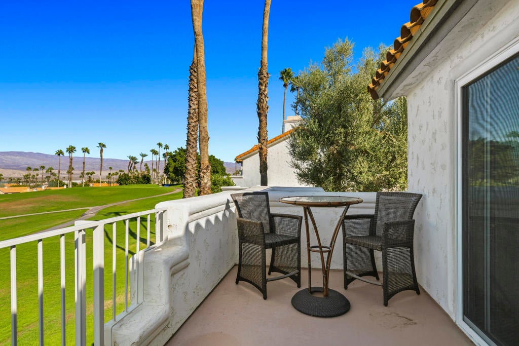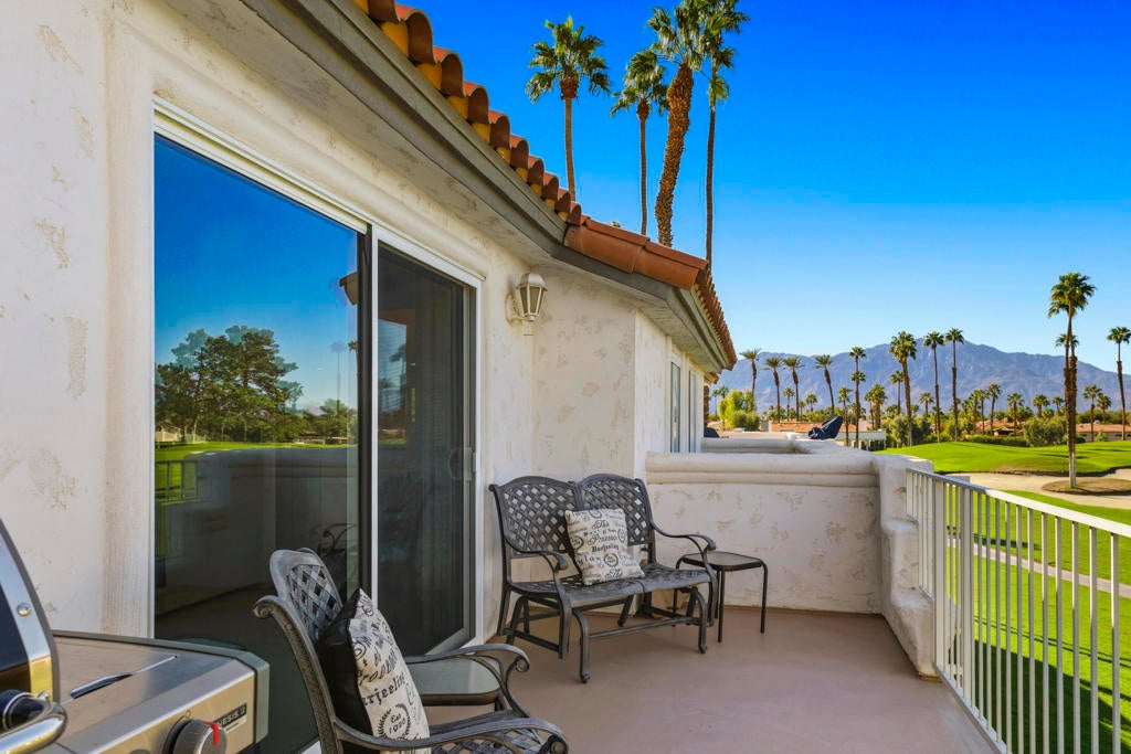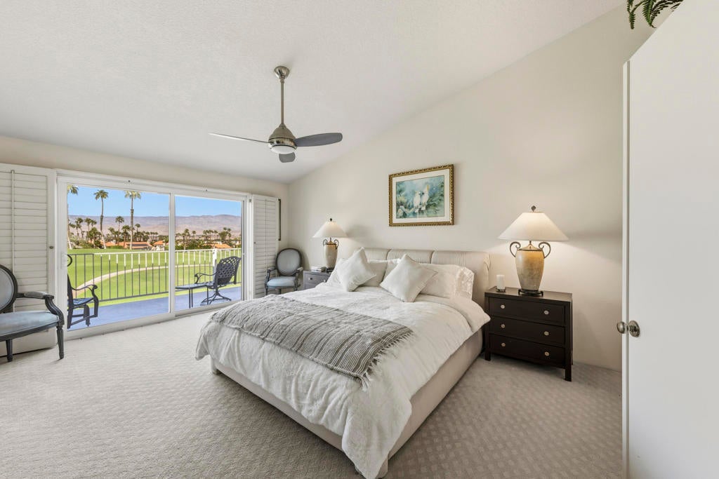 TOTAL UPSCALE REMODEL -GOLF COURSE & MOUNTAINS VIEW PROPERTY-3 FULL BEDROOMS- 2 FULL BATHROOMS AND ONE-HALF BATH! Located in the Heart of Palm Desert in Beautiful Desert Falls CC. Offered turnkey Furnished!Naturally Bright- tiled throughout except for bedrooms. Kitchen is a chef's delight with gas stove, double door stainless steel refrigerator. Granite slab counters. Pull outs in pantry. Open to dining room -granite counters wide for prepping meals and room for bar stools. Overlooking dining room with additional large window. There's also a cheery light filled breakfast nook -See beverage fridge. All great appliances. Open floor plan. Shutters on all windows. Primary bedroom is a delight overlooking the golf course. Large Walkin closet. Primary bathroom is a wow, Upscale remodel as are all the bathrooms. Guest suite is located on opposite side of property with its own Walkin closet and stunning bathroom. Third bedroom or den -can be used as a bedroom or an office. Entrance has a large patio facing south. Back patio faces the extensive double fairways golf course views! Mountain views to the west and to the north. One of the many pools located directly across the street (has its own bathrooms:) HOA monthly dues offer great amenities - membership to the Health & Fitness Ctr, great tennis and famous pickle ball! Wi-fi, cable, all exterior & roof, all pools, ALL HEATED TOO! 24 hr. guard gated roving security, all the grounds. The semiprivate golf course is noted as a Championship resort course, open for memberships or pay as you play and dine! Short term rentals allowed. Close to all kinds of shopping, restaurants galore, plenty within walking distance! Across from the JW Marriott Desert Springs. Close to the Palm Springs A/P, famous Acrisure Arena, new CV Link for biking, walking only! Theaters, much hiking, city run Desert Willow golf courses & stunning clubhouse, minutes from Eisenhower medical, and right off the I-10. Call for your private tour! You won't be disappointed!