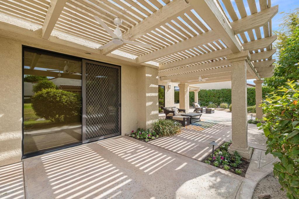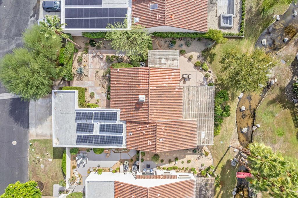 Incredible Value in Mission Hills Country Club! This beautifully upgraded detached home offers 2 bedrooms, 2 bathrooms, and a den, spanning 2,139 square feet on an expansive 8,276 square-foot lot with a private courtyard and stunning southwest lake and mountain views. Thoughtfully updated throughout, the home features 22 owned solar panels installed by Renova in 2017, and a new air conditioner and furnace replaced in 2018, and covered by a 10-year warranty. Milgard windows and sliding doors were added in 2013, and the kitchen has been completely remodeled with custom cabinetry and backsplash. The living room was redesigned with a wall addition to create a den, and both bathrooms were beautifully updated with Solatube skylights for natural light. Additional upgrades include custom wardrobes in both bedrooms, stylish custom front doors, built-in garage cabinetry, a 240-volt outlet for EV charging, and refreshed landscaping in both the front and rear yards featuring citrus trees including lemon and grapefruit. A true gem offering comfort, efficiency, and modern style in the heart of Mission Hills Country Club. Enjoy peace of mind and effortless living with HOA covered common area maintenance, gated security with on-site guards, included cable and internet, community pools, and exterior painting, all designed to make life more convenient and carefree. Contact us today for a private showing!