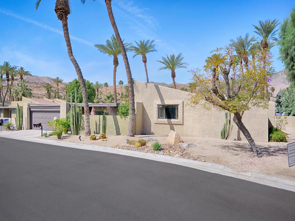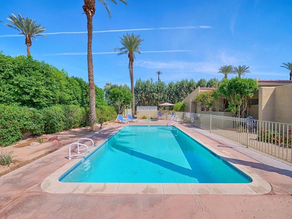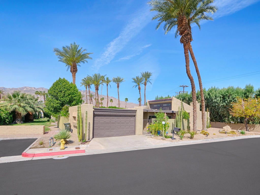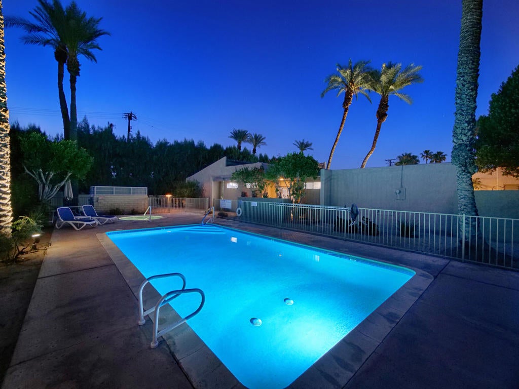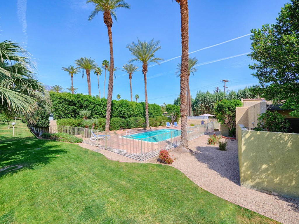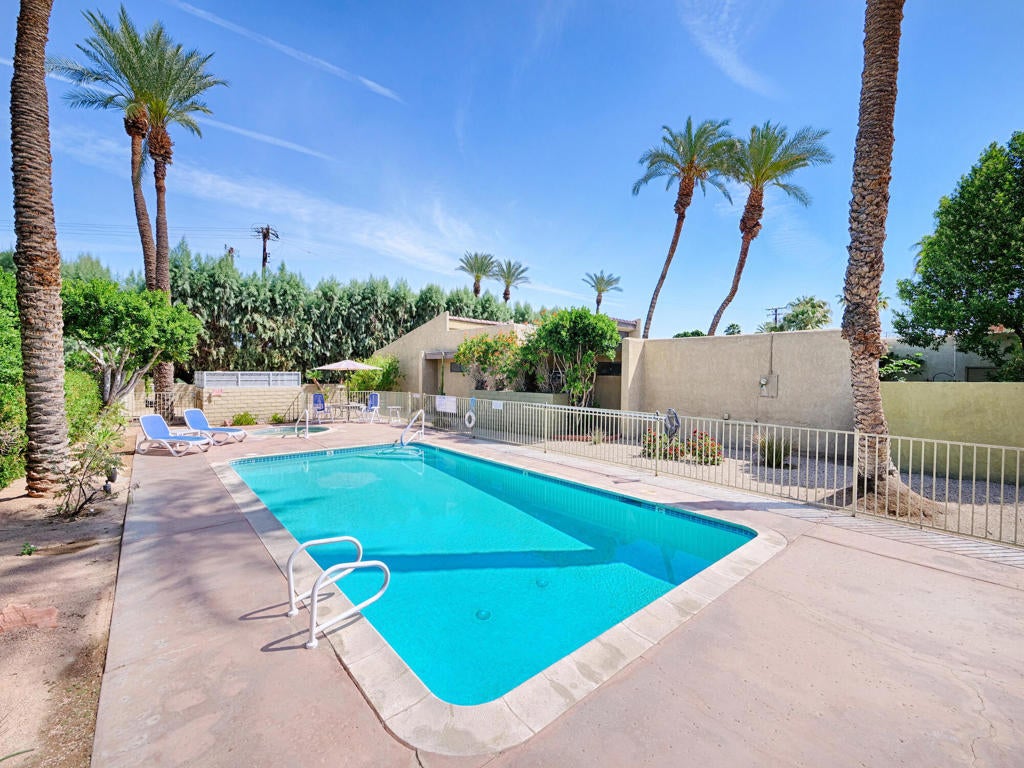 LOCATION, LOCATION, LOCATION!! Excellent South Palm Springs community tucked away in a very quiet private location...But yet close to everything. These units rarely come on the market. Welcome to this beautiful and spacious 2 bed 2 bath STAND ALONE condo that sits in a prime area of the community ..with plenty of space, it's like having your own yard, offering extra privacy! And you OWN THE LAND! This updated unit with 1832 sq ft of space delivers Beautifully and feels like a single family home The large kitchen has generous cabinets and pantry space with slide outs and soft close drawers. There is a huge skylight and a walk out patio for morning coffee and your evening grilling with family and friends. The bedrooms are spacious and nicely separated on opposite sides of the home. The huge living area (great room) has 14 ft ceilings with clearstory windows and a cozy gas Fireplace. There's also an enclosed Sunroom with Glass wall of windows with its own separate cooling system.. ideal for a work space or Den.The primary suite is very generous space (16x15)with high ceilings, oversized sliders and floor to ceiling picture windows. The primary bath has a large walk in shower, water closet and a huge walk through closet. Guests will enjoy the private bed room with bath and it's own private courtyard with access to the pool. There is also a patio off the dining room that has access to the pool. This unit has a 2 car garage with the laundry area & plenty of storage. There is an abundance of light with 3 skylights. Palm Oasis has 21 units and 3 pools. It is a fabulous location, walking distance to Trader Joes and shopping with many restaurants close by. Located minutes from the soon to be completed CV Link and across the street from the Twelfth fairway of the Tahquitz Creek Golf Course. About a 10 minute drive to the PS Airport and 15 minutes to DownTown Palm Springs. Don't miss this Gem!!! Call today for your private showing