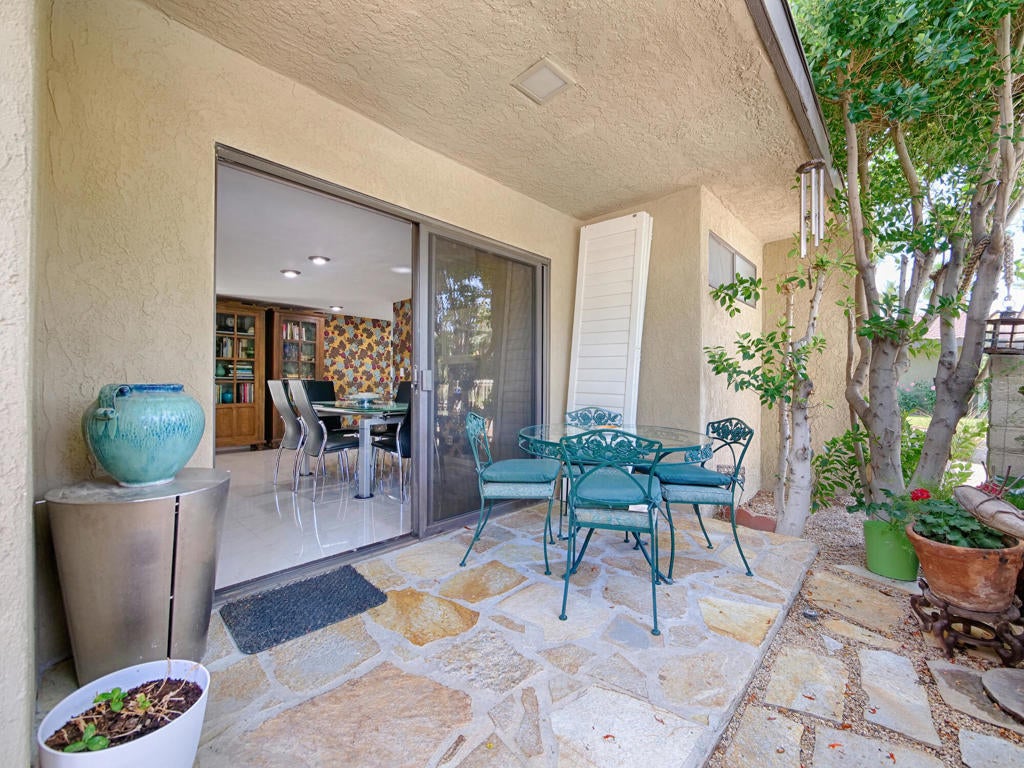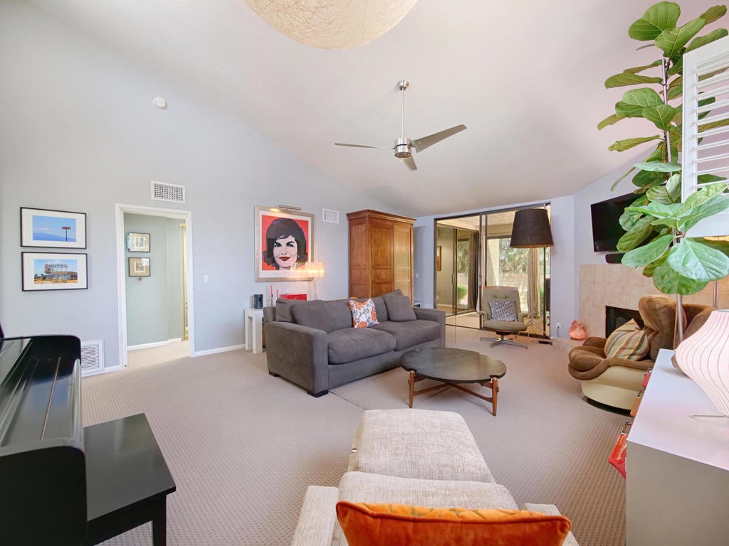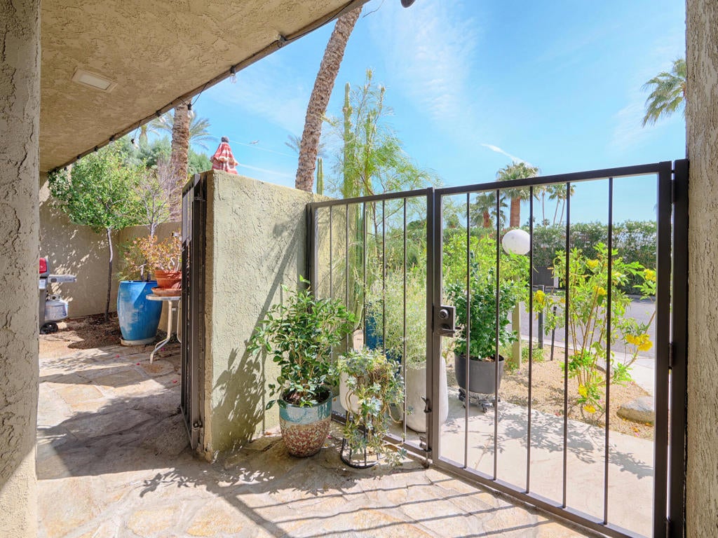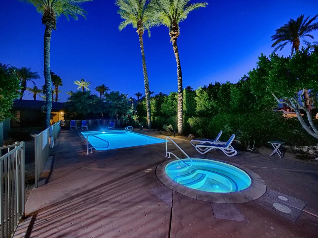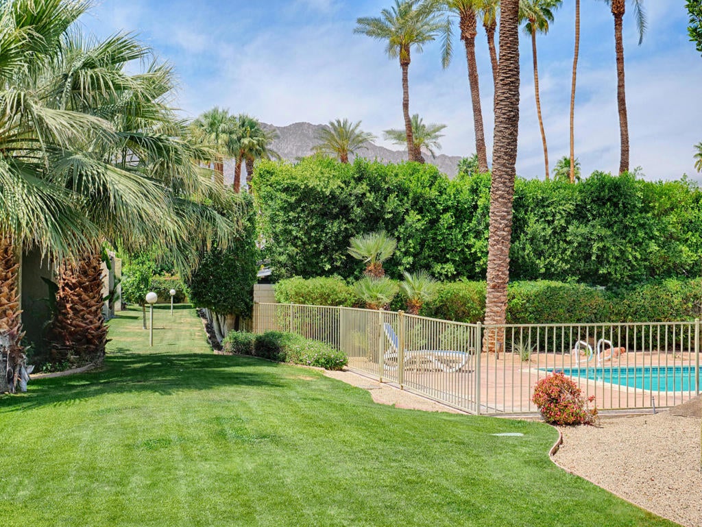 LOCATION, LOCATION, LOCATION!! Excellent South Palm Springs community tucked away in a very quiet private location...But yet close to everything. These units rarely come on the market. Welcome to this beautiful and spacious 2 bed 2 bath STAND ALONE condo that sits in a prime area of the community ..with plenty of space, it's like having your own yard, offering extra privacy! And you OWN THE LAND! This updated unit with 1832 sq ft of space delivers Beautifully and feels like a single family home The large kitchen has generous cabinets and pantry space with slide outs and soft close drawers. There is a huge skylight and a walk out patio for morning coffee and your evening grilling with family and friends. The bedrooms are spacious and nicely separated on opposite sides of the home. The huge living area (great room) has 14 ft ceilings with clearstory windows and a cozy gas Fireplace. There's also an enclosed Sunroom with Glass wall of windows with its own separate cooling system.. ideal for a work space or Den.The primary suite is very generous space (16x15)with high ceilings, oversized sliders and floor to ceiling picture windows. The primary bath has a large walk in shower, water closet and a huge walk through closet. Guests will enjoy the private bed room with bath and it's own private courtyard with access to the pool. There is also a patio off the dining room that has access to the pool. This unit has a 2 car garage with the laundry area & plenty of storage. There is an abundance of light with 3 skylights. Palm Oasis has 21 units and 3 pools. It is a fabulous location, walking distance to Trader Joes and shopping with many restaurants close by. Located minutes from the soon to be completed CV Link and across the street from the Twelfth fairway of the Tahquitz Creek Golf Course. About a 10 minute drive to the PS Airport and 15 minutes to DownTown Palm Springs. Don't miss this Gem!!! Call today for your private showing
