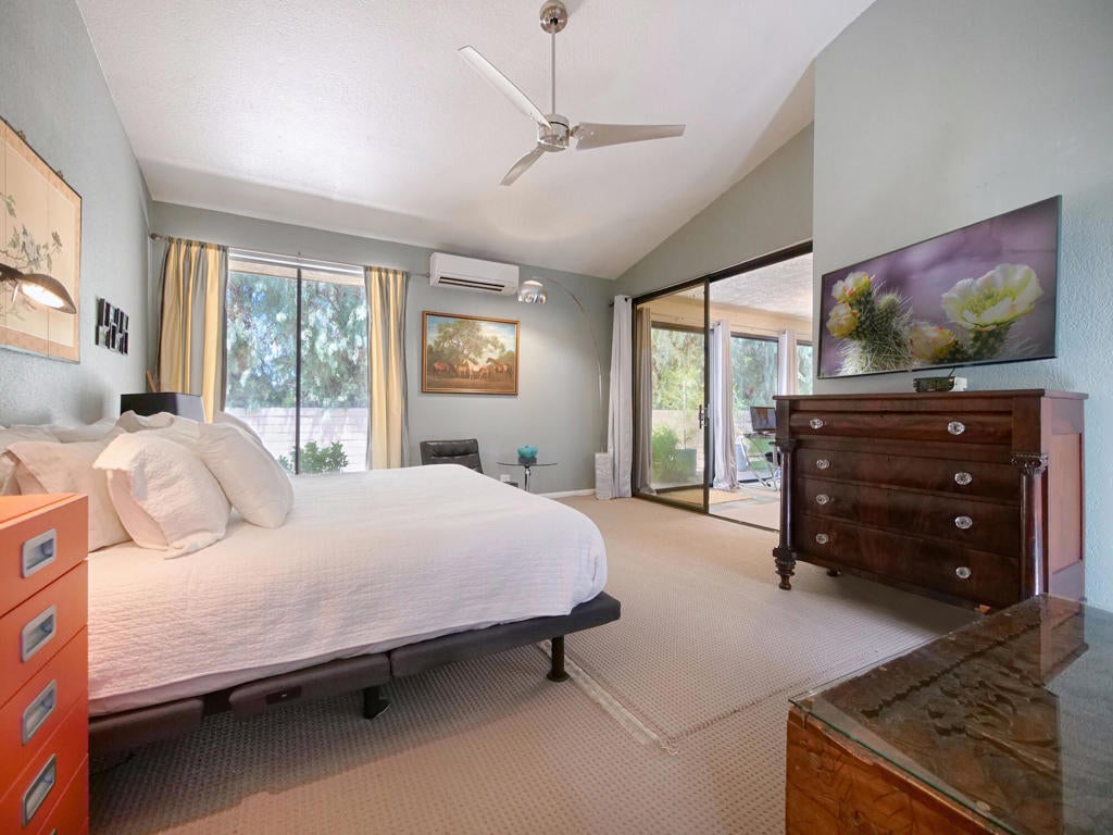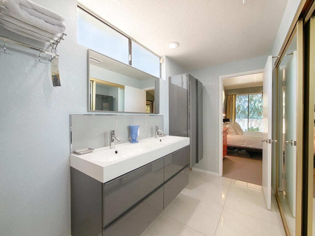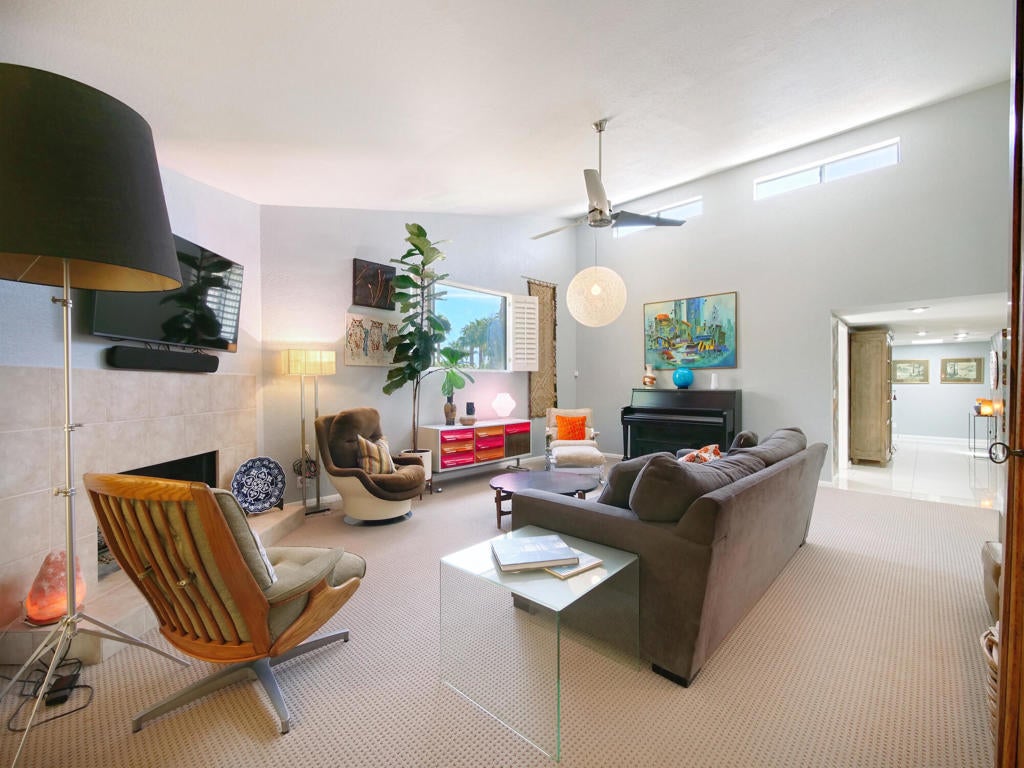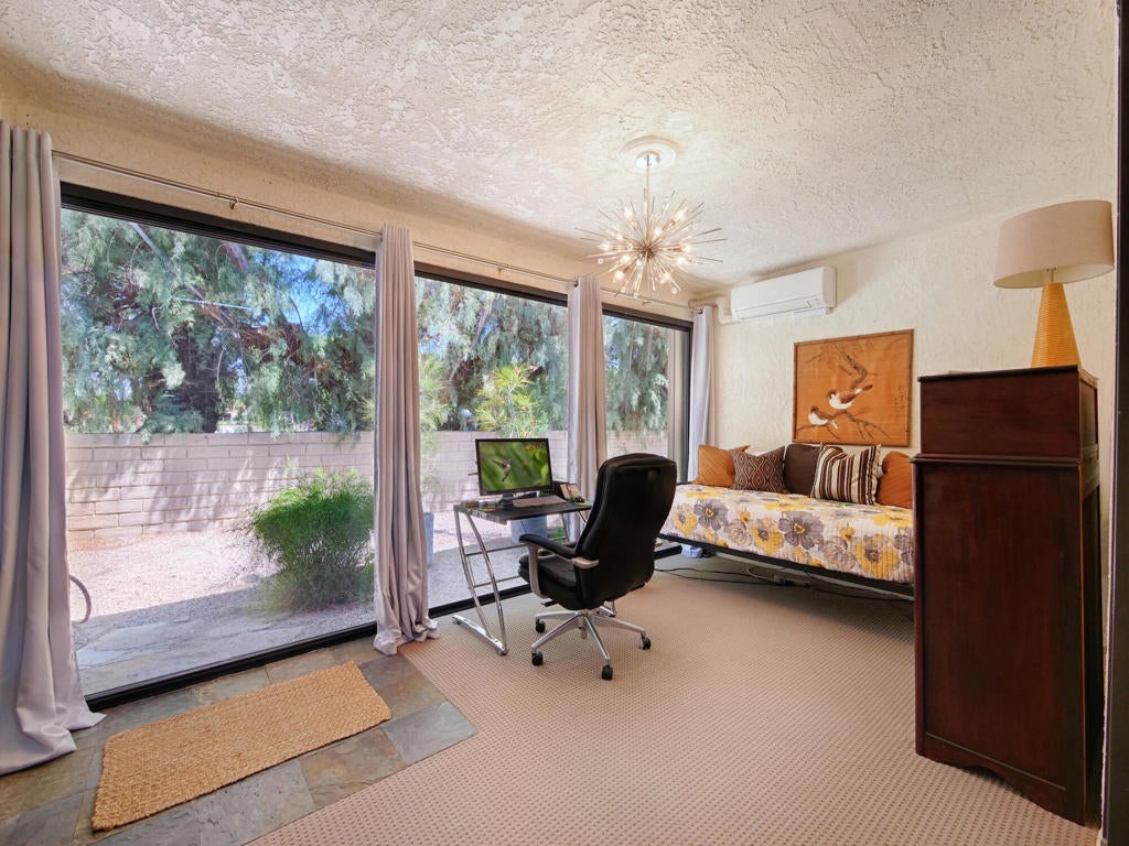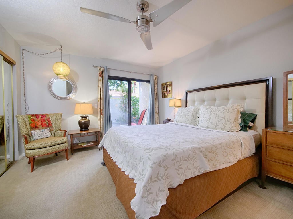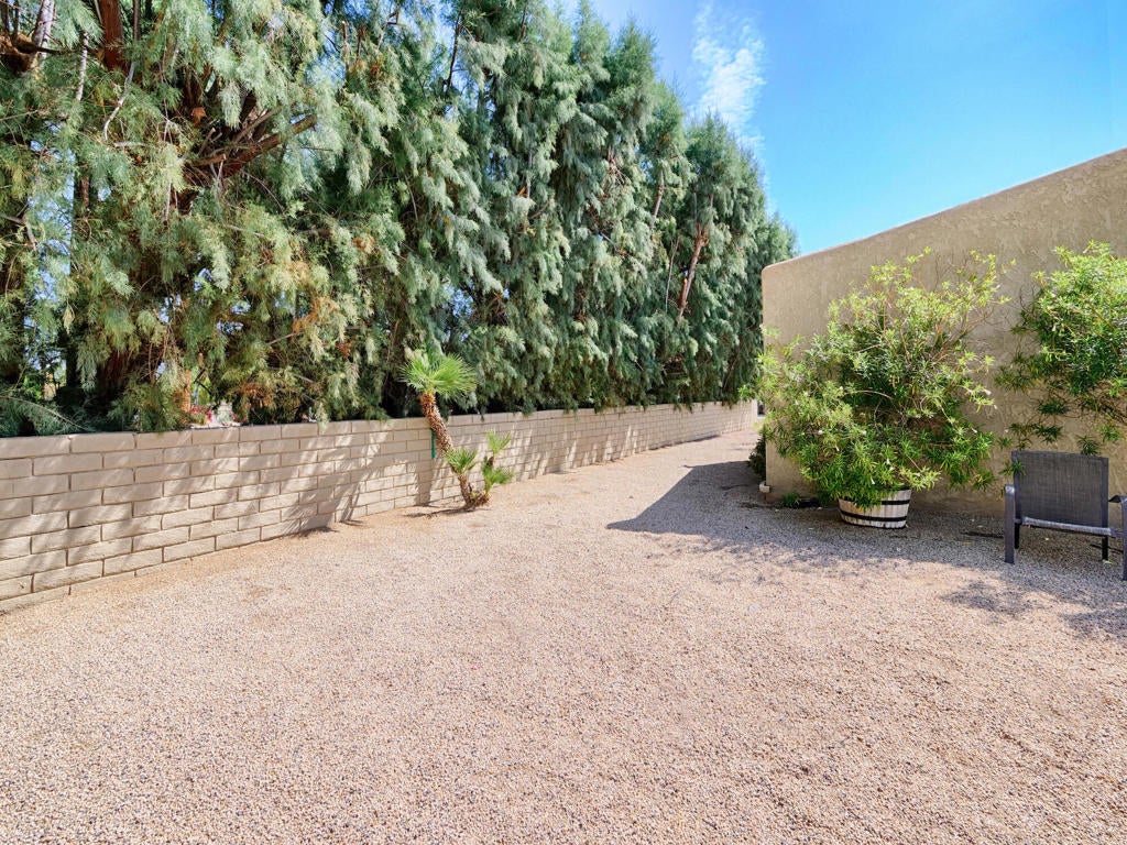 LOCATION, LOCATION, LOCATION!! Excellent South Palm Springs community tucked away in a very quiet private location...But yet close to everything. These units rarely come on the market. Welcome to this beautiful and spacious 2 bed 2 bath STAND ALONE condo that sits in a prime area of the community ..with plenty of space, it's like having your own yard, offering extra privacy! And you OWN THE LAND! This updated unit with 1832 sq ft of space delivers Beautifully and feels like a single family home The large kitchen has generous cabinets and pantry space with slide outs and soft close drawers. There is a huge skylight and a walk out patio for morning coffee and your evening grilling with family and friends. The bedrooms are spacious and nicely separated on opposite sides of the home. The huge living area (great room) has 14 ft ceilings with clearstory windows and a cozy gas Fireplace. There's also an enclosed Sunroom with Glass wall of windows with its own separate cooling system.. ideal for a work space or Den.The primary suite is very generous space (16x15)with high ceilings, oversized sliders and floor to ceiling picture windows. The primary bath has a large walk in shower, water closet and a huge walk through closet. Guests will enjoy the private bed room with bath and it's own private courtyard with access to the pool. There is also a patio off the dining room that has access to the pool. This unit has a 2 car garage with the laundry area & plenty of storage. There is an abundance of light with 3 skylights. Palm Oasis has 21 units and 3 pools. It is a fabulous location, walking distance to Trader Joes and shopping with many restaurants close by. Located minutes from the soon to be completed CV Link and across the street from the Twelfth fairway of the Tahquitz Creek Golf Course. About a 10 minute drive to the PS Airport and 15 minutes to DownTown Palm Springs. Don't miss this Gem!!! Call today for your private showing