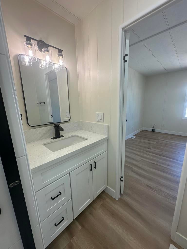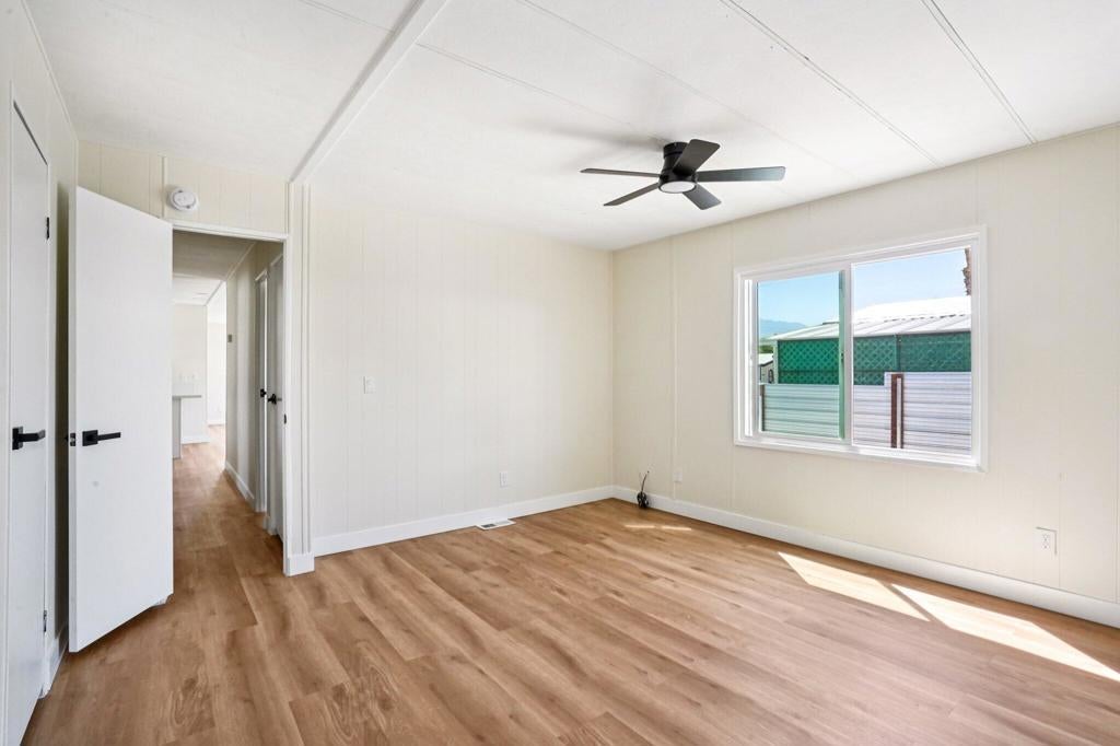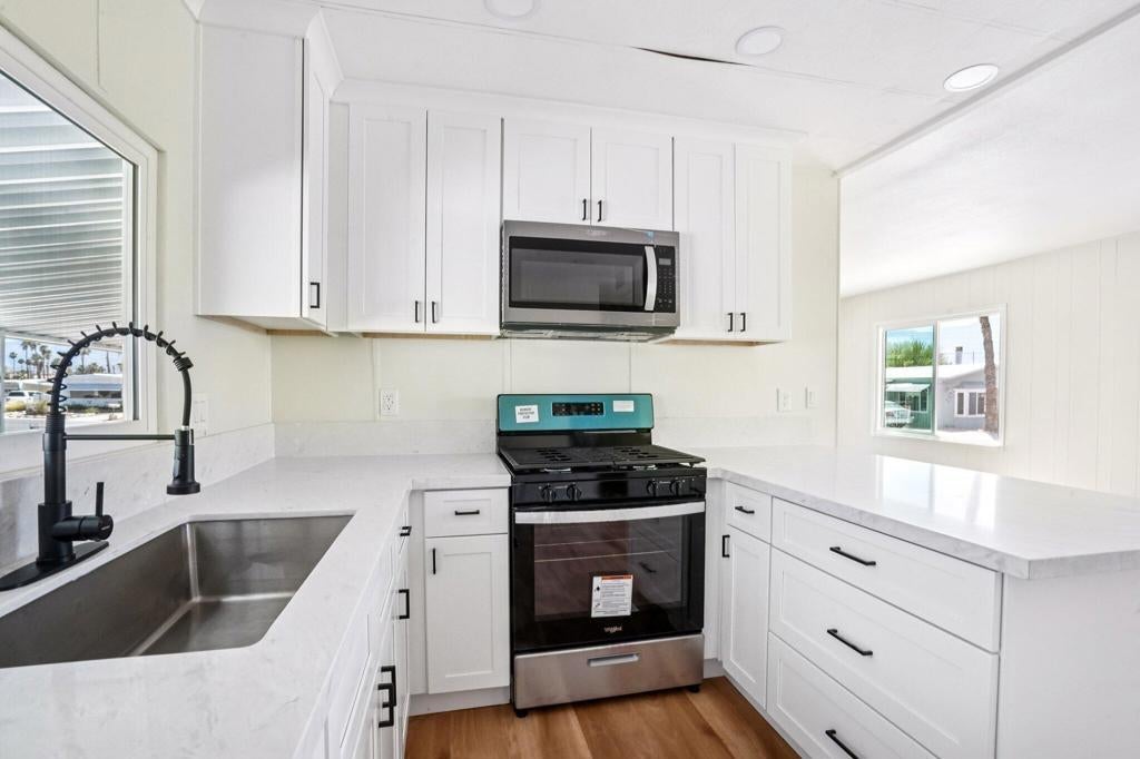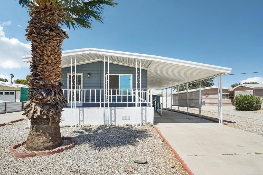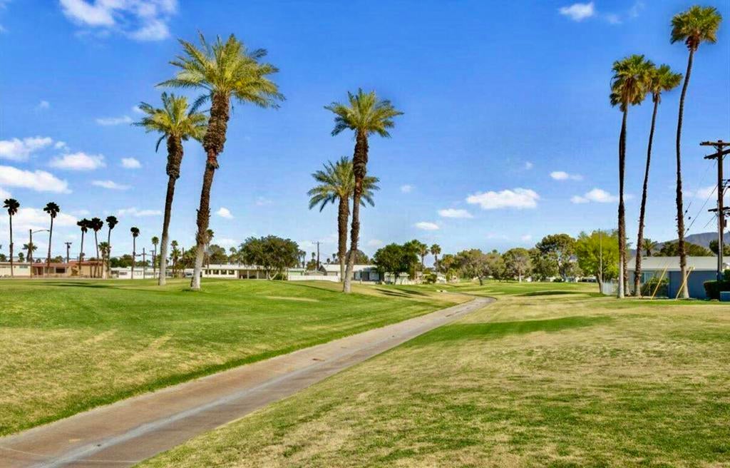 COMPLETE INTERIOR REMODEL with Beautiful Mountain Views from the large raised front patio and from the living room! Designed for today's desert lifestyle, this open-concept home offers stylish comfort and thoughtful updates throughout. The bright, open kitchen features Quartz countertops, stainless steel appliances, pantry, and a large window over the sink that fills the space with natural light. The adjoining dining area and breakfast bar seating make it perfect for everyday living or entertaining. Additional features include luxury vinyl plank flooring, energy-efficient windows, recessed lighting, and ceiling fans throughout. The spacious primary suite offers a private bath and large walk-in closet, while the guest bedroom is served by a nearby hall bath. Laundry room with direct access to carport and extra storage adds convenience. The best part -- you OWN THE LAND! Low HOA dues and a 433A Permanent Foundation allow Conventional, FHA/VA, and Reverse Mortgage Financing. Located in the active 55+ community of Tri Palm Estates & Country Club, where homeowners enjoy unlimited golf for two owners on the 18-hole Executive and 9-hole Par 3 courses, plus access to two pools and spas, tennis, pickleball, shuffleboard, putting greens, and a clubhouse with dining, social events, and recreation lounge. Conveniently close to shopping, dining, casinos, and freeway access -- and within IID for lower electric rates!