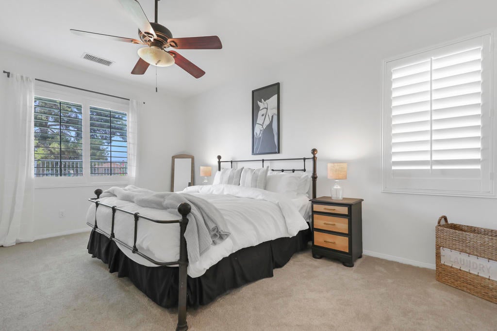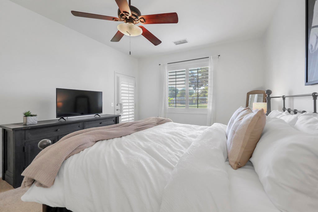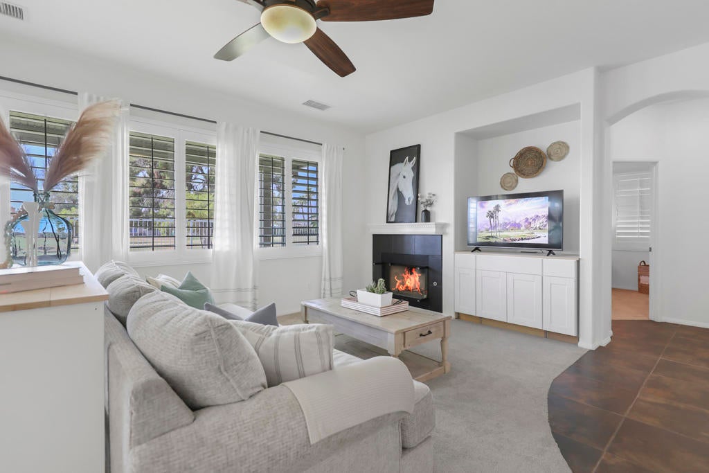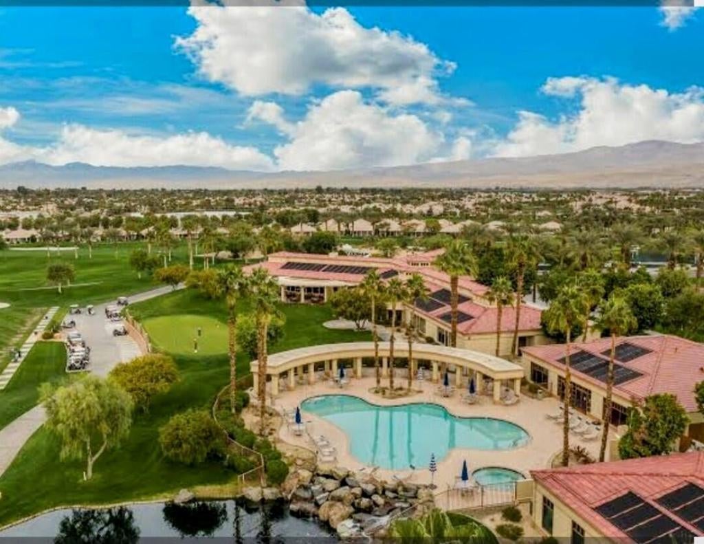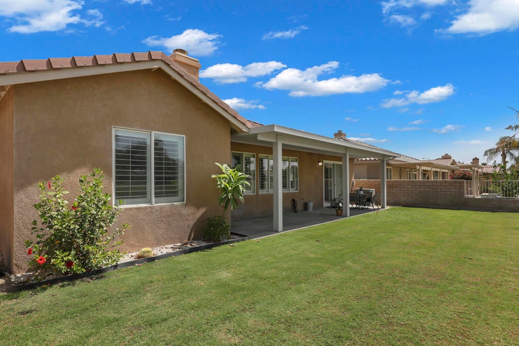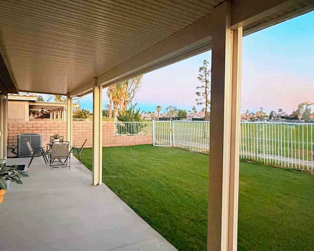 Whether you're looking for a full-time residence or an investment, this desert resort home offers excellent vacation rental income potential. Located on the golf course in the desirable gated community of Indian Palms, this 2002-built home features an open floor plan with gorgeous views. The private master retreat includes backyard access, walk-in closet, dual vanity, soaking tub, and separate shower. Enjoy indoor-outdoor living with a new lawn & covered patio w/ gated golf course access--perfect for relaxing, entertaining, or taking in scenic golf course and Palm Springs Mountain Range views. Inside, tasteful finishes, plantation shutters, and a cozy gas fireplace create a bright and welcoming vibe. Ideally located across from the Coachella and Stagecoach Festival Grounds and Empire Polo Club. Indian Palms Country Club & Resort offers pools, dining, tennis, pickleball, bocce ball, fitness center, and more. This home not only provides comfort and style, but also offers vacation rental income potential.'