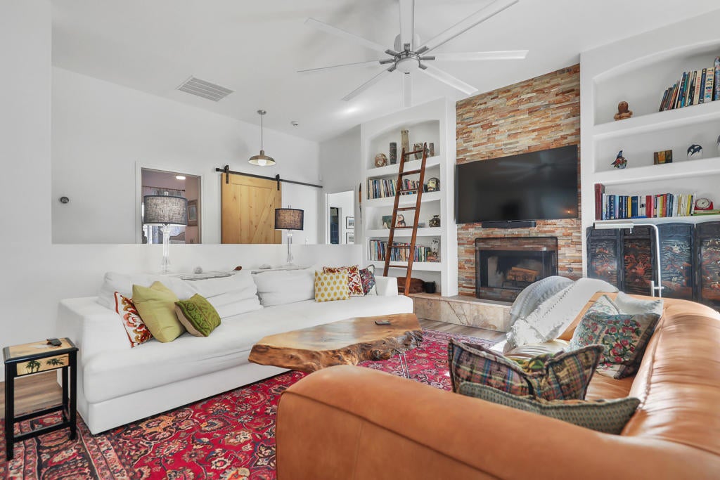 PRICE REDUCTION: Welcome to The La Quinta Cove- A charming retreat nestled against the stunning Santa Rosa Mountains and surrounded by miles of scenic hiking and biking trails.This Santa Fe-style home offers a serene desert escape with a shady wraparound patio, complete with cozy seating, an outdoor dining area, and a fire feature perfect for cool desert evenings under the glow of beautiful overhead lighting. This home is also appointed with oil paintings, an art library, guitar, and a Sonos System. Spend sunny days lounging by the private pool while soaking in the mountain views.Step through the glass front door into an inviting living space featuring a fireplace, comfortable seating on two plush couches, and French doors that open to the patio. The fully equipped kitchen has everything you need for home-cooked meals, while the spacious primary bedroom offers an ensuite bath for your comfort. Two additional guest rooms provide plenty of space for family and friends.Located just minutes from Old Town La Quinta, you'll have easy access to local shops, restaurants, and entertainment. Pickleball courts are nearby, and SilverRock Golf Course is just a short five-minute drive away. Close Desert International Horse Park!Come experience desert living at its finest in this artistic, welcoming home -- where comfort, charm, and adventure meet. Available for the Holidays, 30 day minimum. Discount for multiple months!